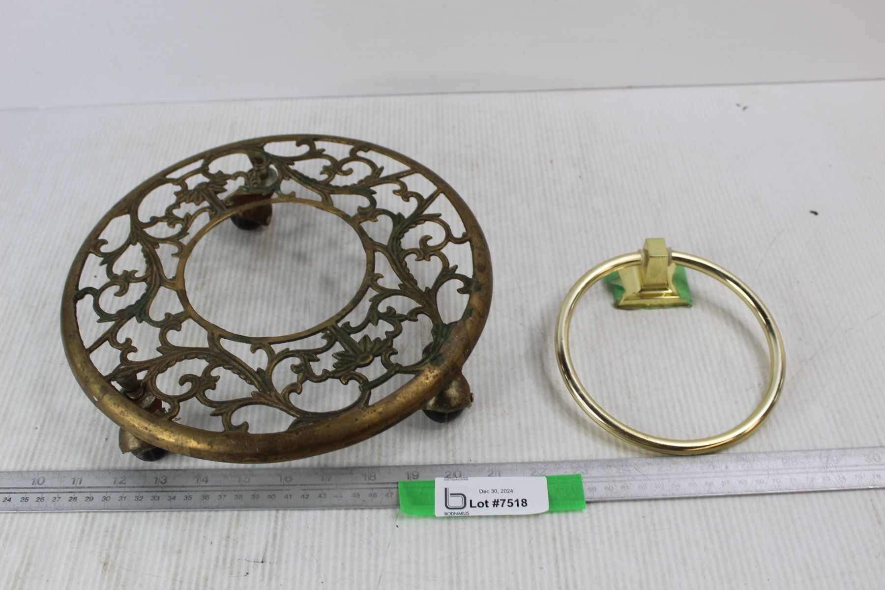 Vintage Brass Plant Pot Wheeled Cart, Bathroom Towel Holder