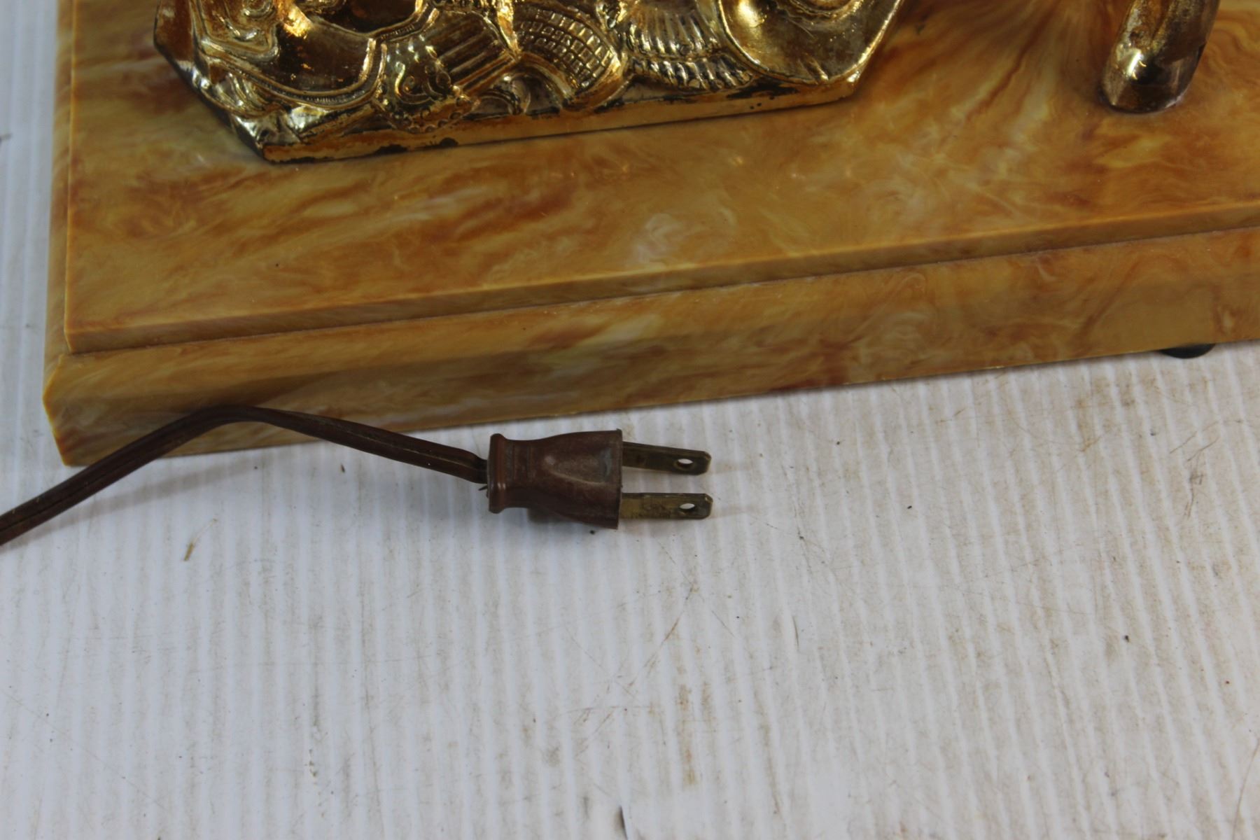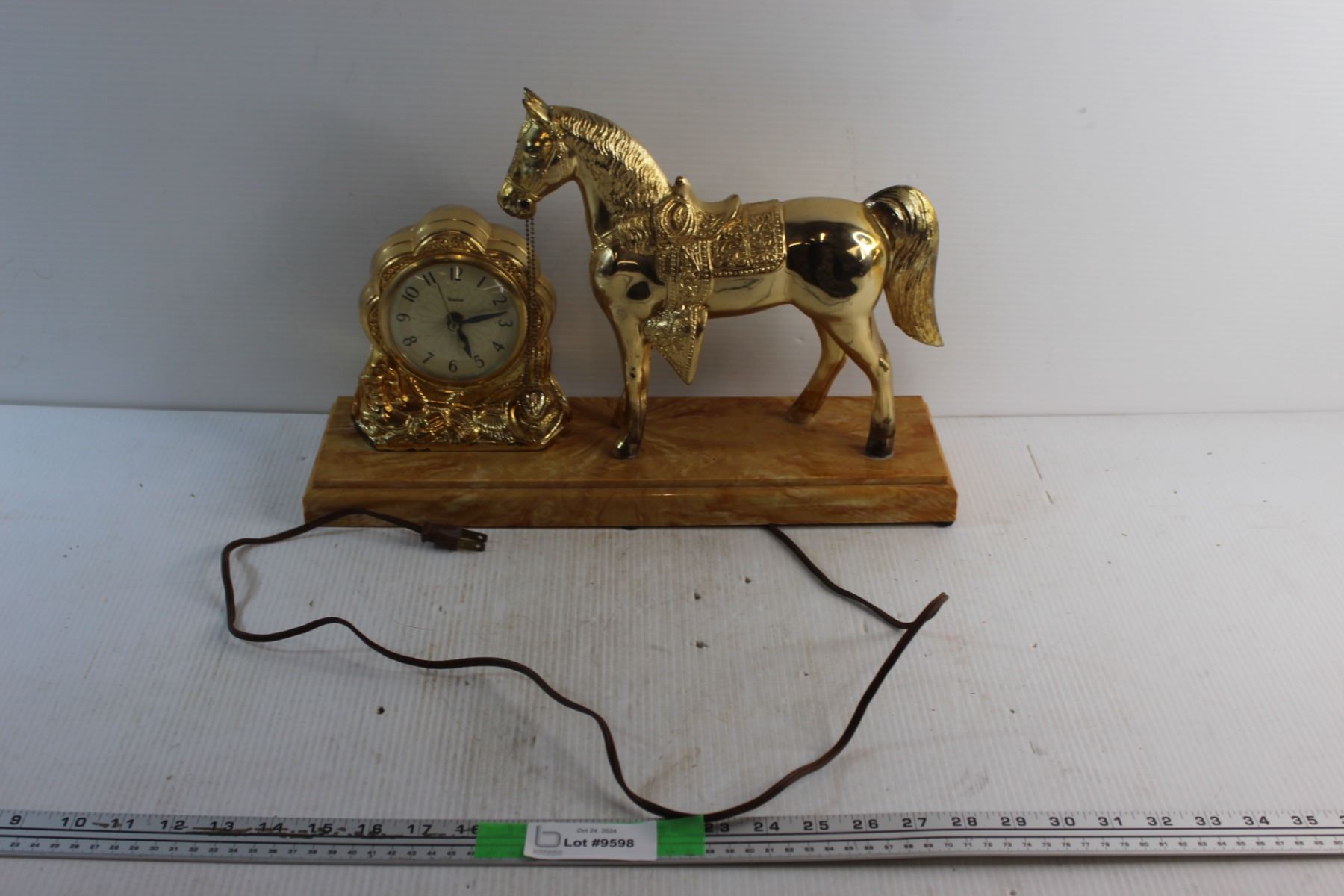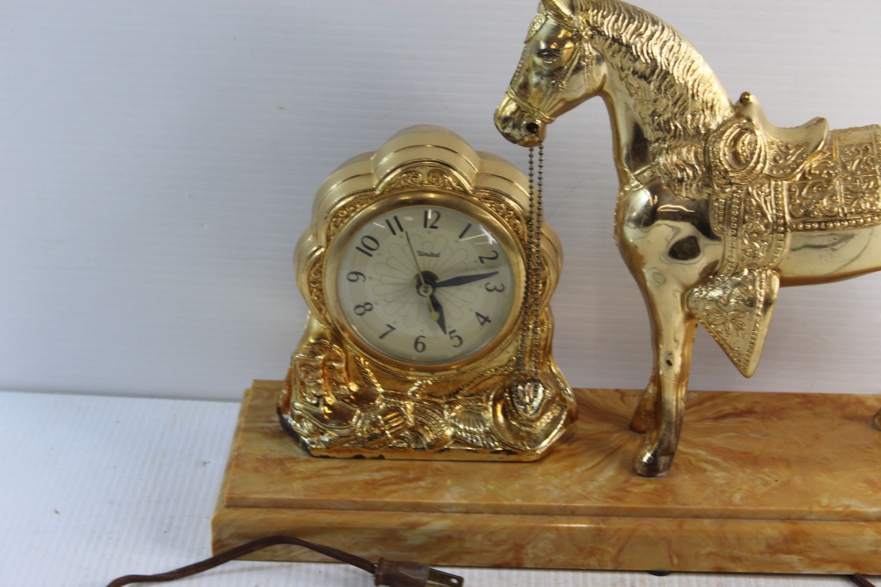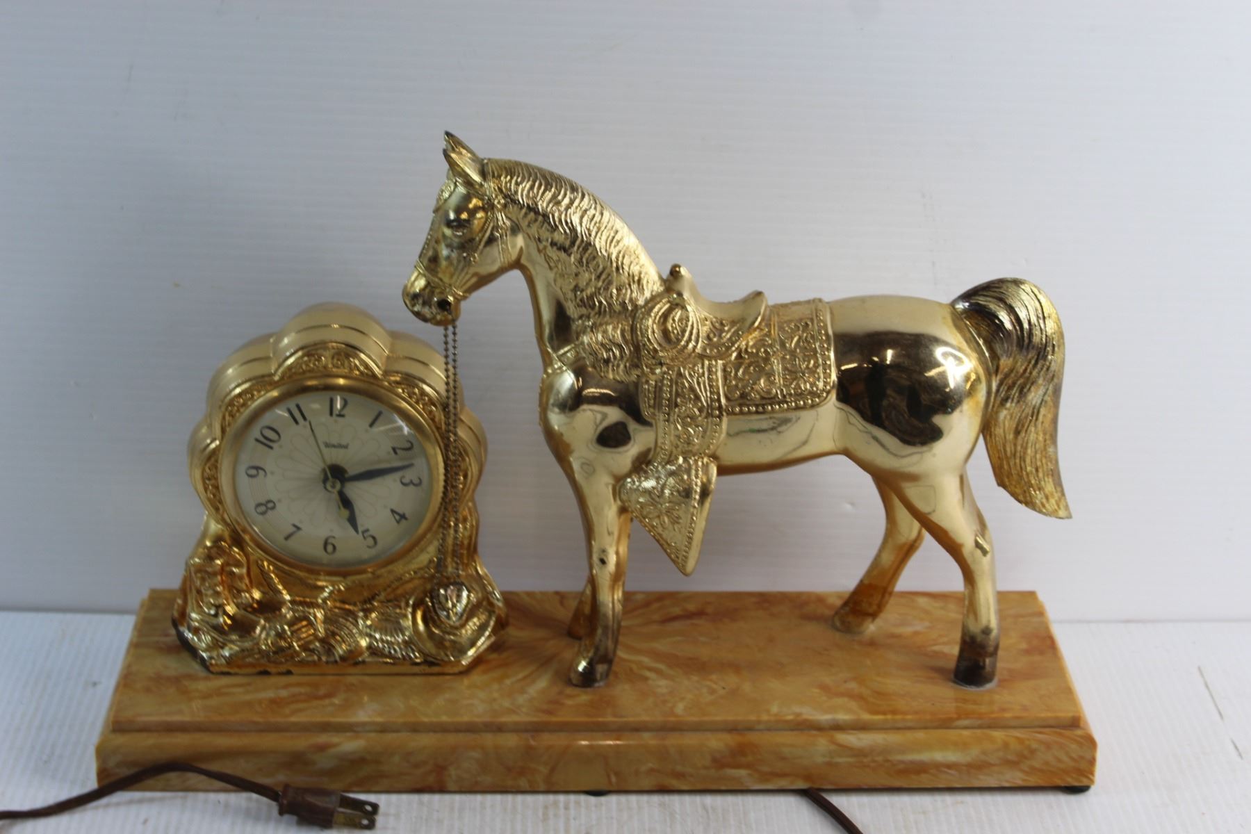 Vintage Brass Plated United Horse Decorative Electric Clock - Tested