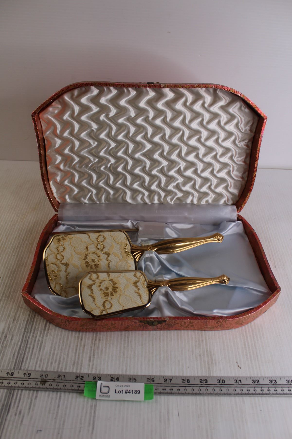 Vintage Brush Comb, Mirror Set in Original Case, 1960s