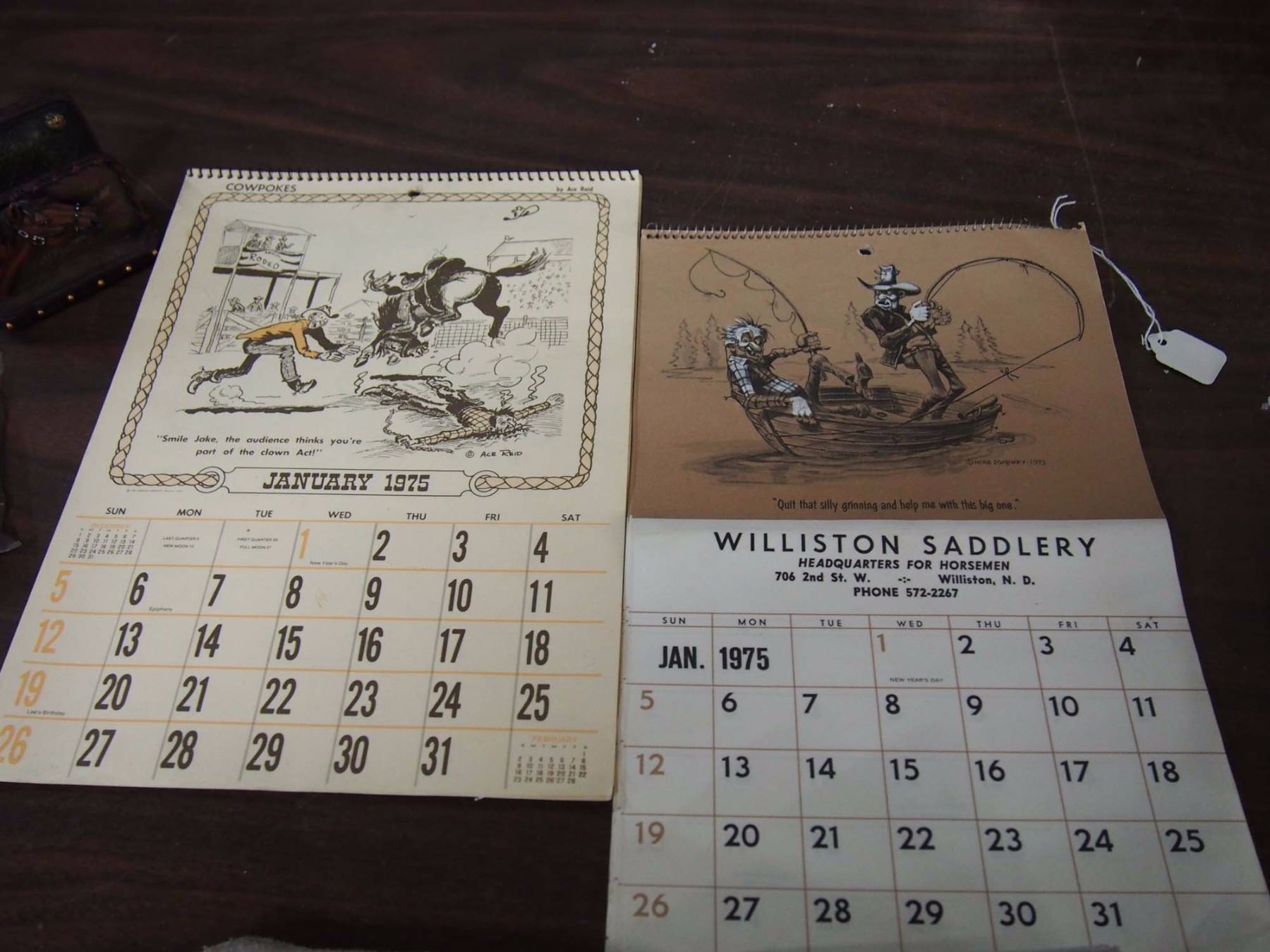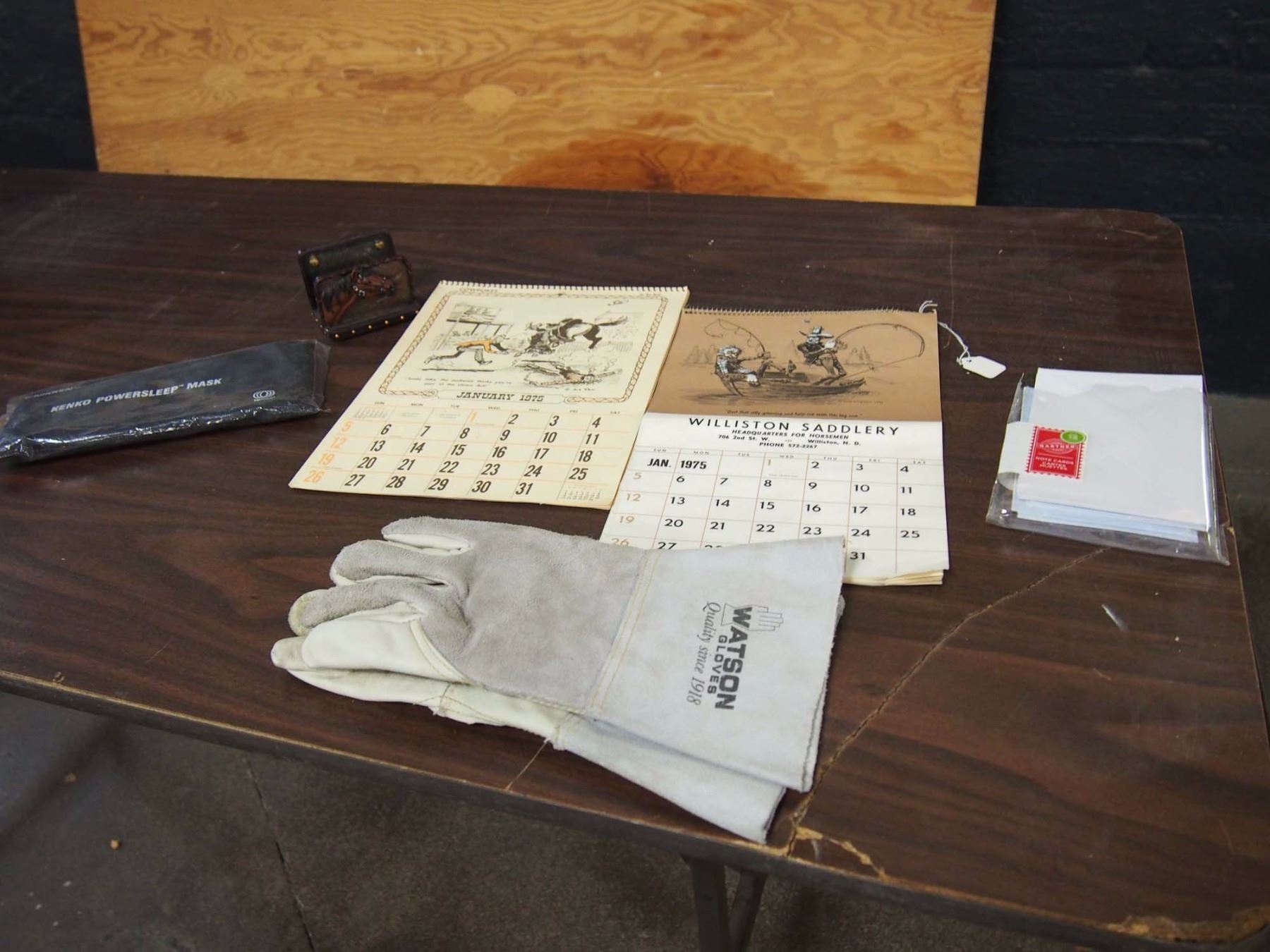 Vintage Calenders, Horse Business Card Holder, Welding Gloves Etc
