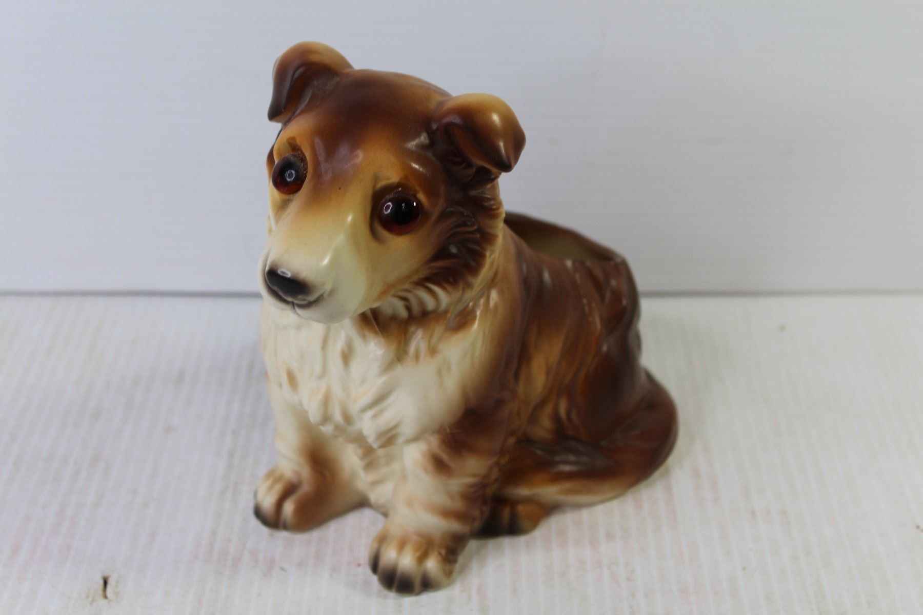 Vintage Ceramic Dog Trinket Dish (has been repaired) - Ceramic Dog Vase