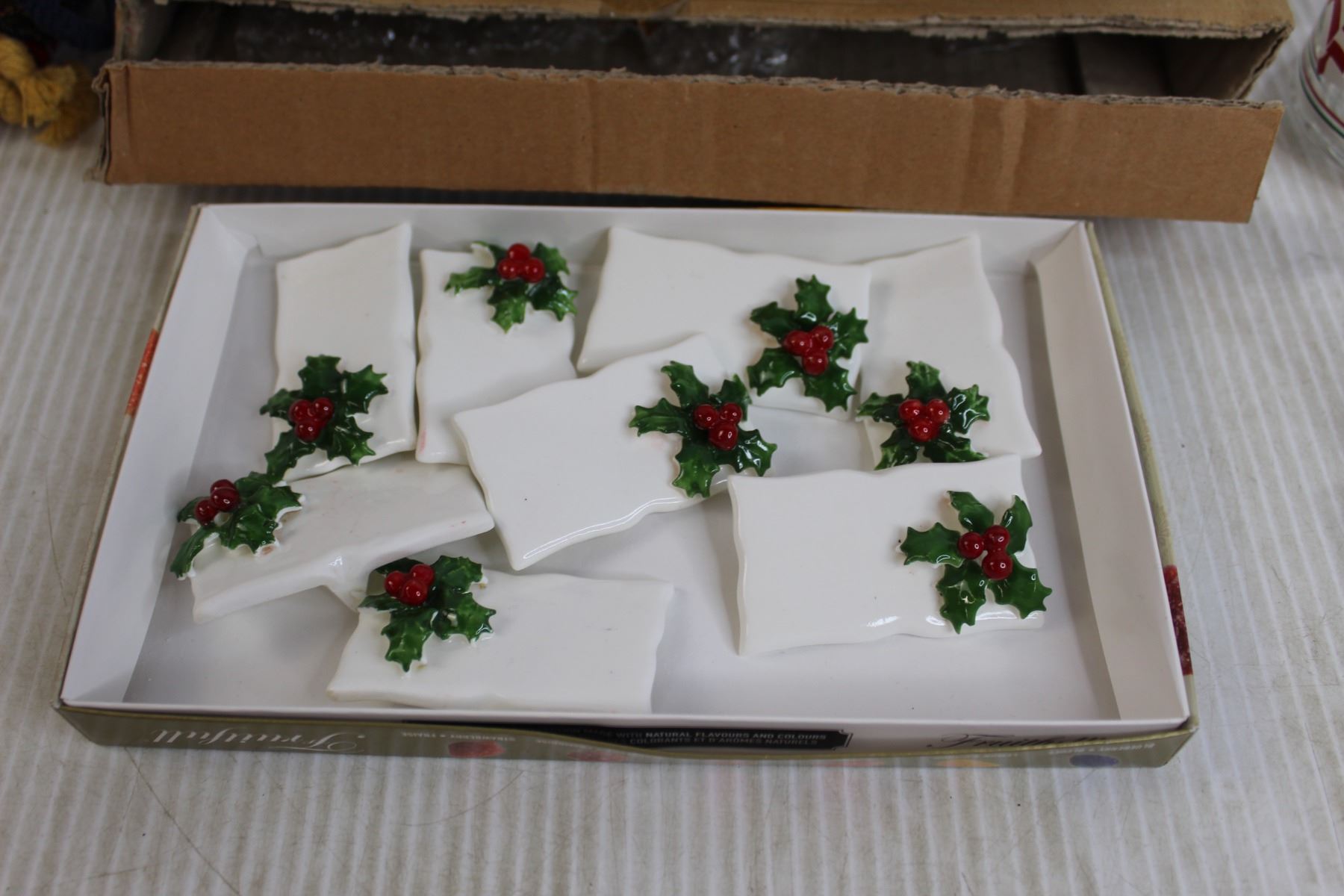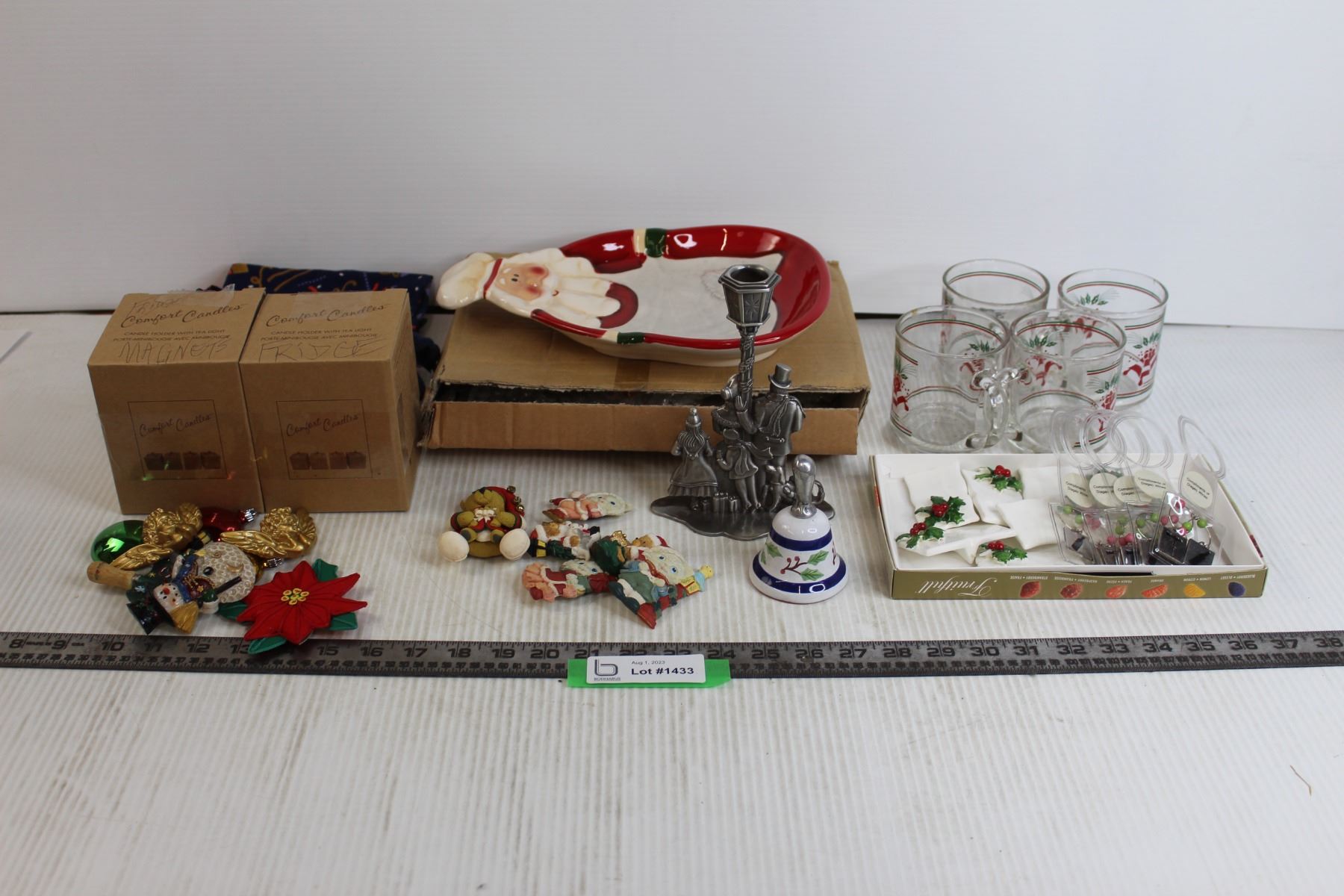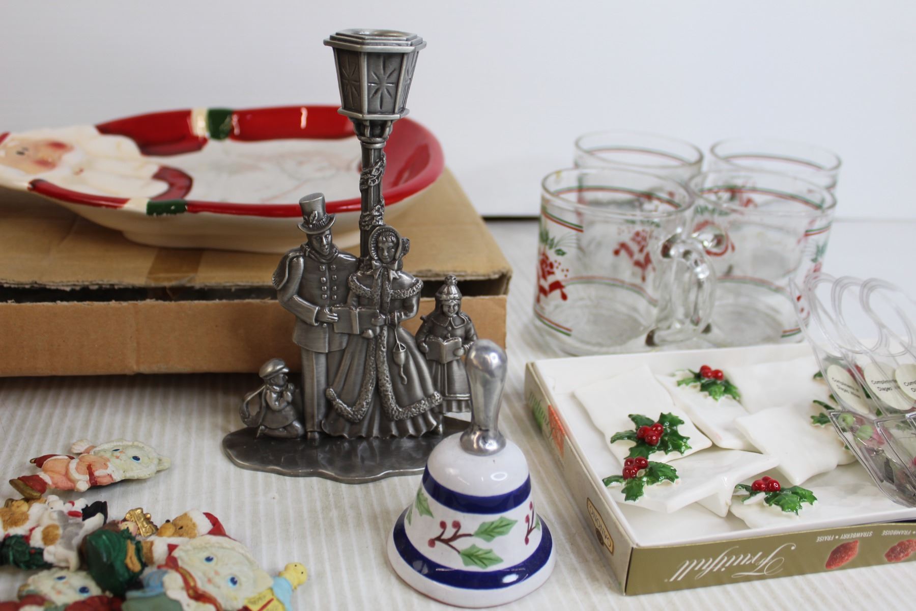 Vintage Christmas Assortment (Place Holders, Candle Holder (Pewter), Tray, Bell, Mugs, Wine Charms, Fridge Magnets)