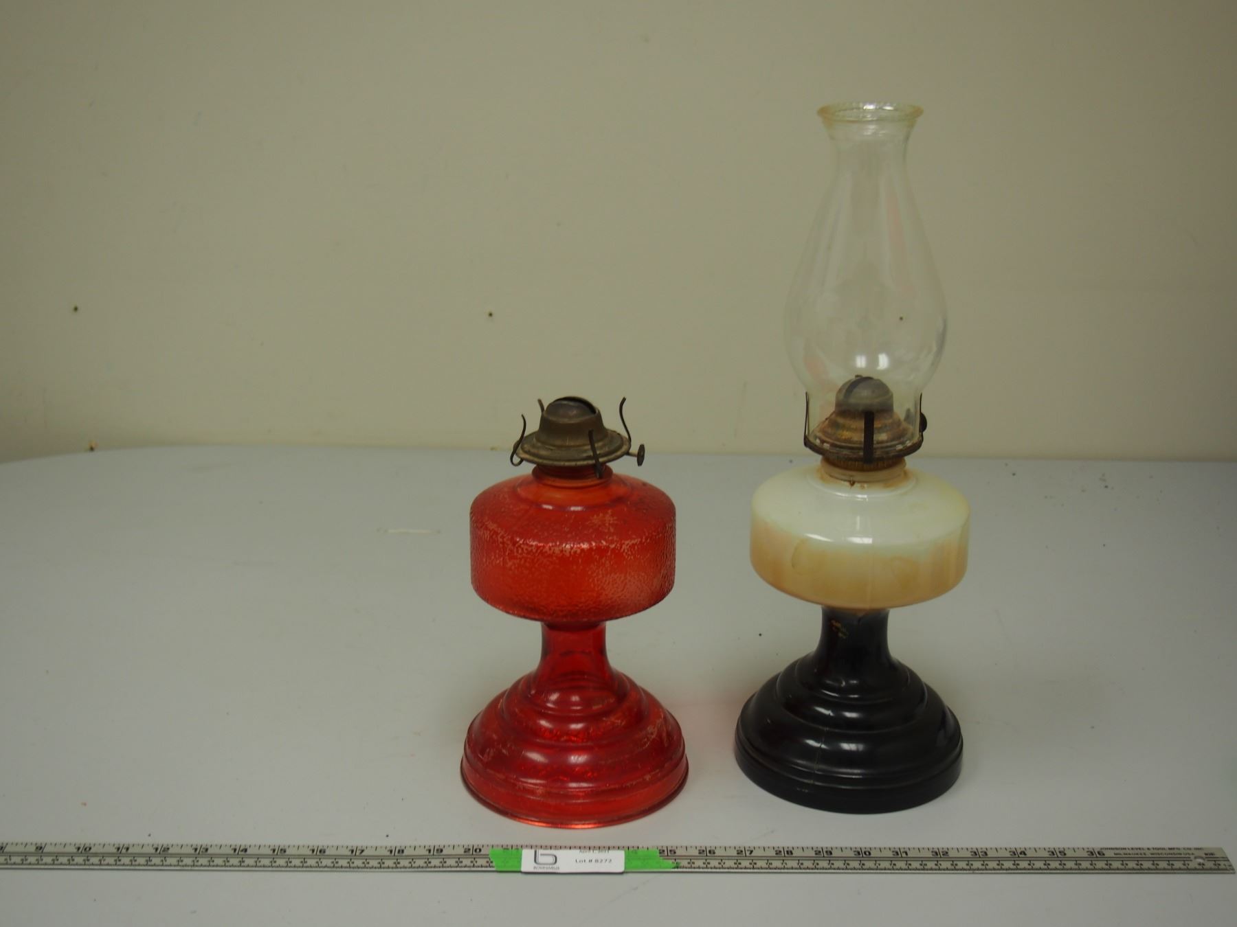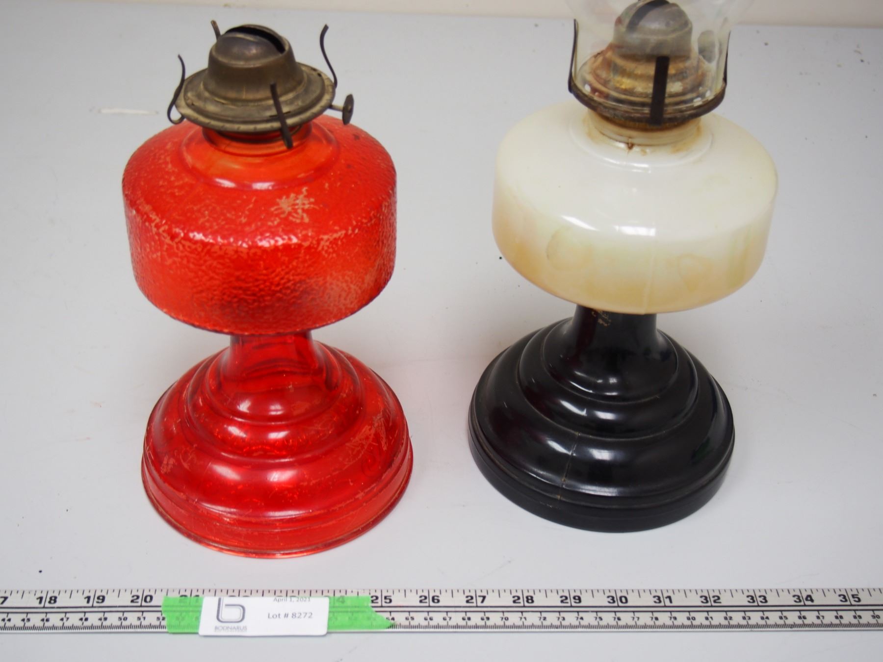 Vintage Colored Oil Lamps (missing 1 chimney)