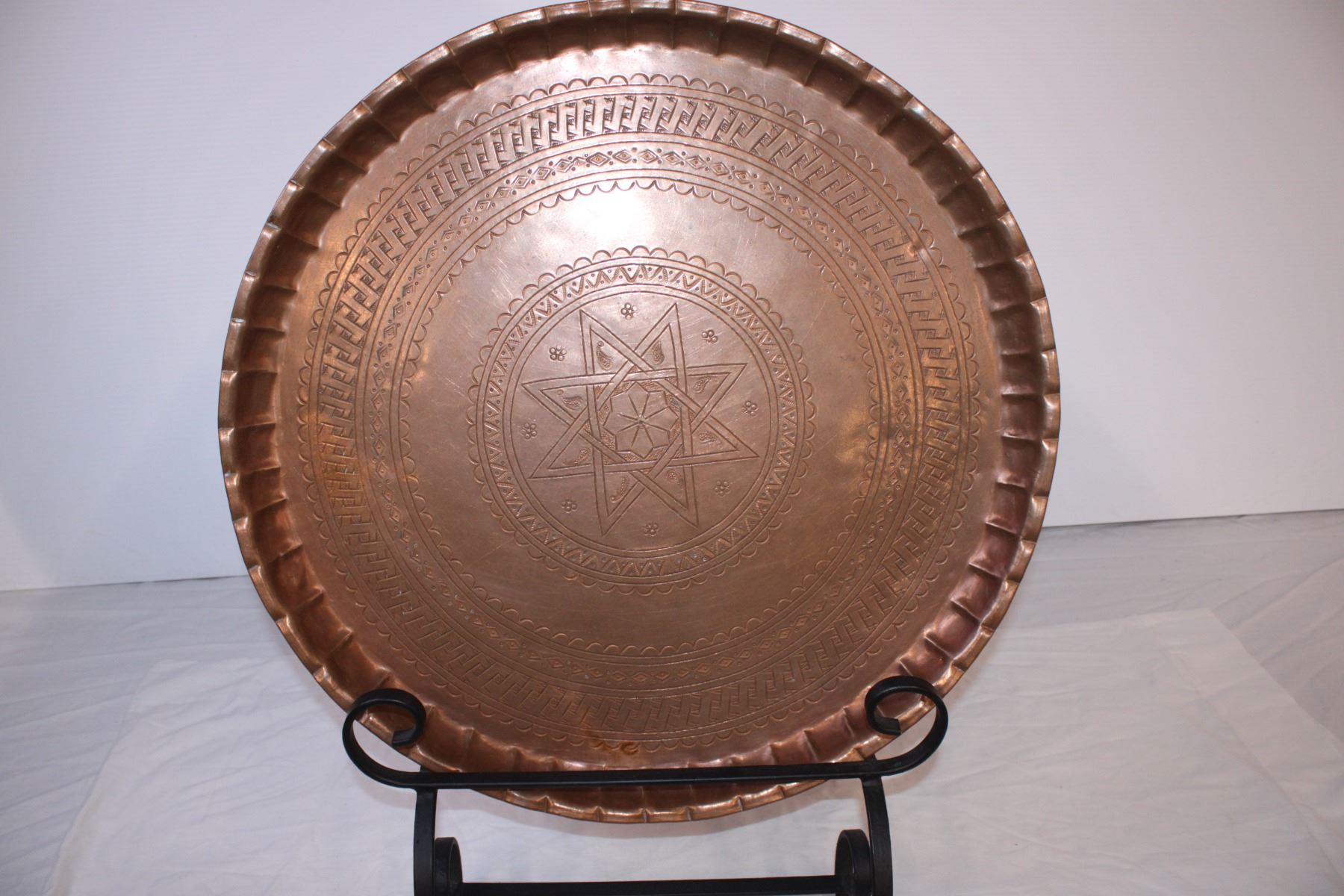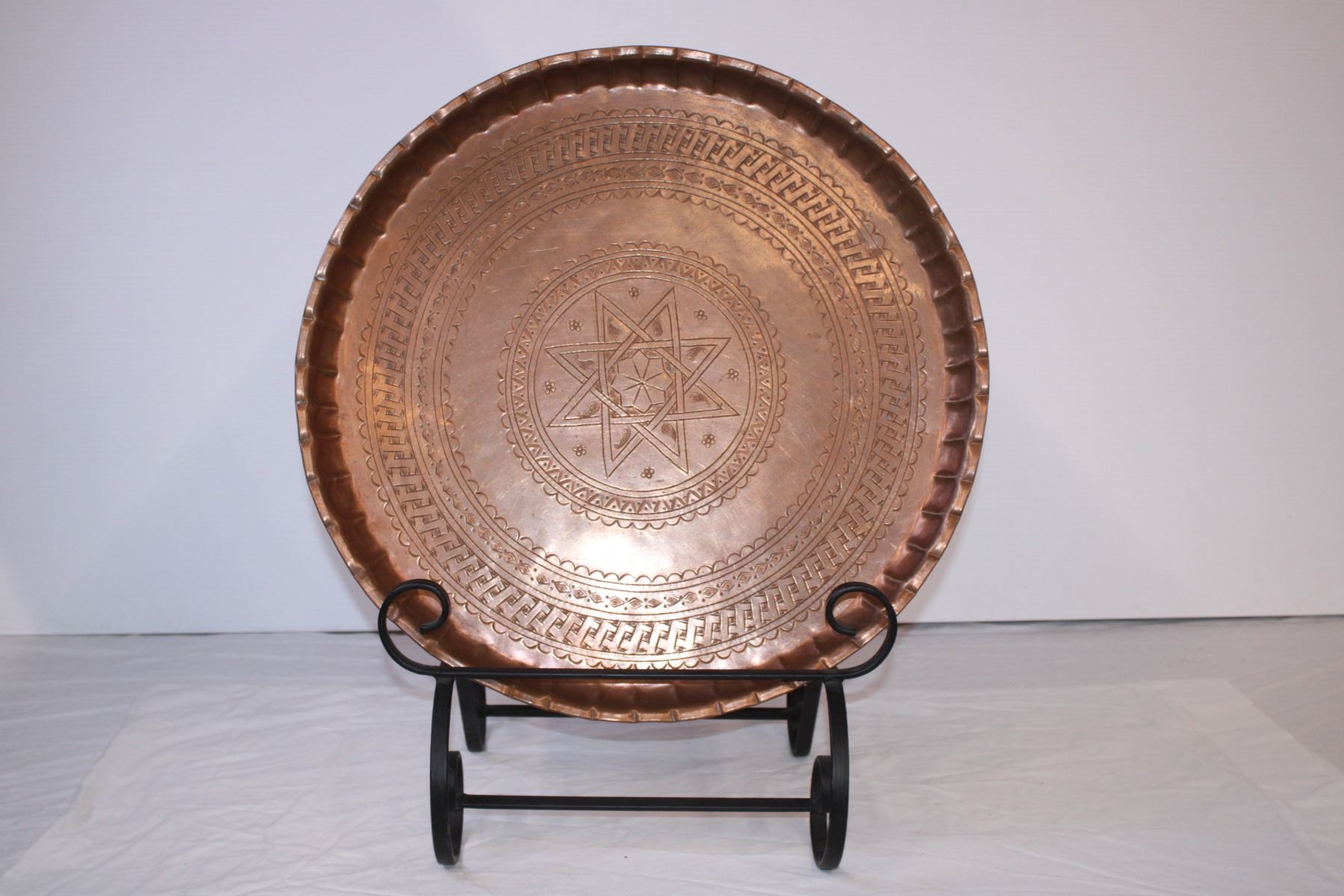 Vintage Copper Tray&Stand from Saudi Arabia 20”