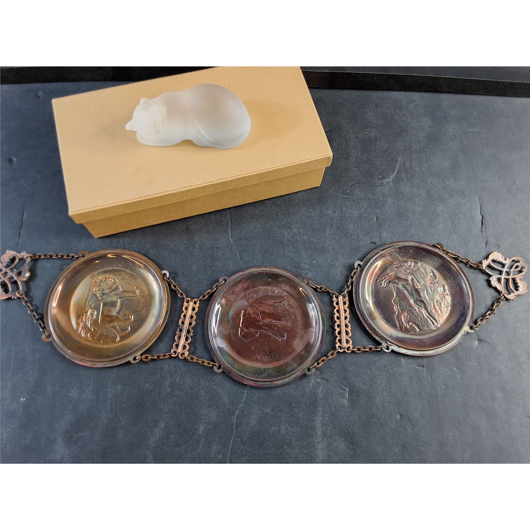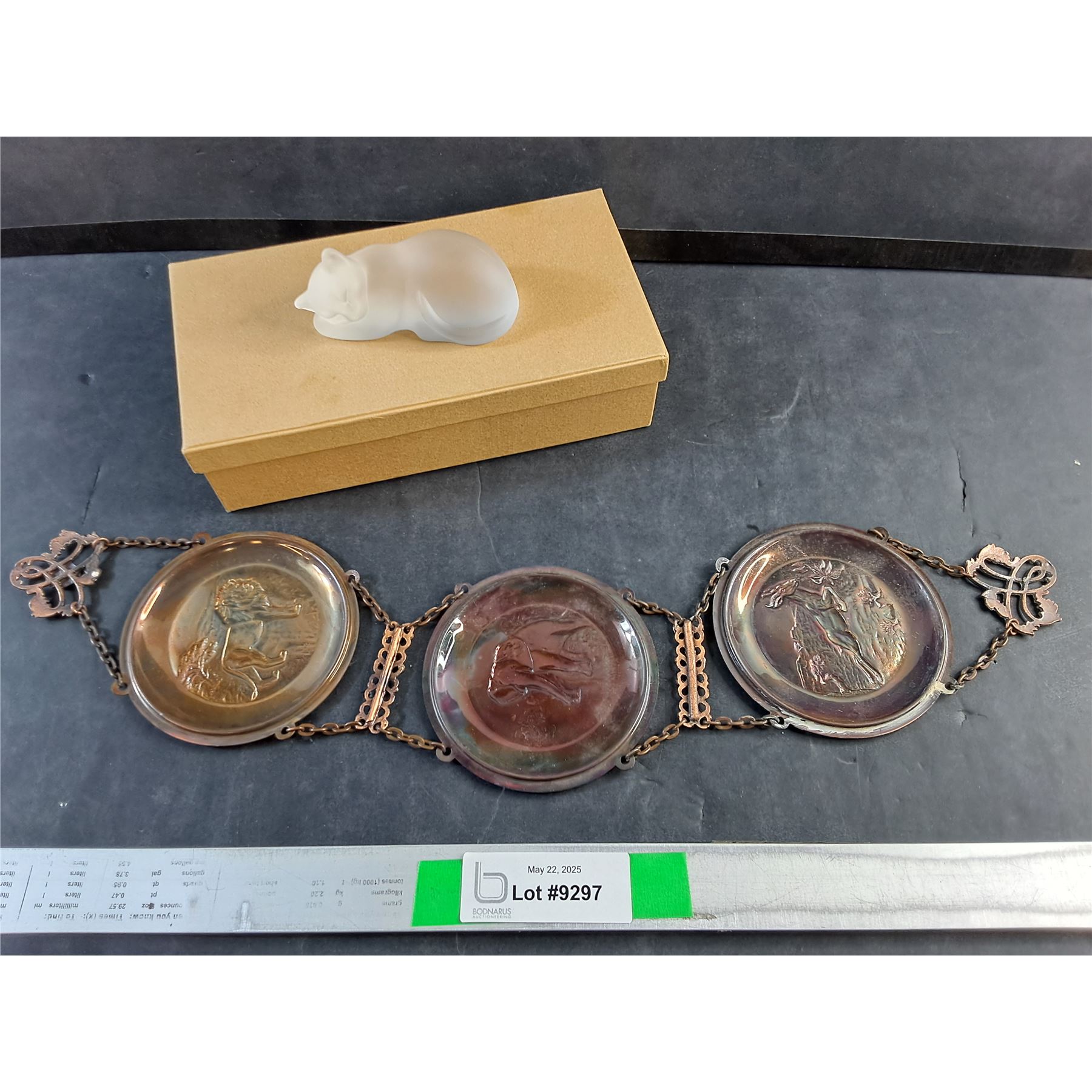 Vintage Copper Wild Animal Themed Wall Art Plaques & Fine Crystal Cat Ornament