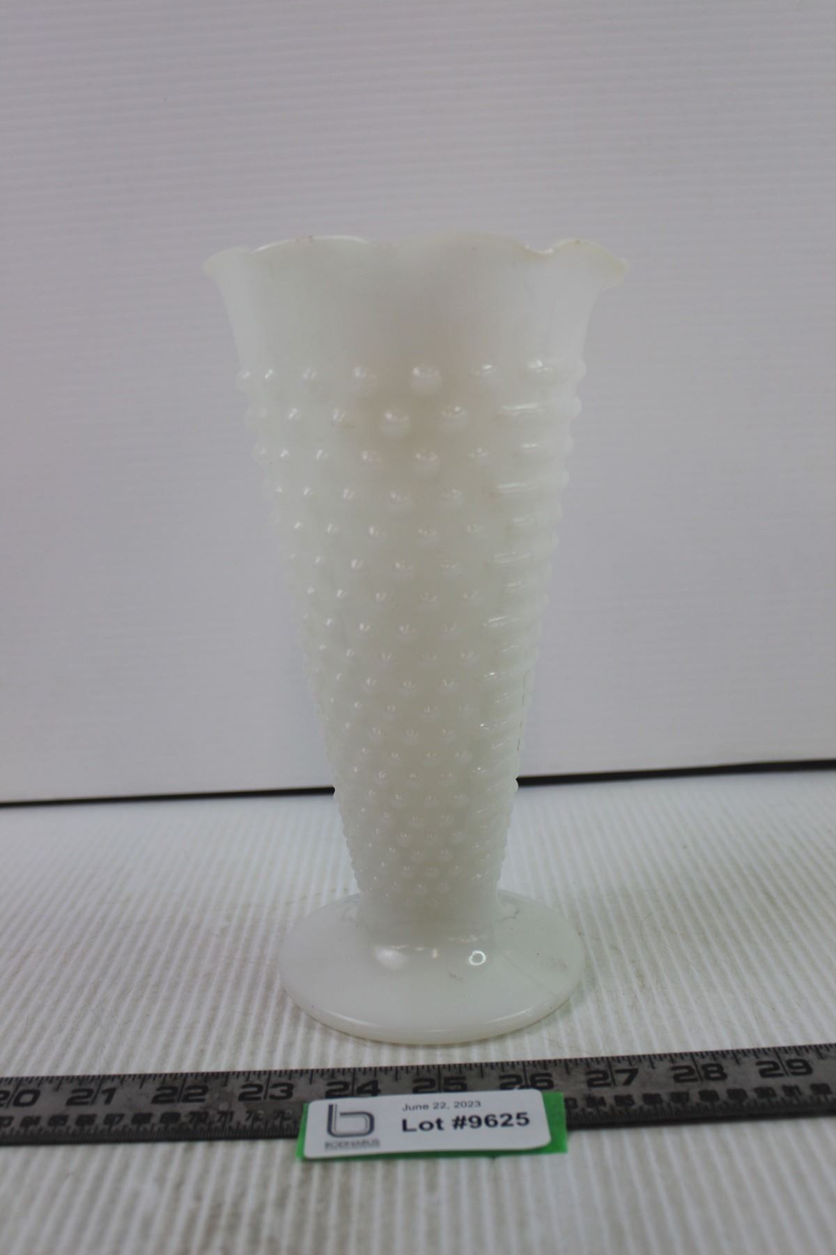 Vintage Depression Glass - White Hobnail Milk Pattern Flower Vase - No Chips or Cracks