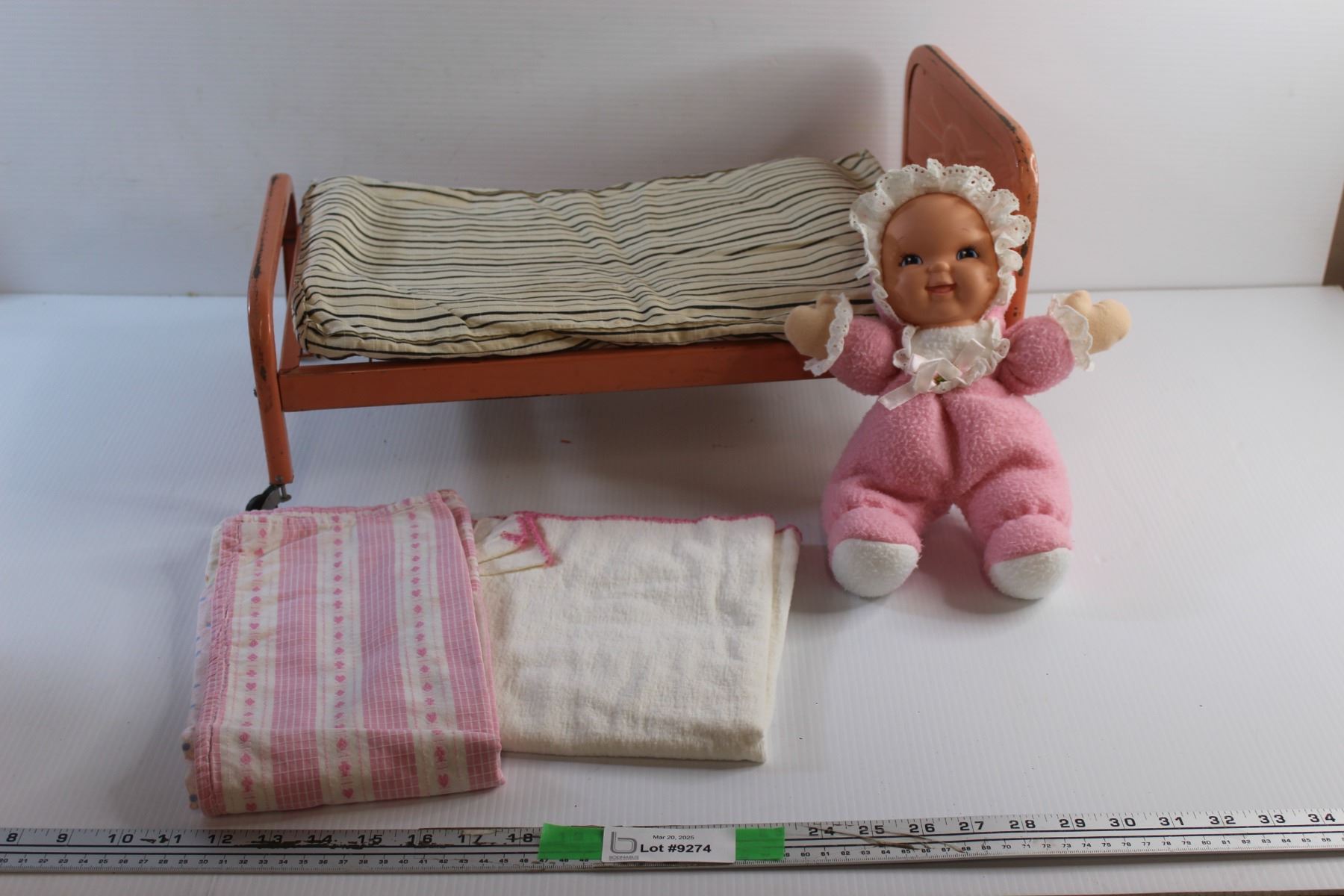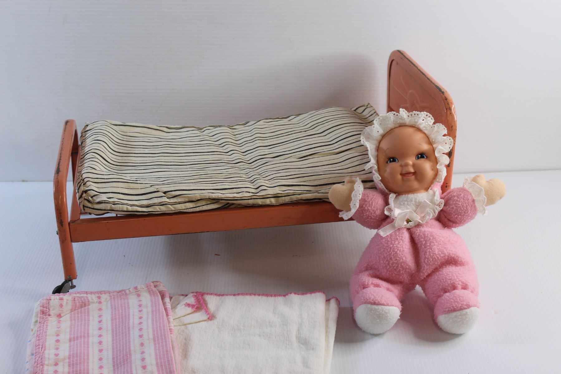 Vintage Doll Bed, Mattress, Bedsheet, Blanket and Doll