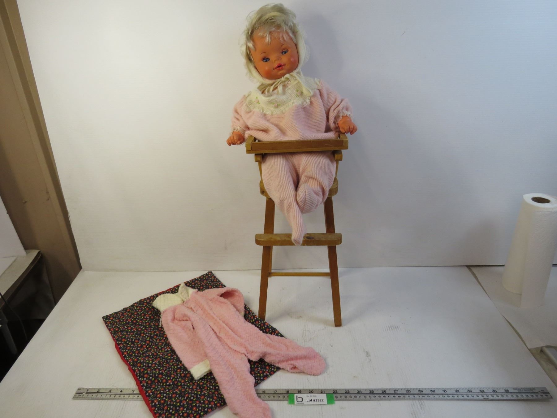 Vintage Doll w/Highchair - Blanket & Outfit