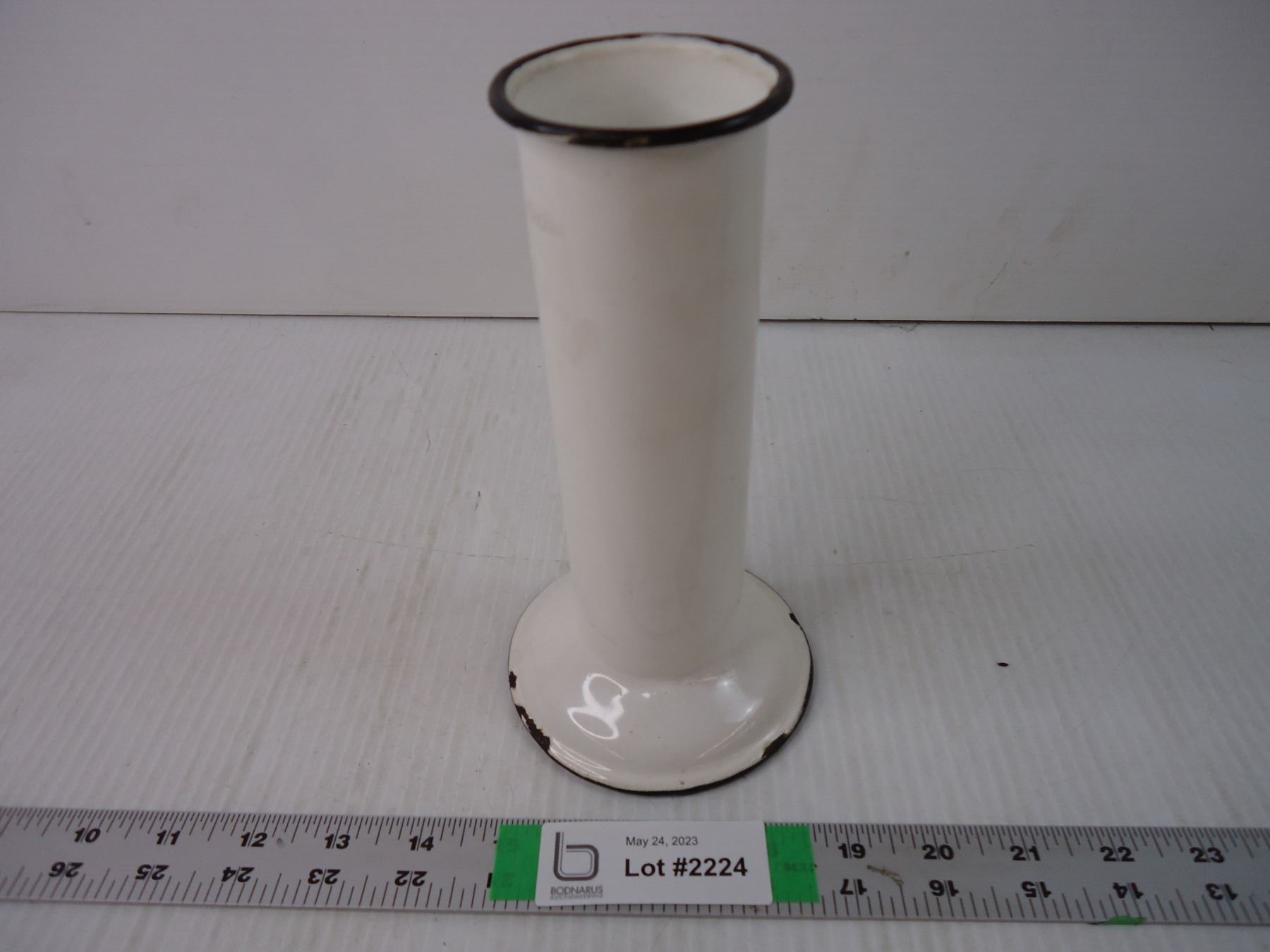 Vintage Enamelware Candle Holder-White with Black Tin Metal
