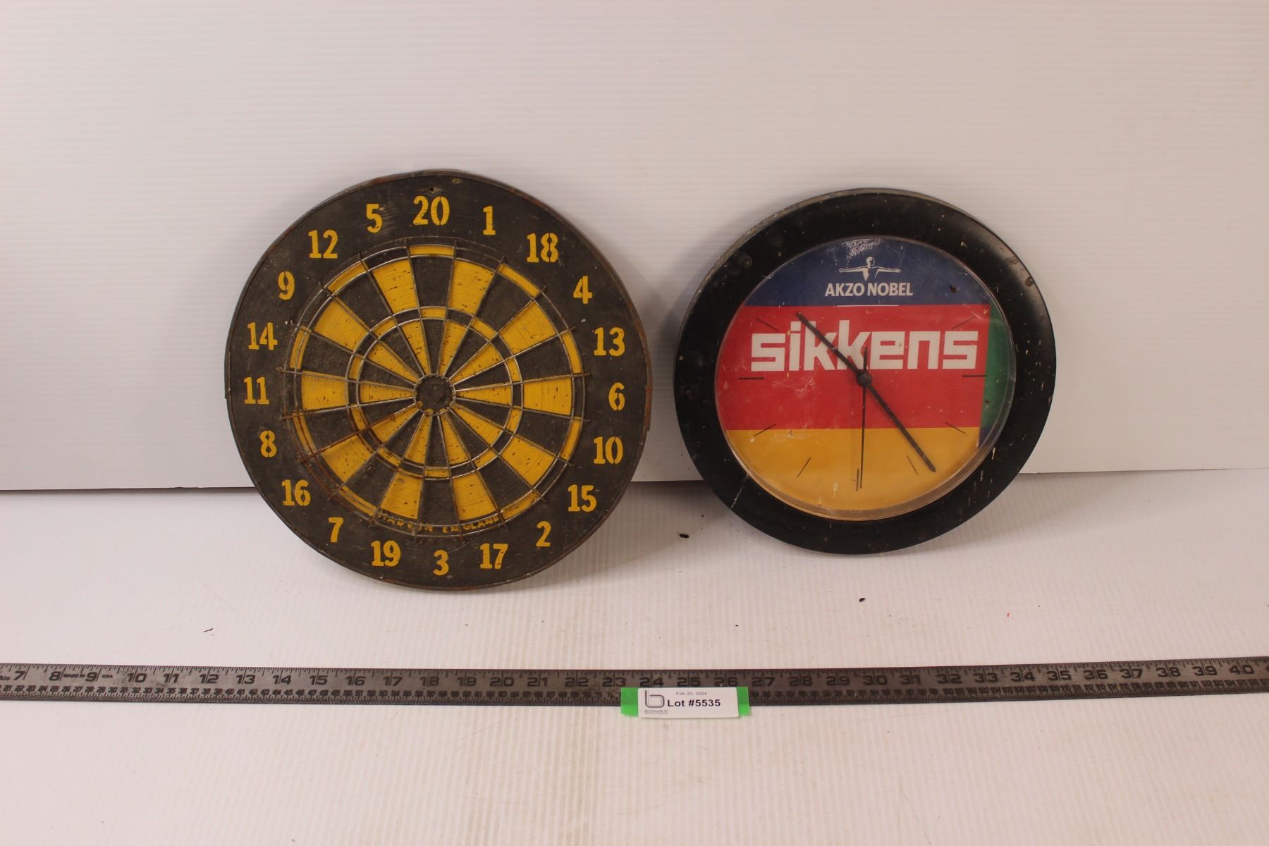 Vintage English Dart Board, Akzo Nobel SIKKENS Clock