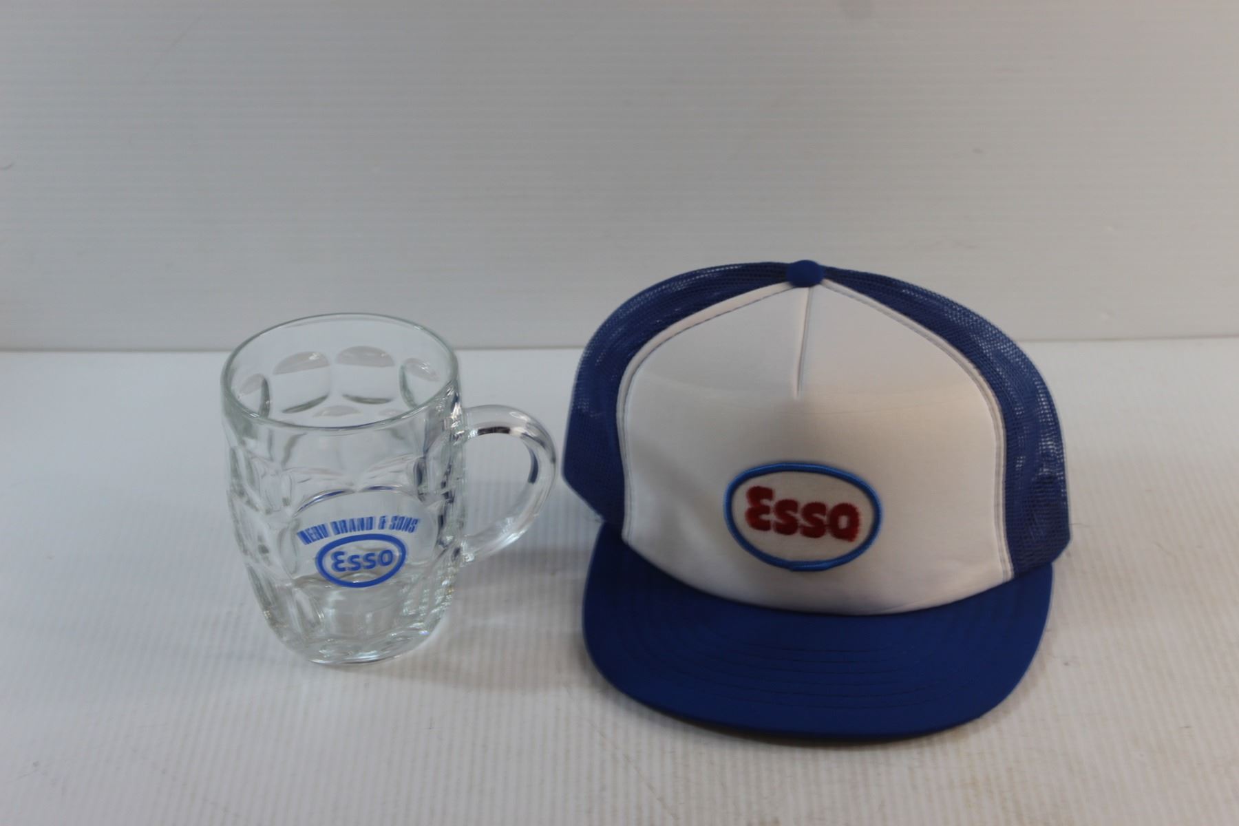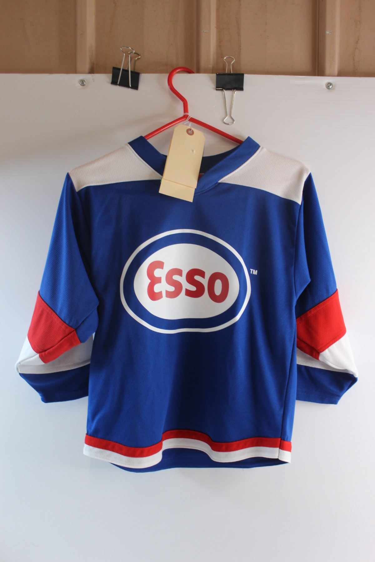 Vintage Esso Hockey Jersey - Size Youth (Small) + Vintage Esso Snapback Ballcap (New) + Vintage Merv Brand and Sons Esso Tumbler (1970s)