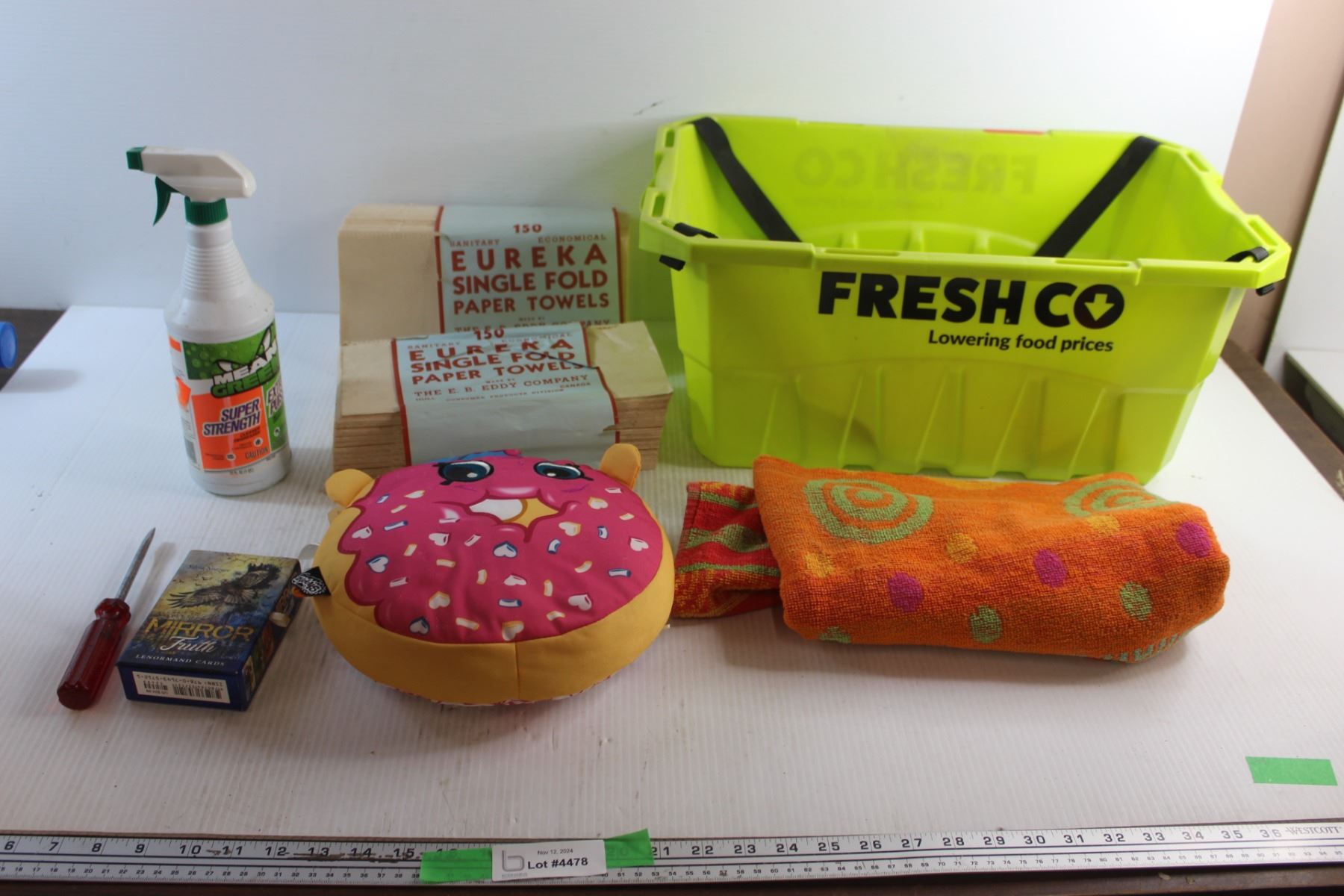 Vintage Eureka Paper Towels, FreshCo Shopping Basket, Donut Cushion, Screwdriver, Super Strength Cle