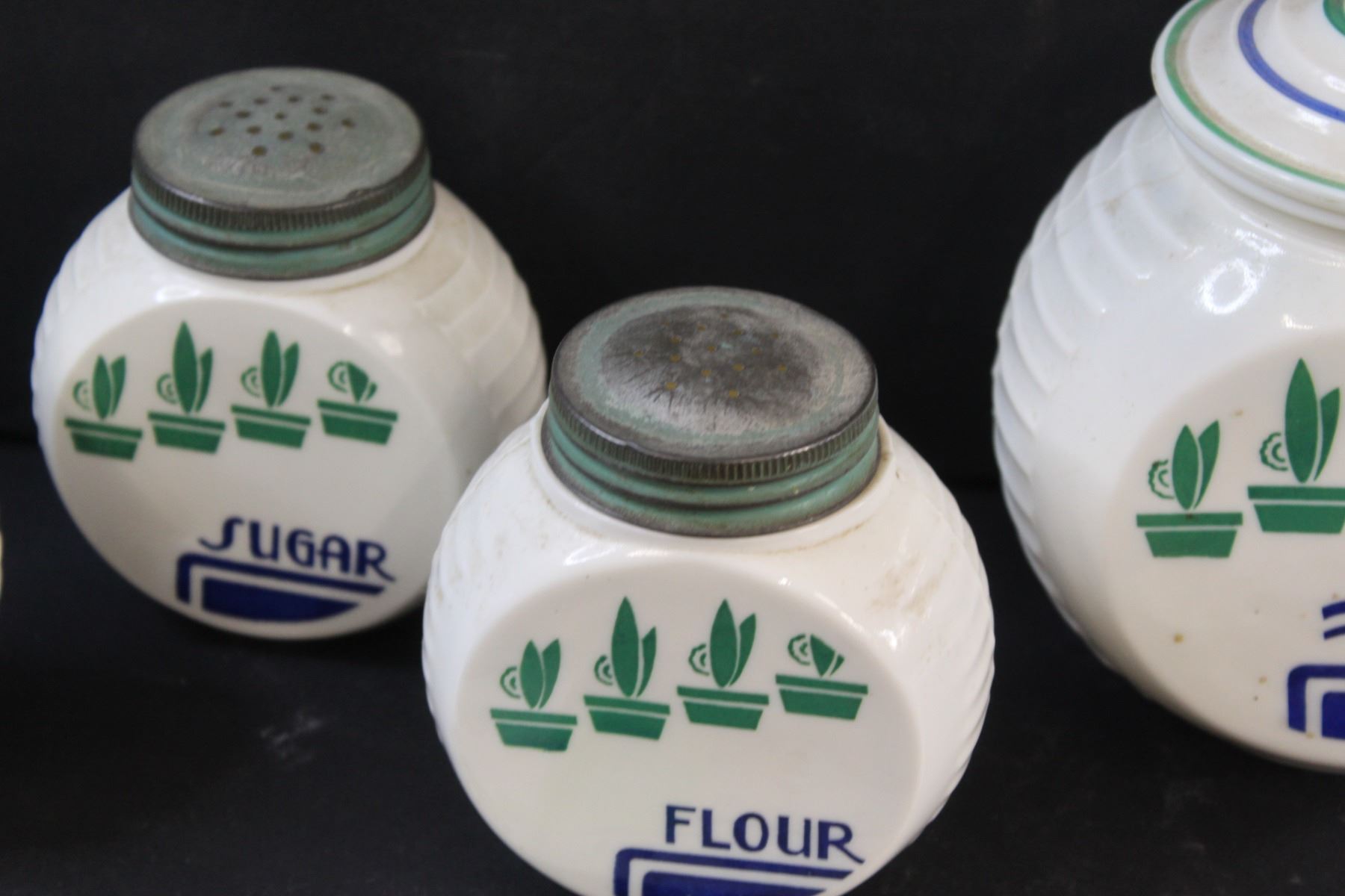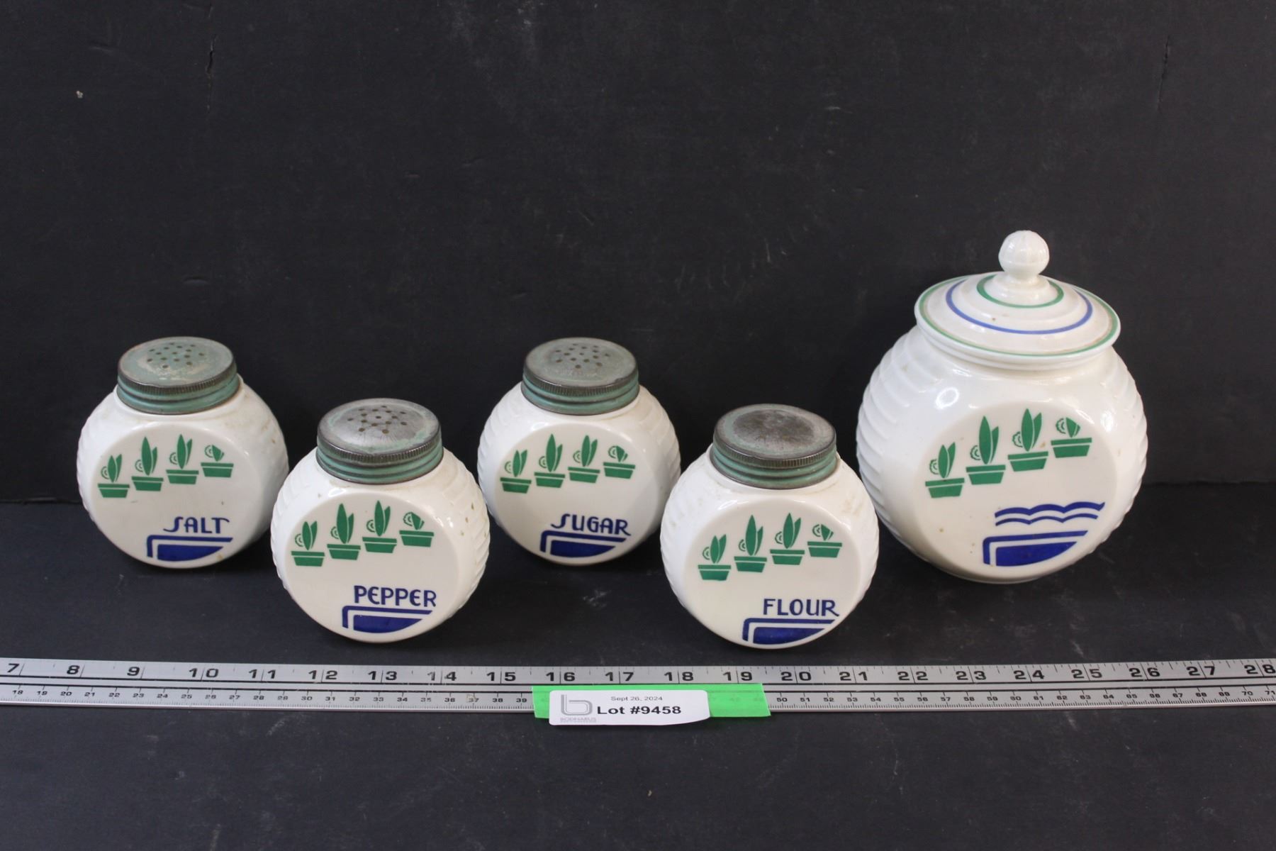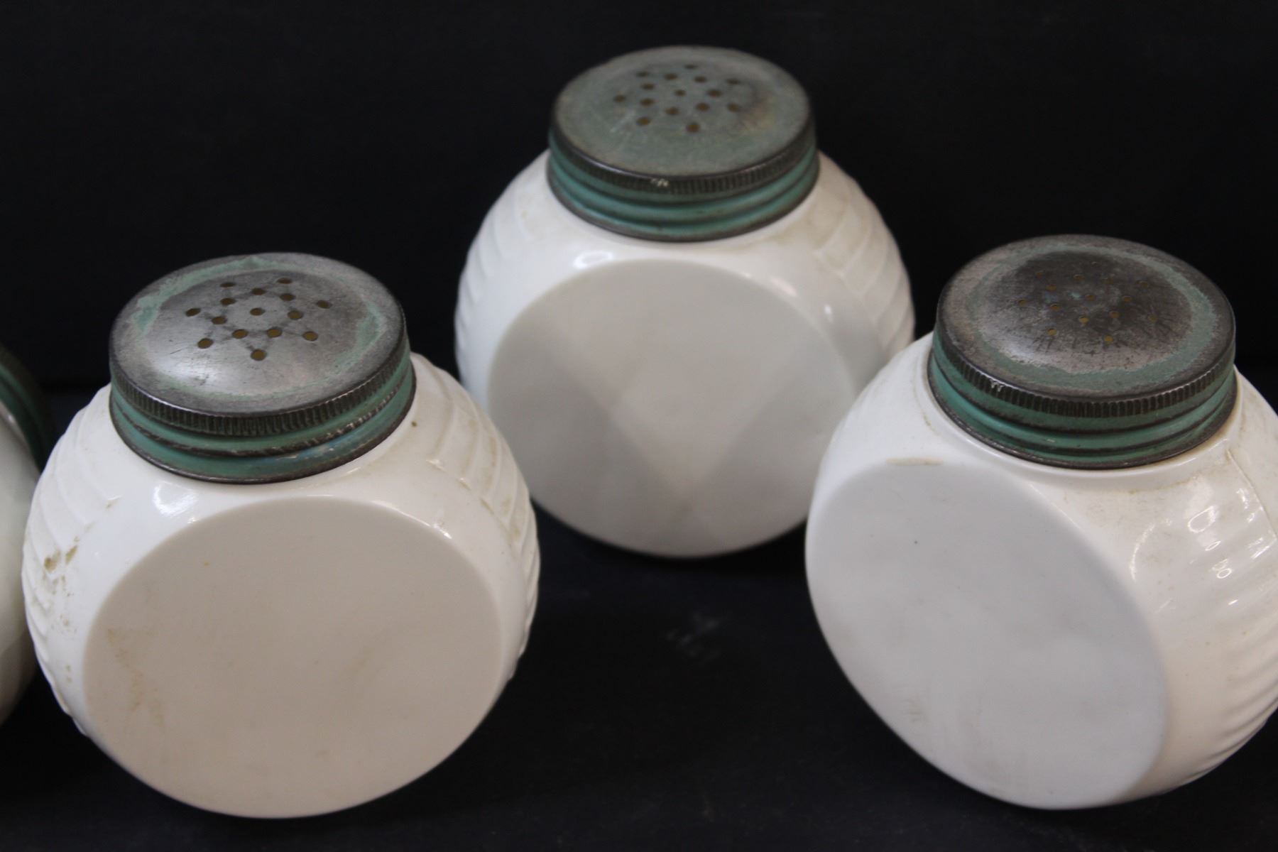 Vintage Fire King Milk Glass Kitchen Storage Jar Set: Salt & Pepper Shakers, Sugar & Flour Bowls