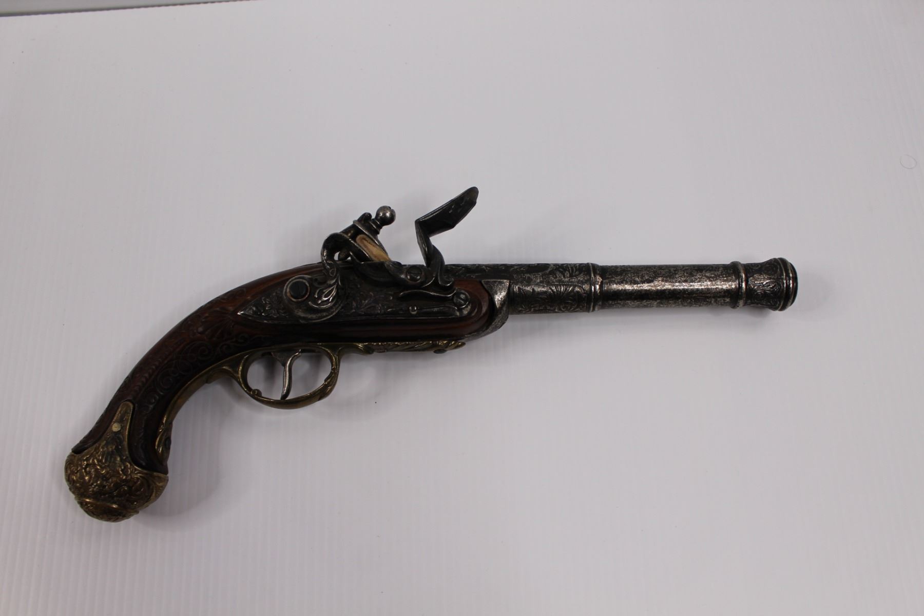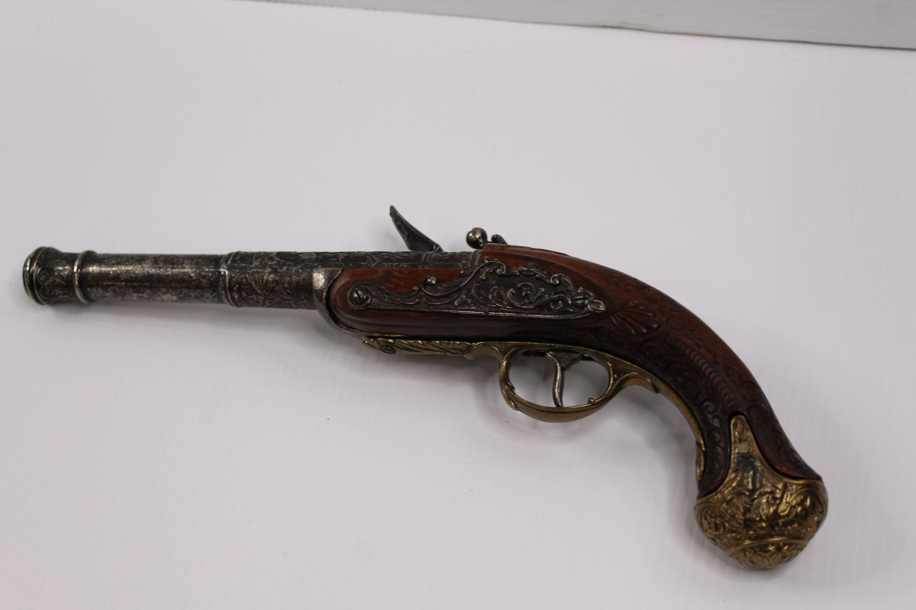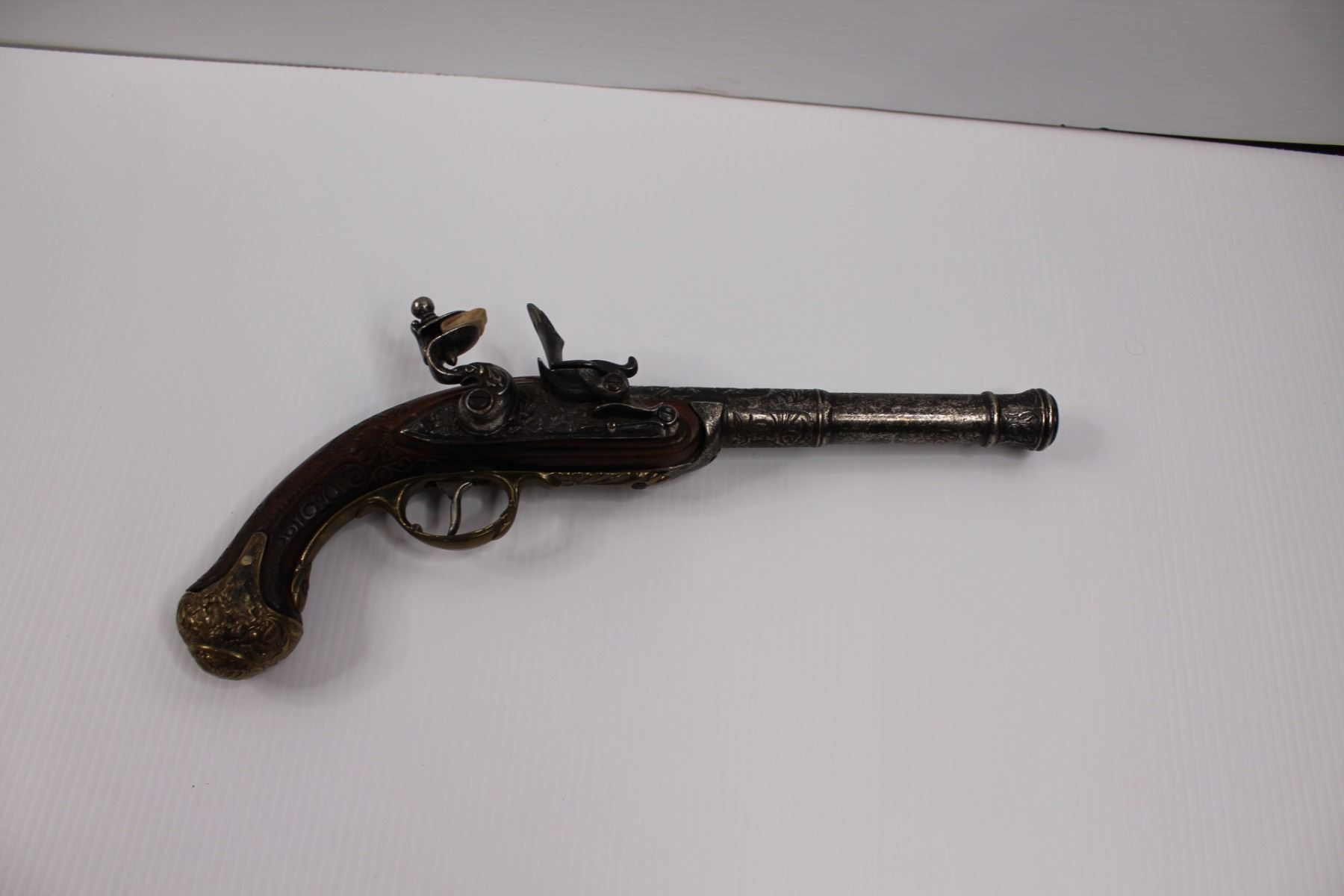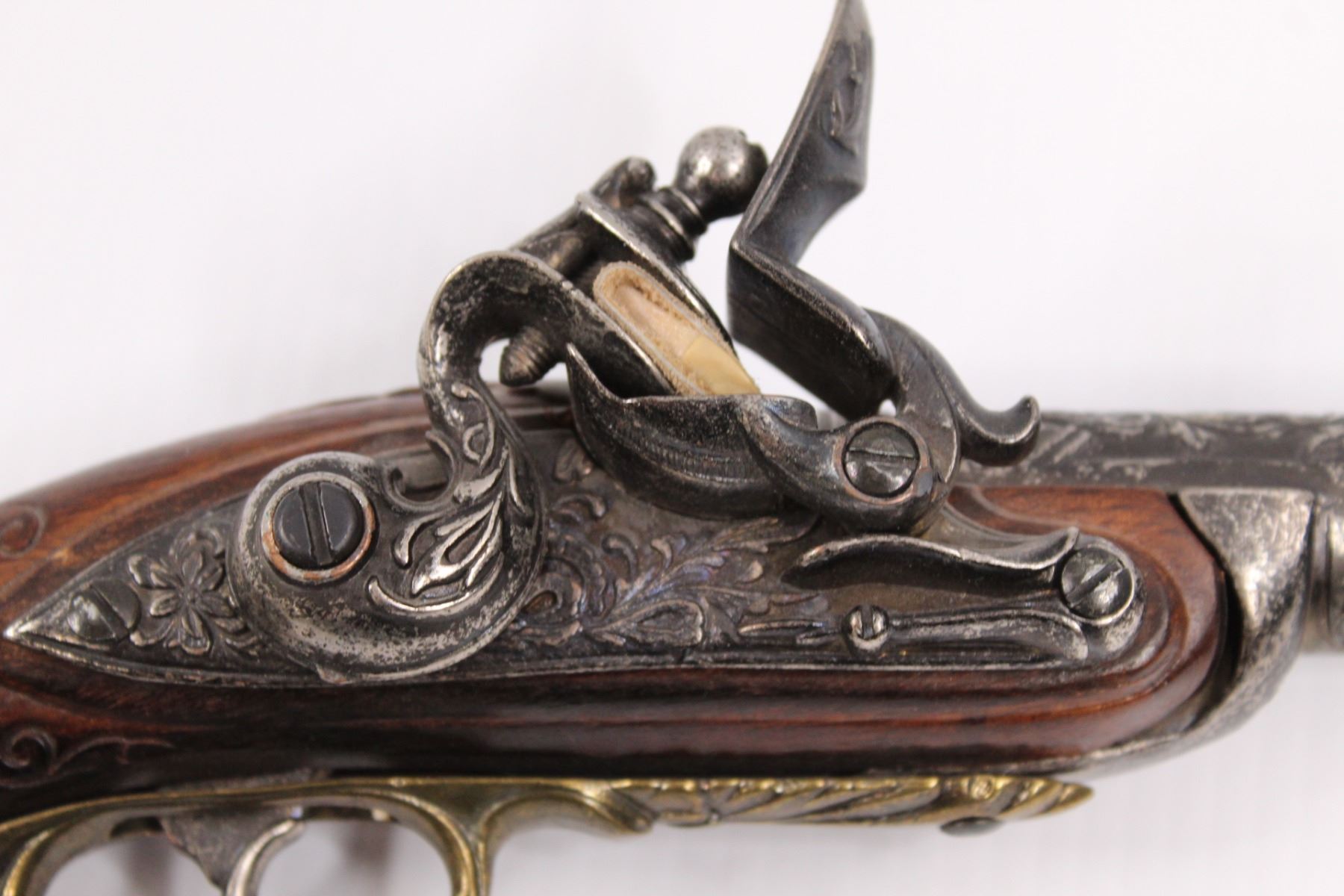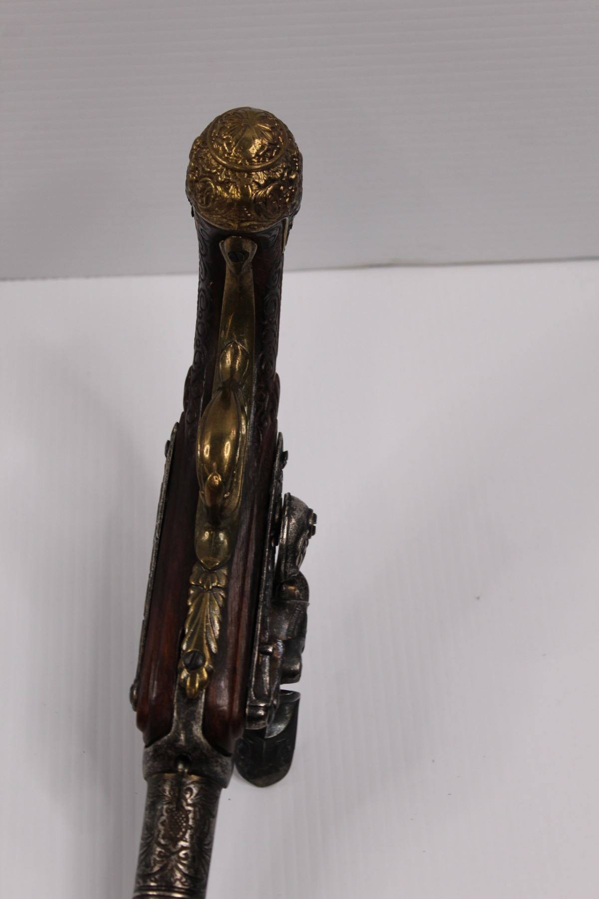 Vintage Flintlock Muzzleloader (Replica) Wall Hanger w/ Functioning Action - Brass & Cherry Wood