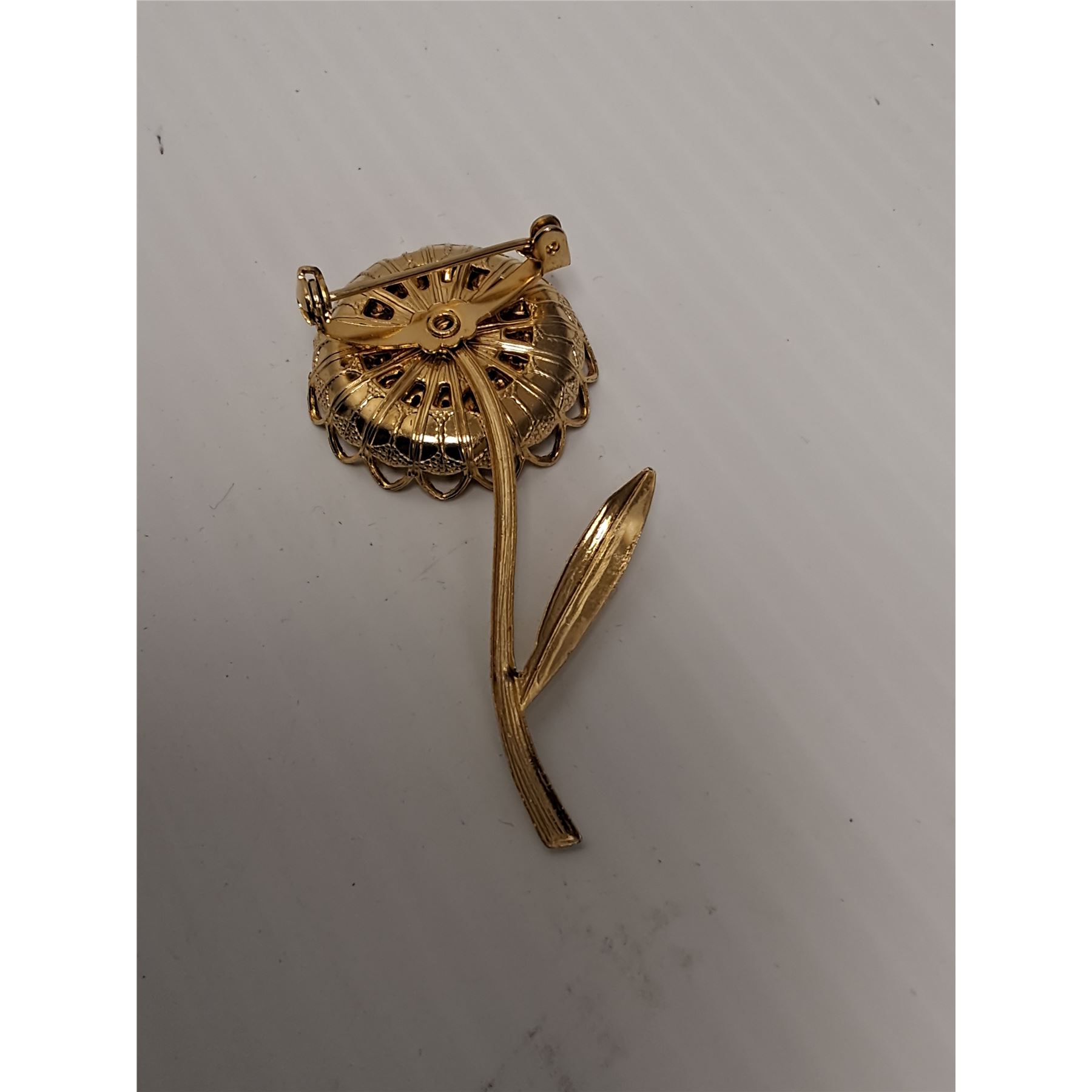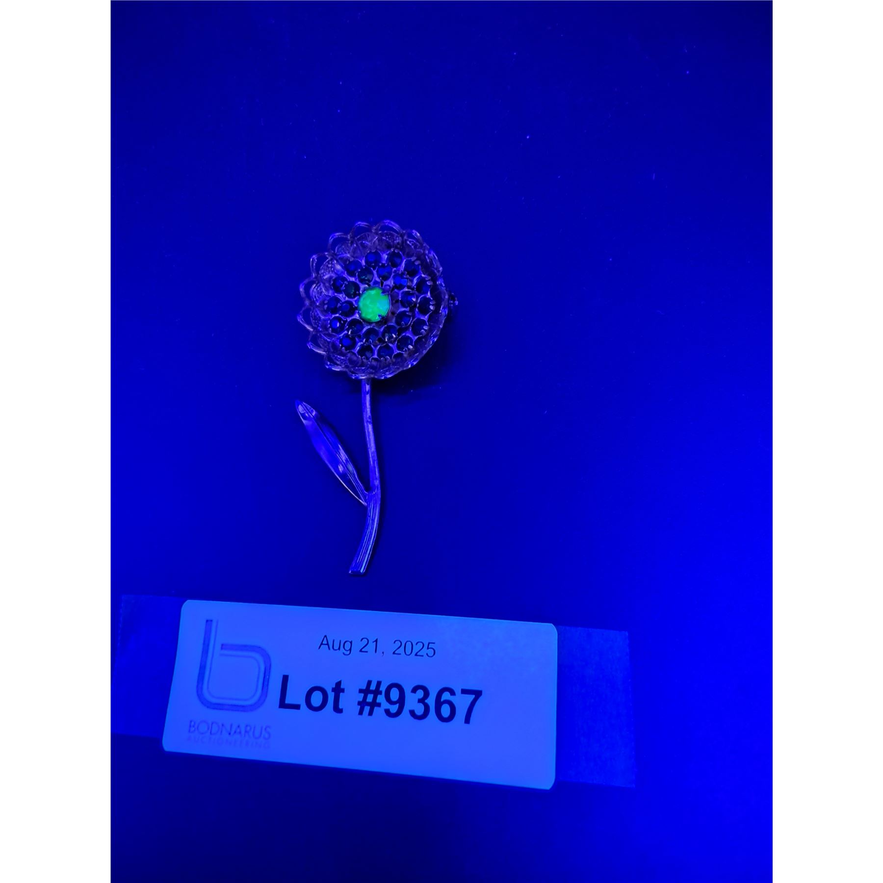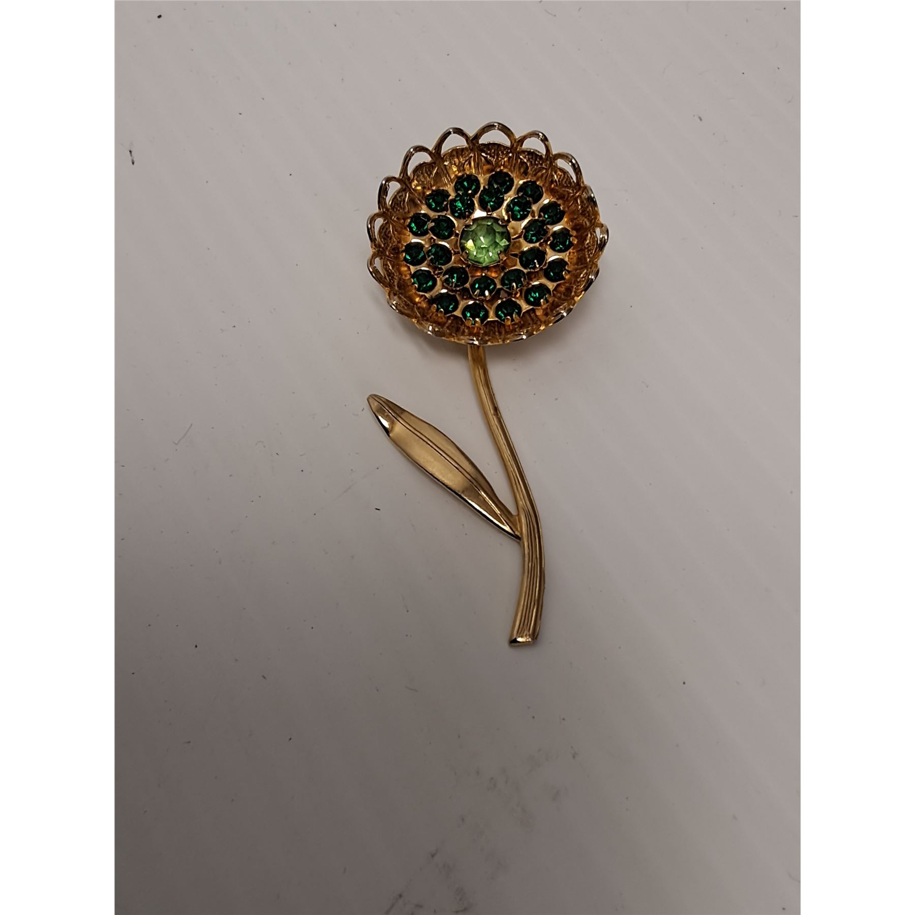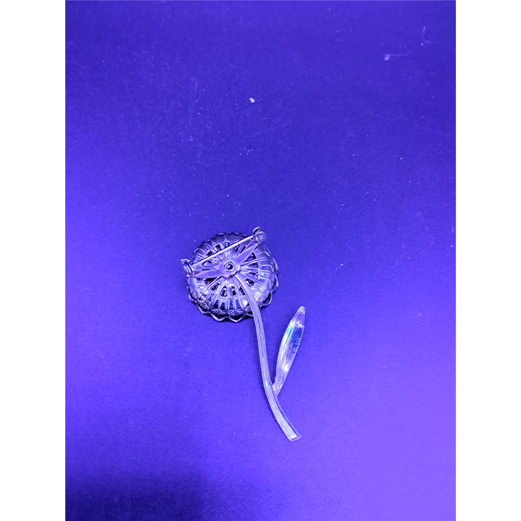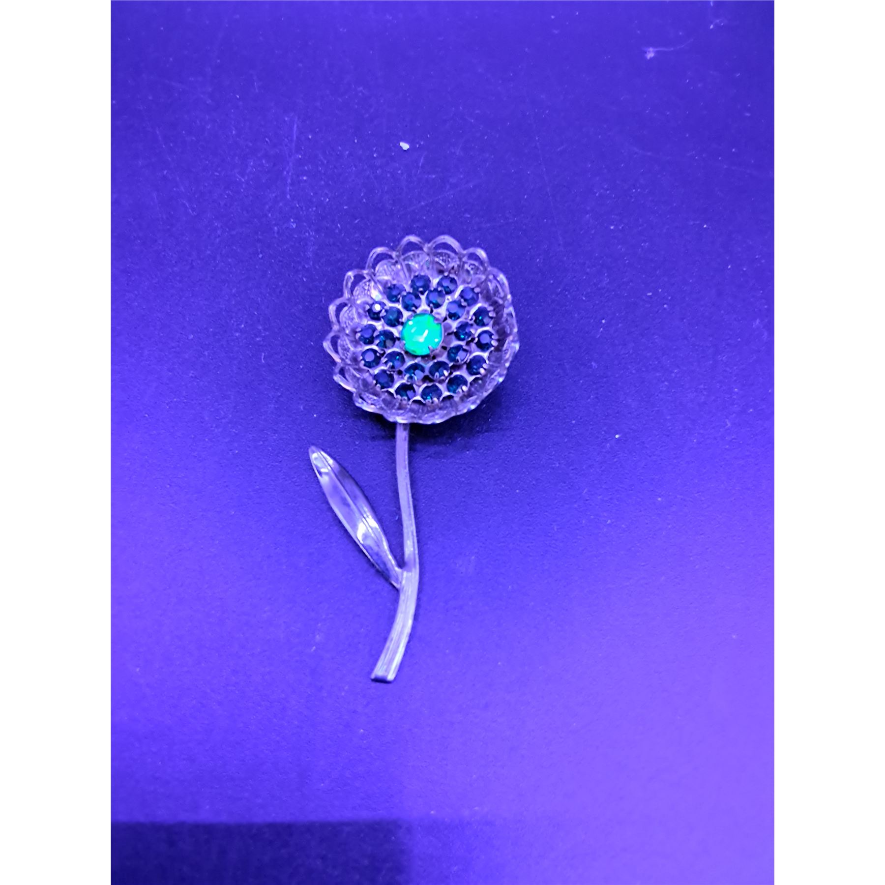Vintage Flower Patterned Uranium & Colored Jeweled Brooch Jewelry - 3  x 1.5