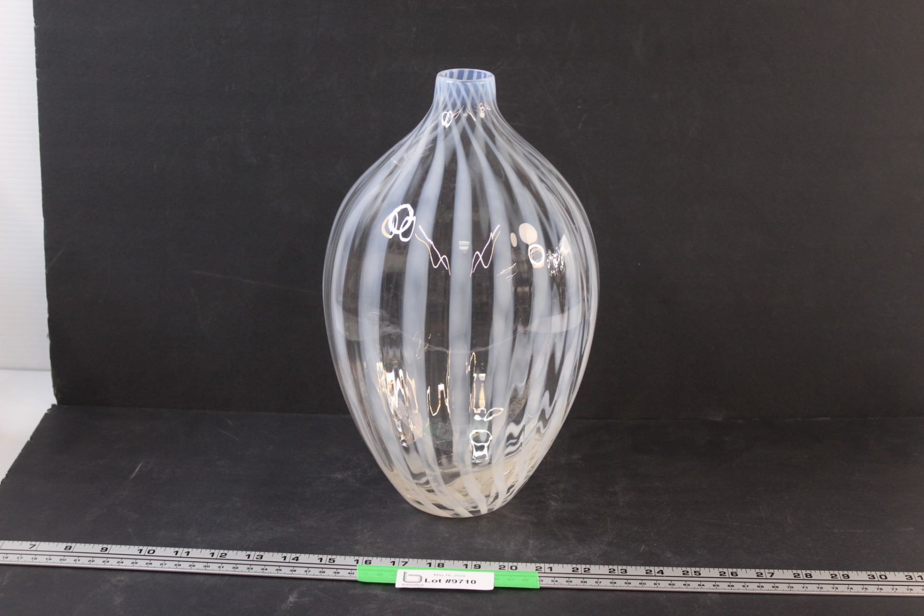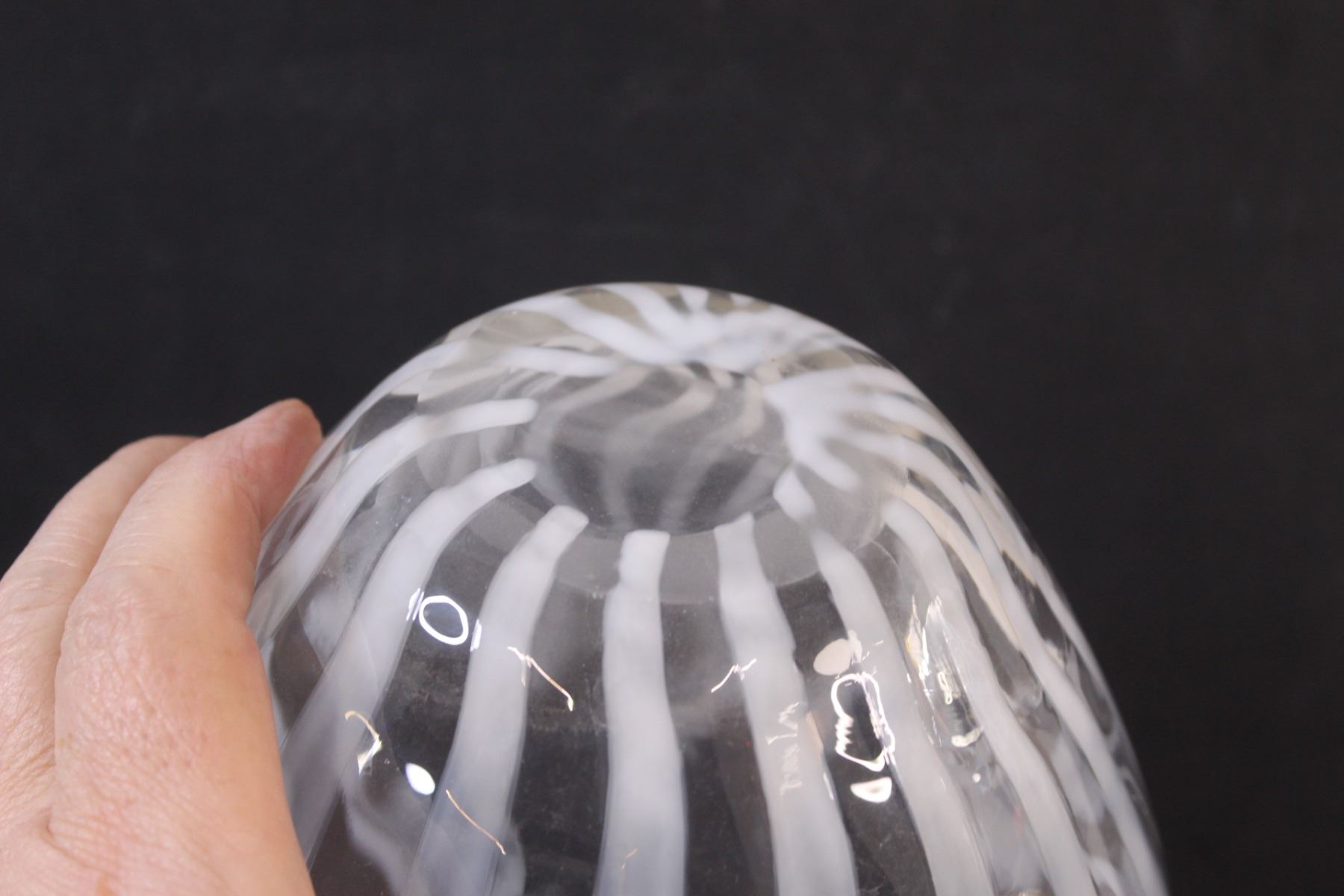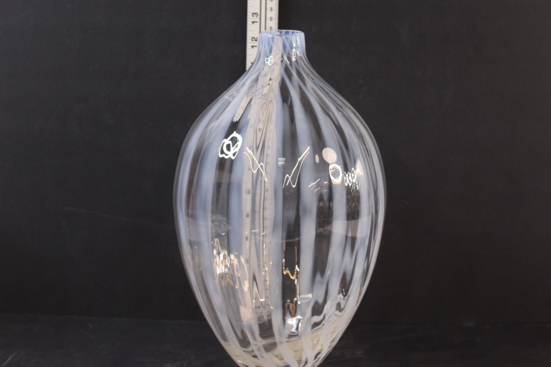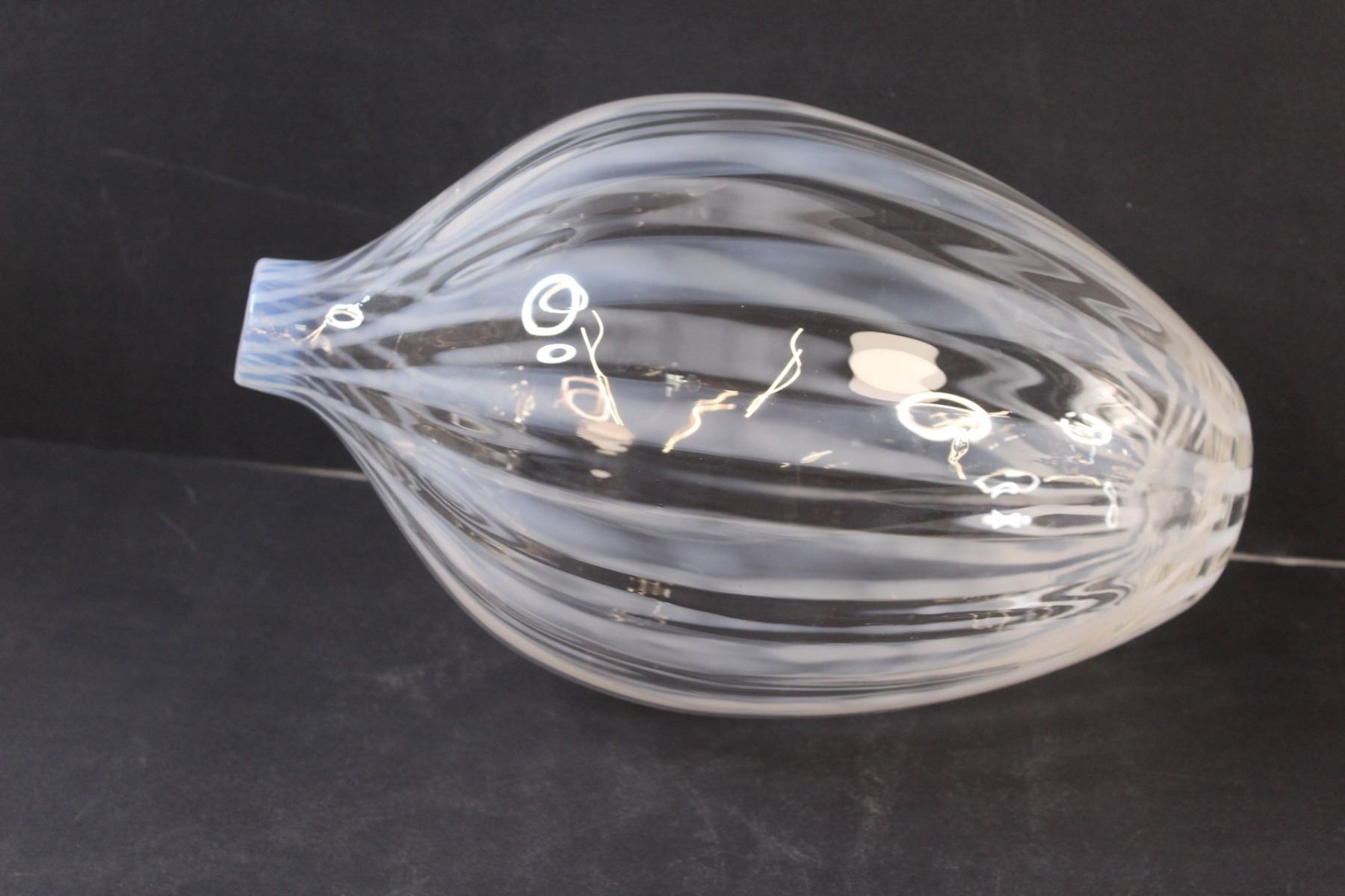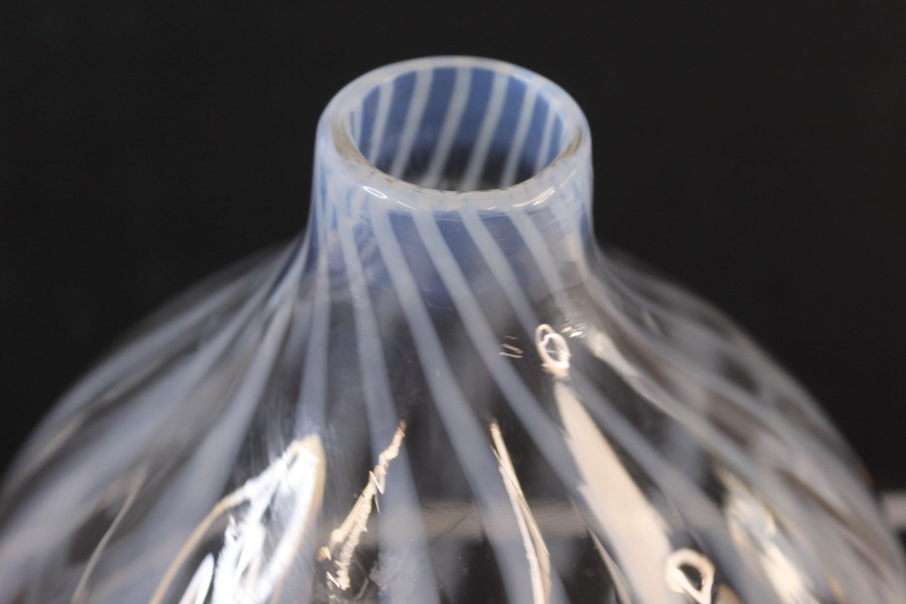 Vintage French Opalescent Striped Large Art Glass Vase Polished Pontil and Fire Polished Top