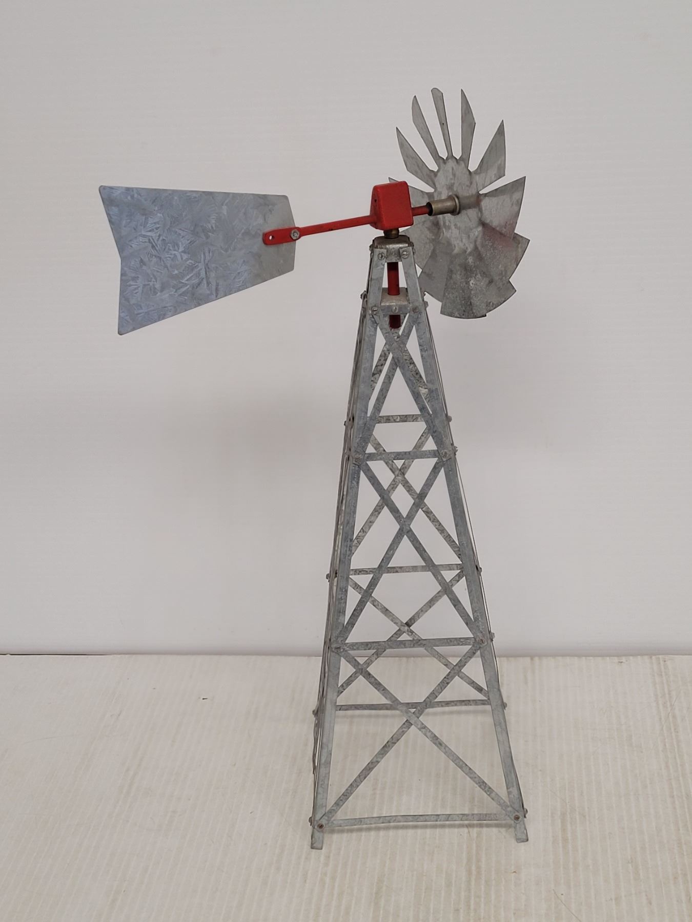 Vintage Galvanized Steel Miniature Farm Windmill 17"