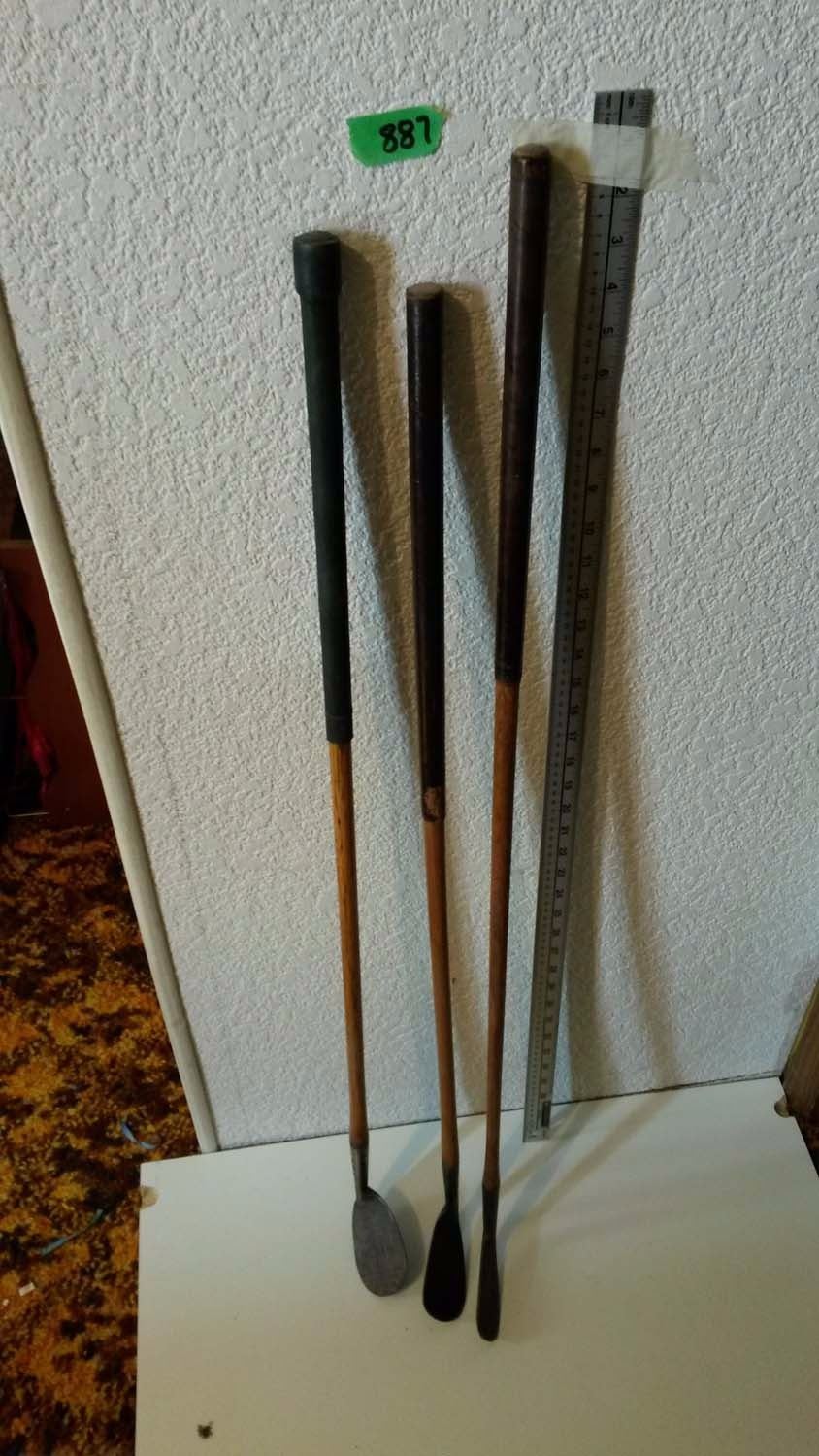 Vintage Golf Clubs With Wooden Handles (Invincible, D. Anderson, Gleneagles)