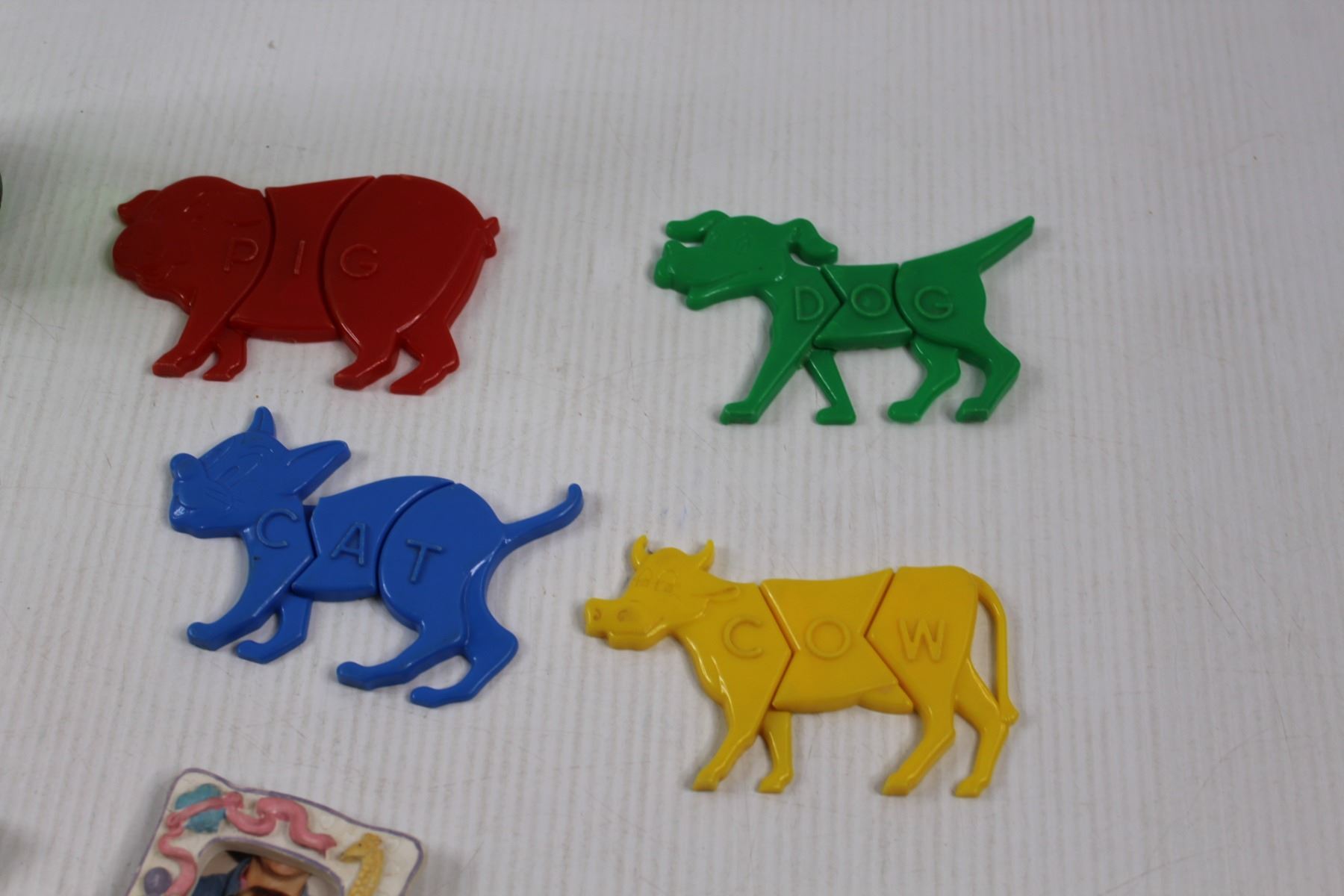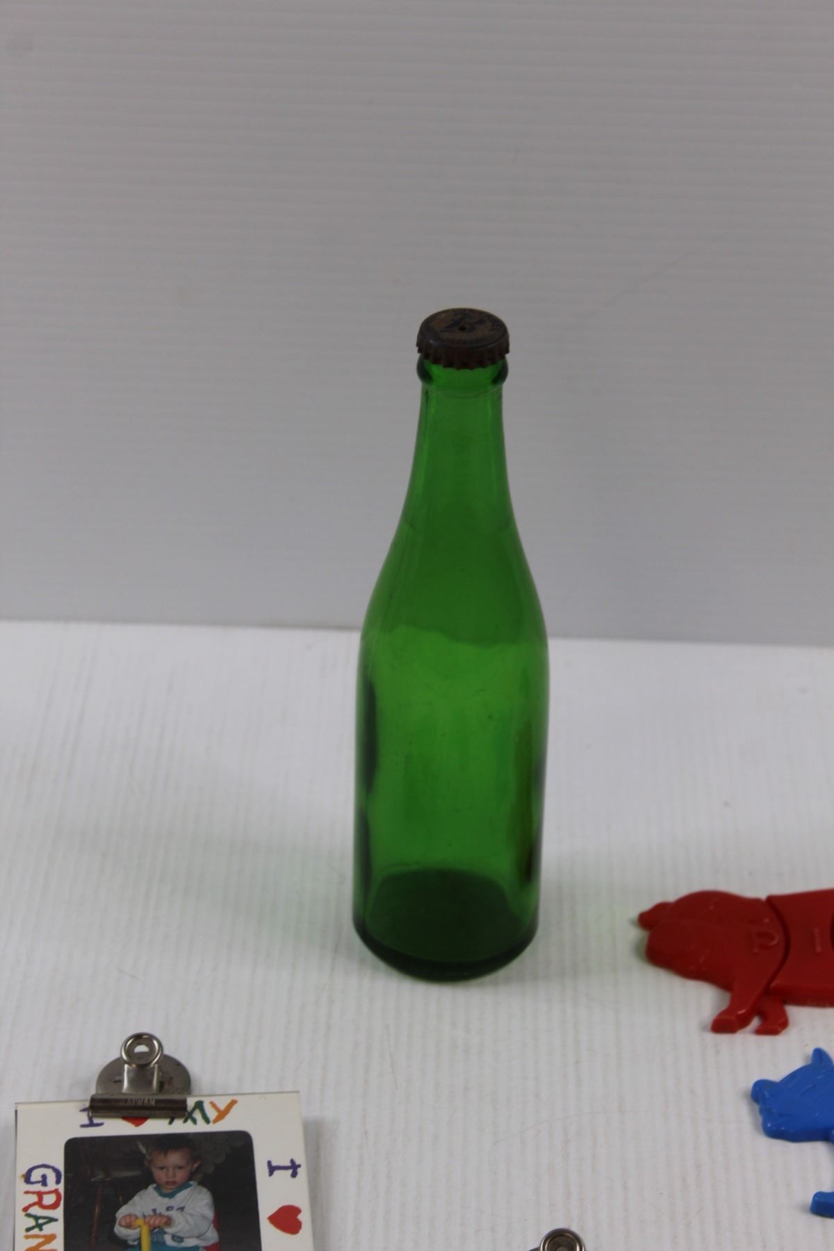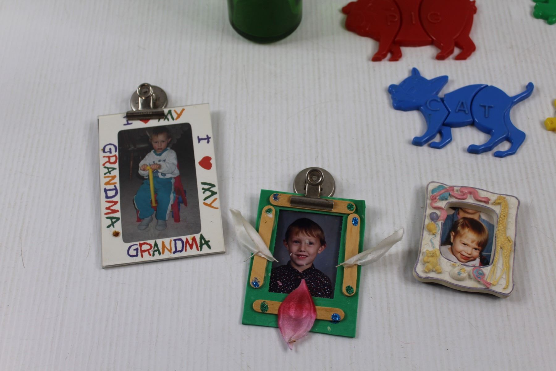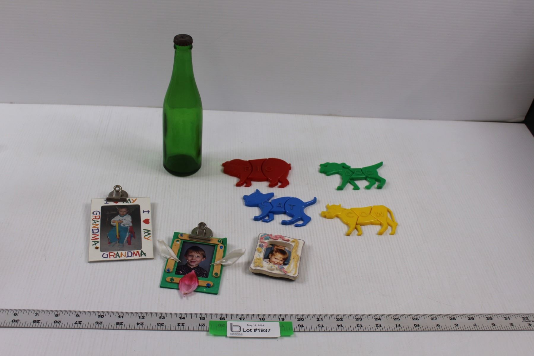 Vintage Green Glass Bottle, Kids Animal Puzzles & *(3) Fridge Magnet Picture Frames