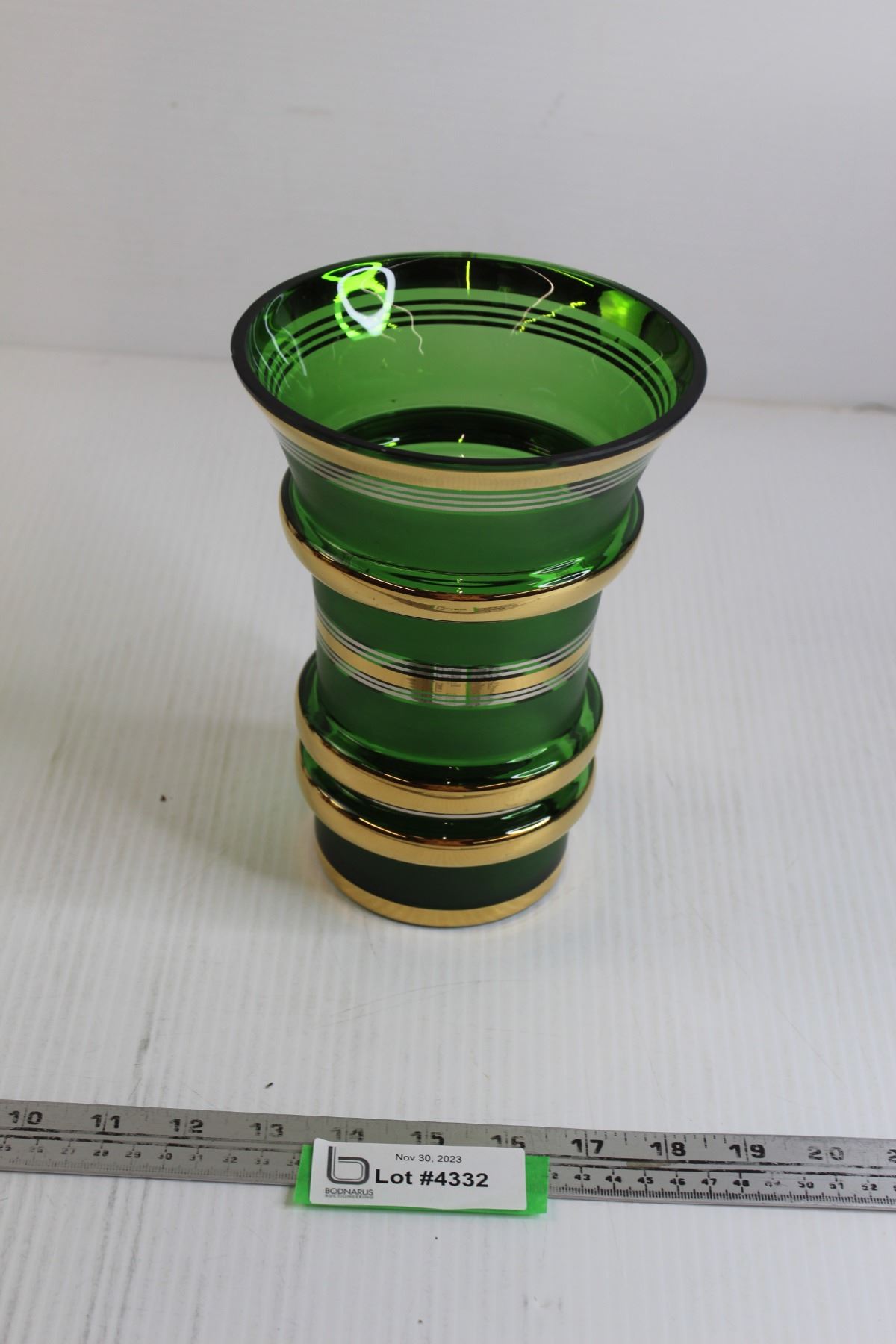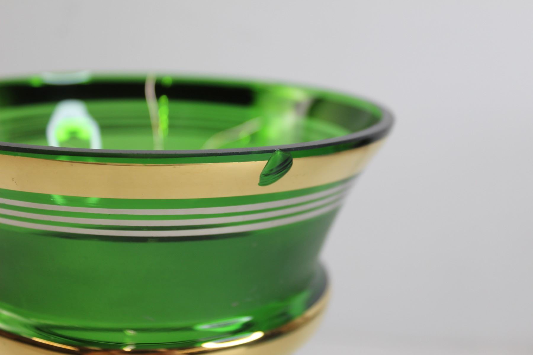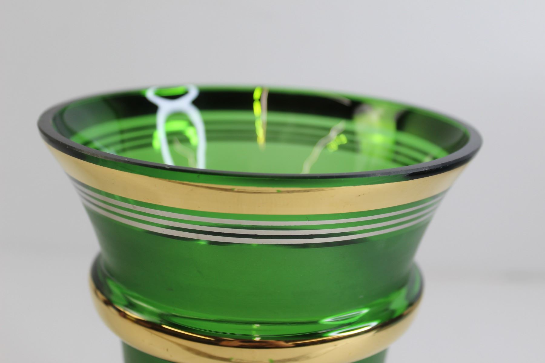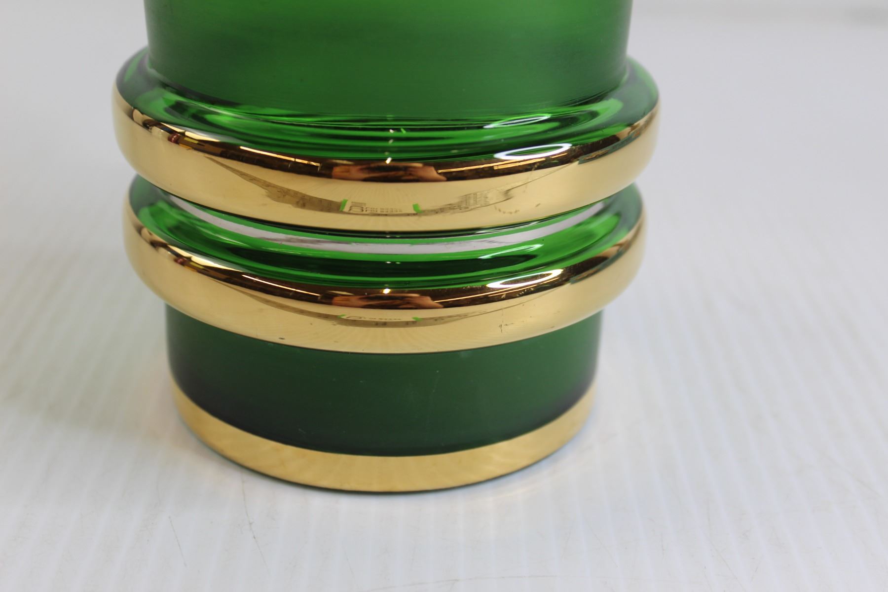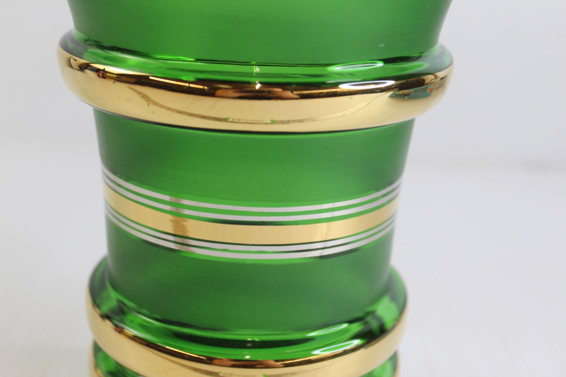 Vintage Green Glass Vase with Gold Accents - Chipped