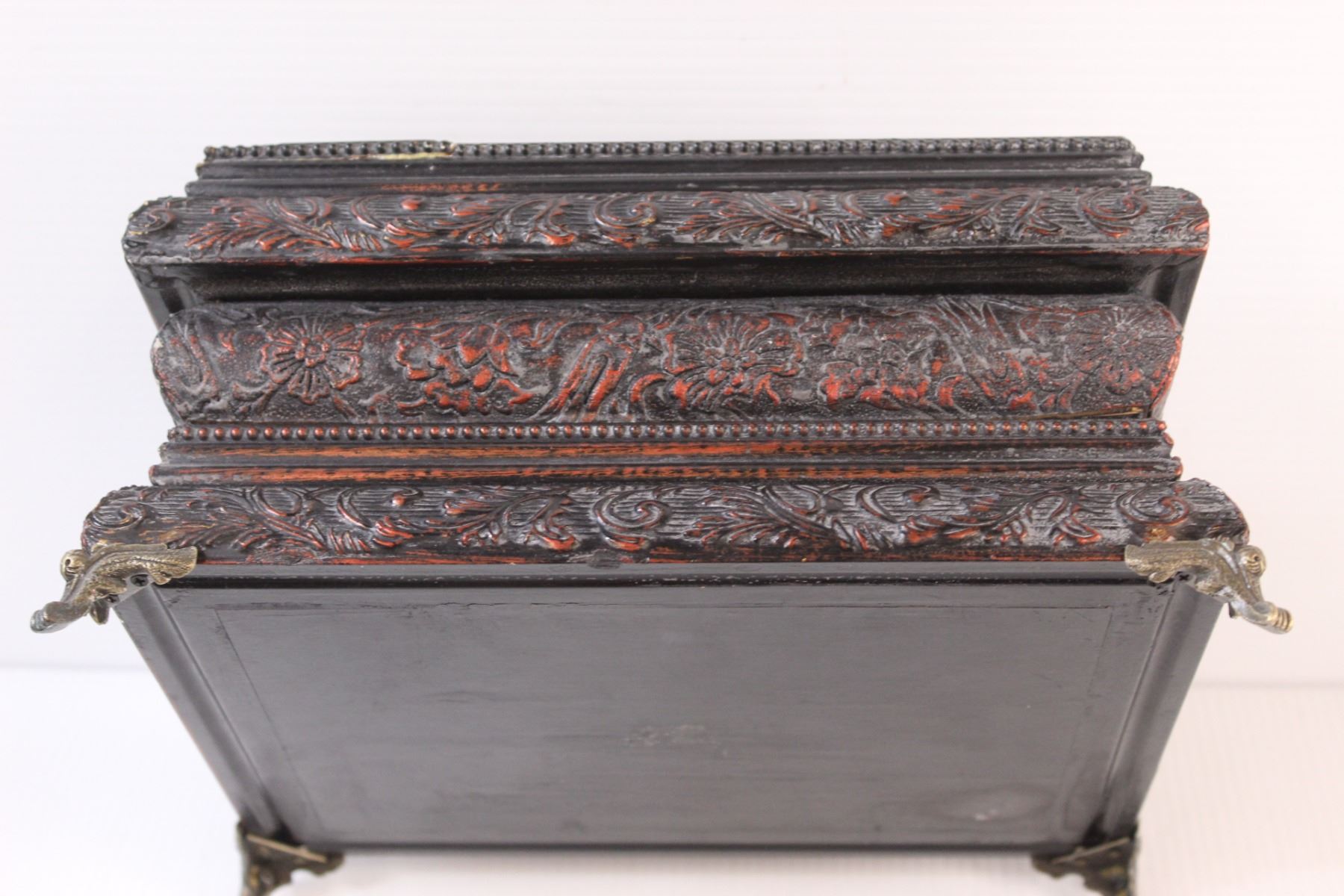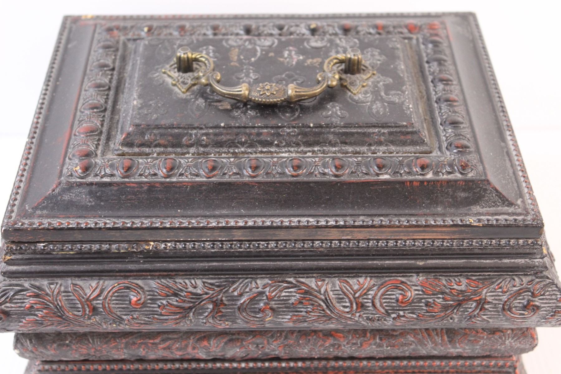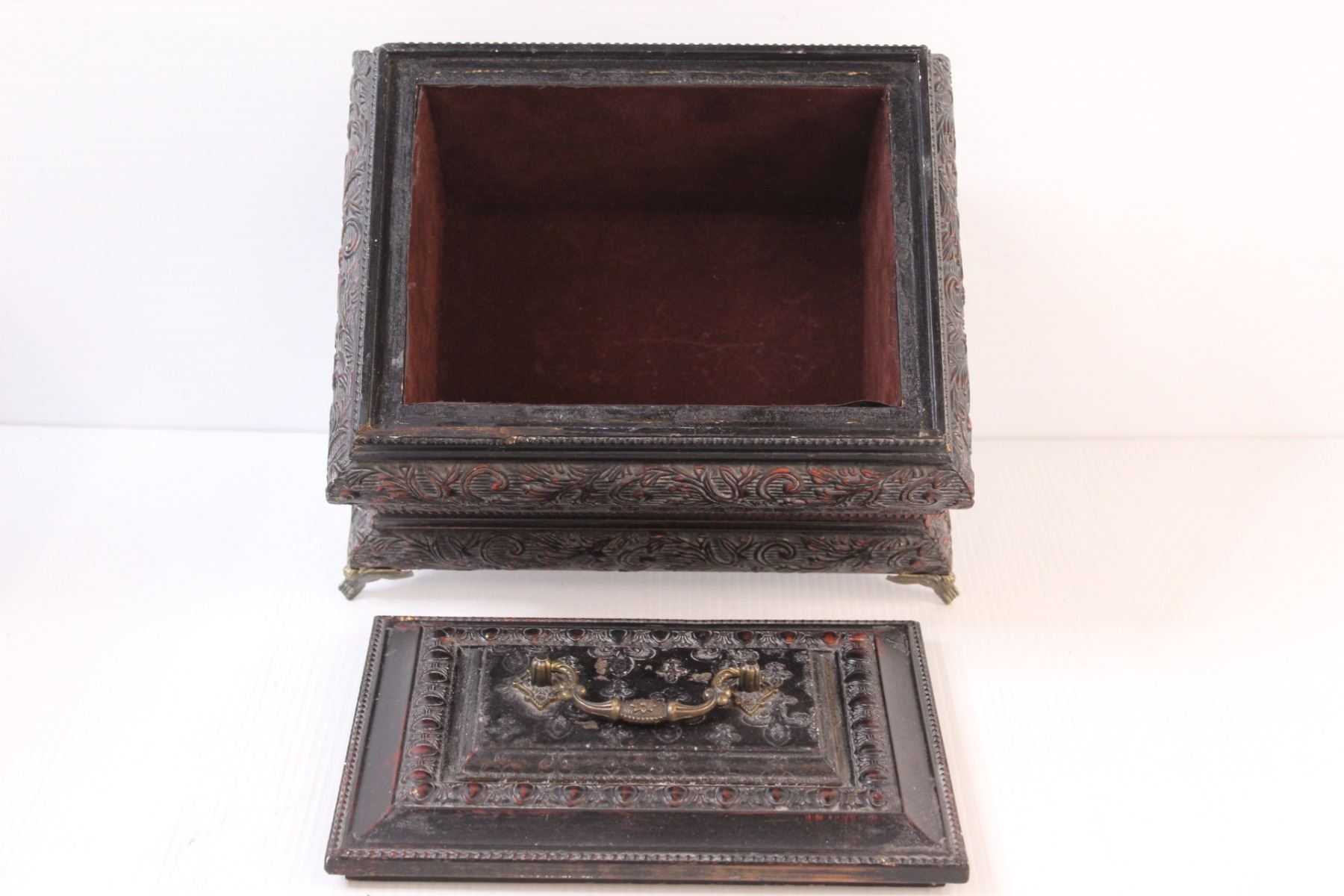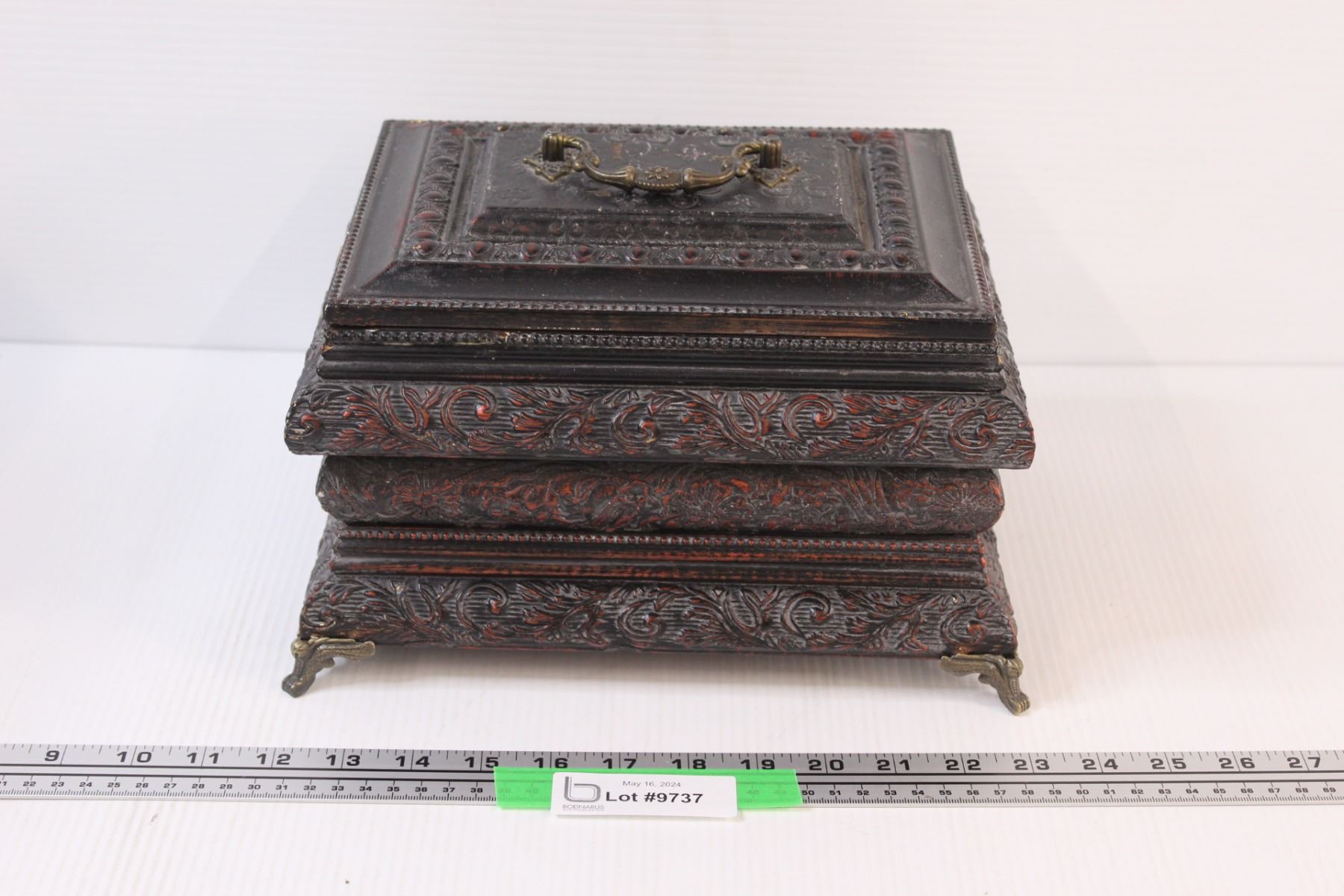 Vintage Hand-Carved Wooden Trinket Storage Box - 11" Wide