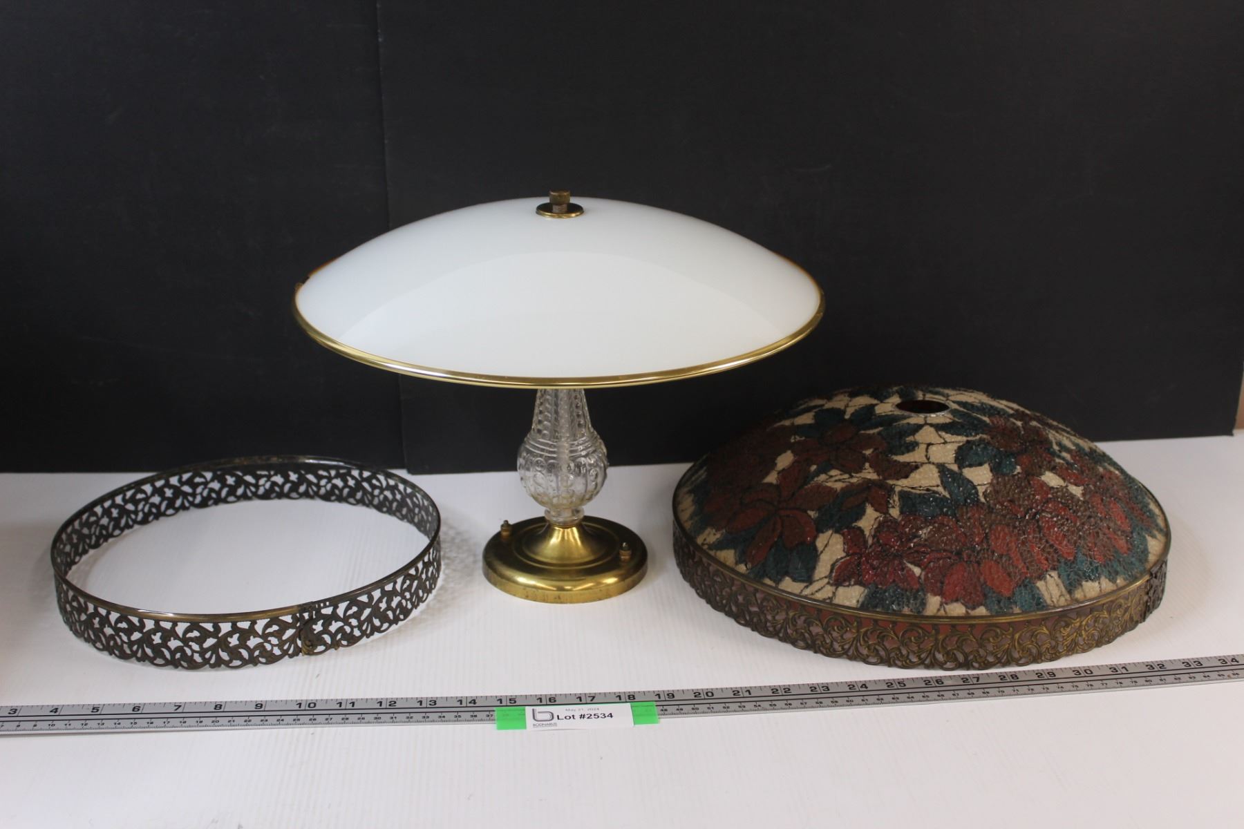 Vintage Hanging Light w/(2) Glass Shades & Extra Metal Ring - 11" x 15"