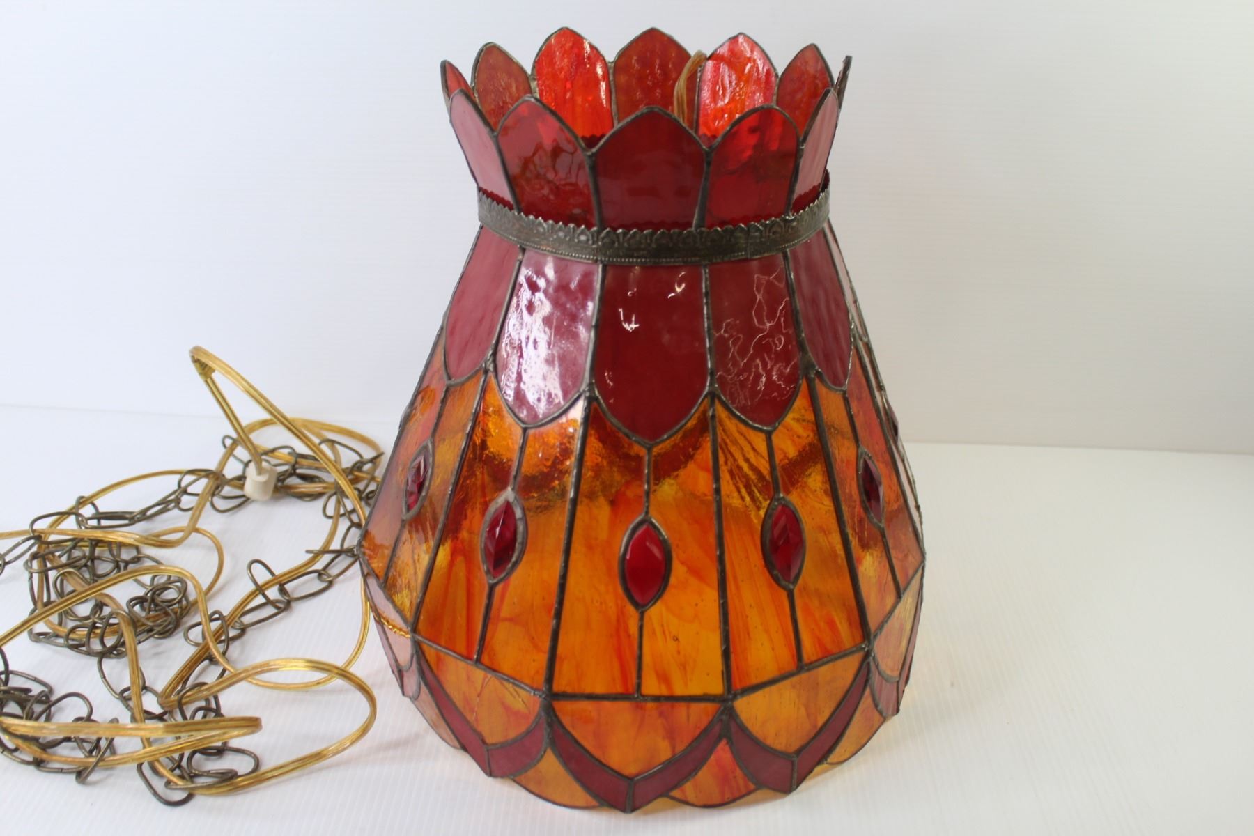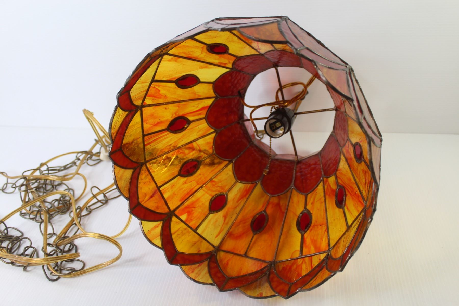 *Vintage Hanging Stained Glass Lamp