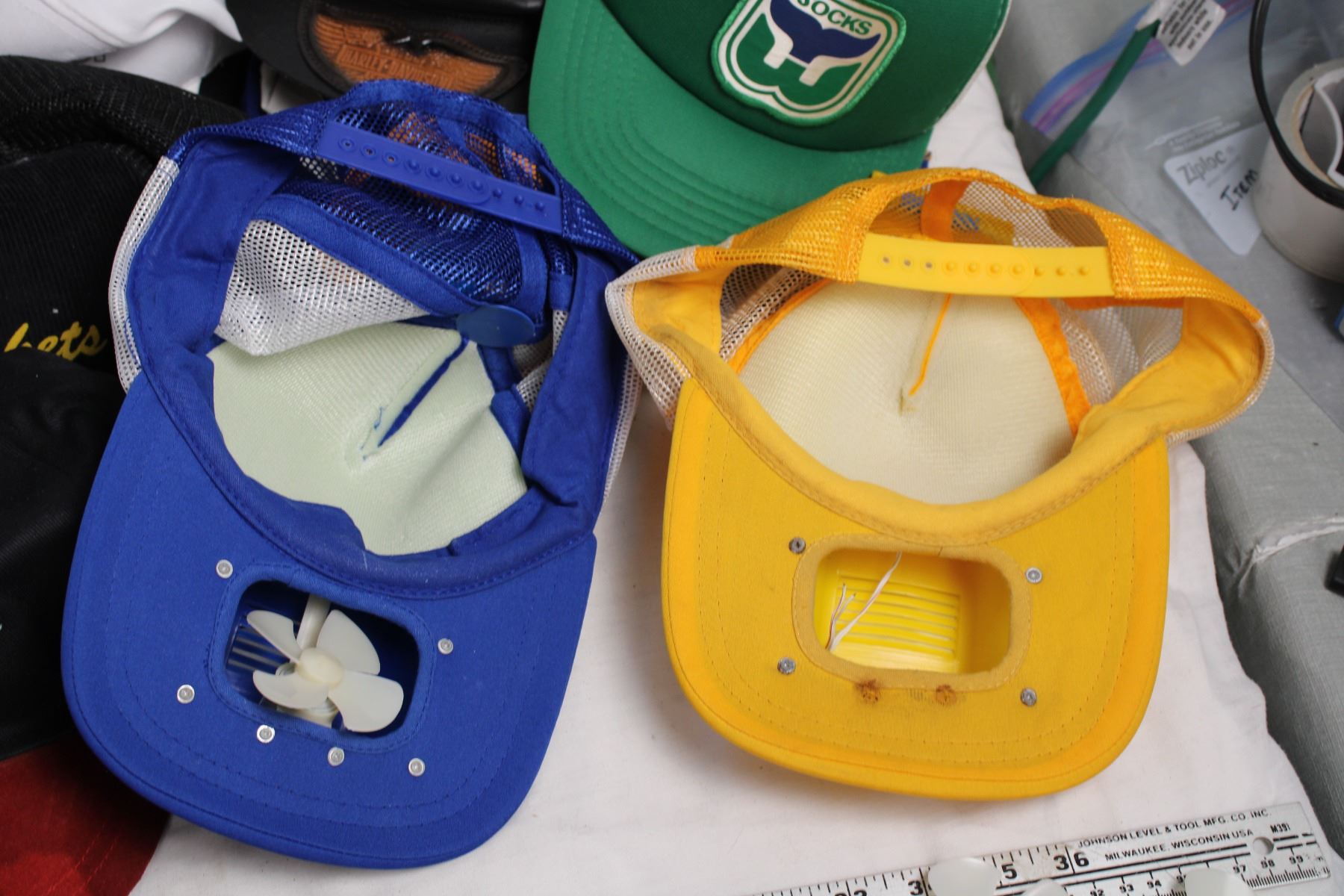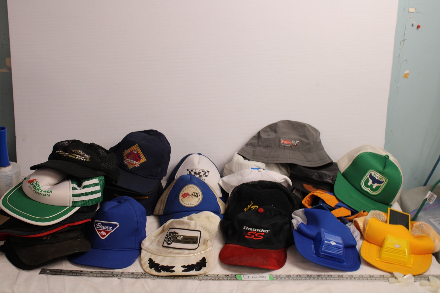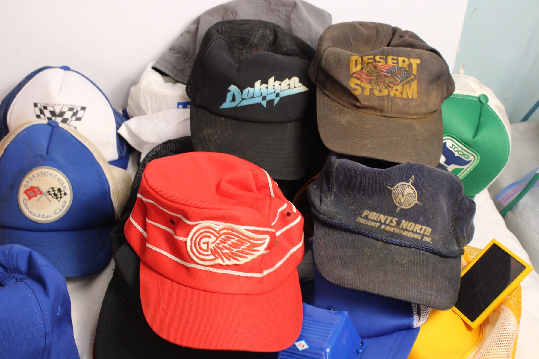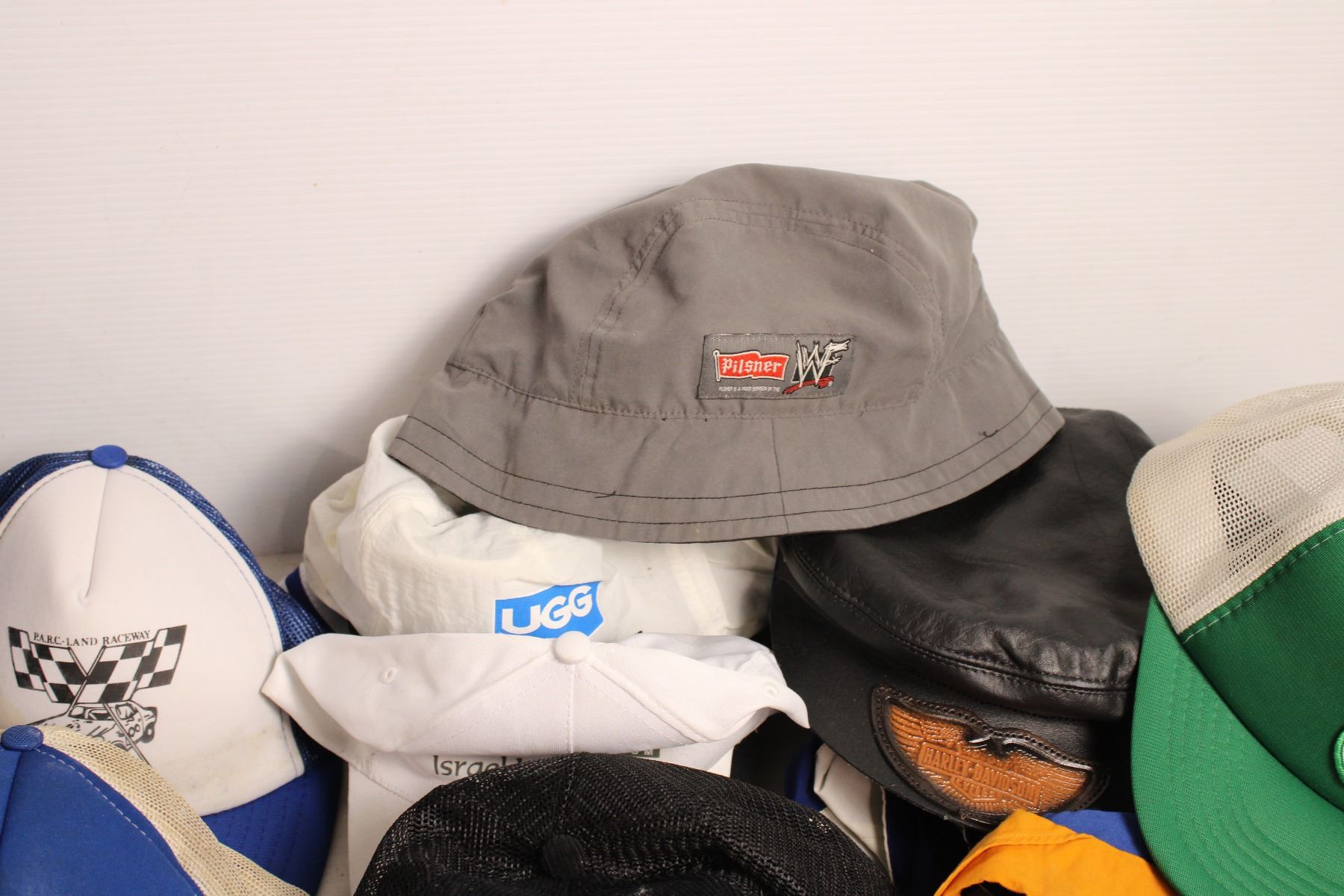 Vintage Hat lot, WWF pilsner, detroi red wings, harley davidson, etc (needs cleaning)