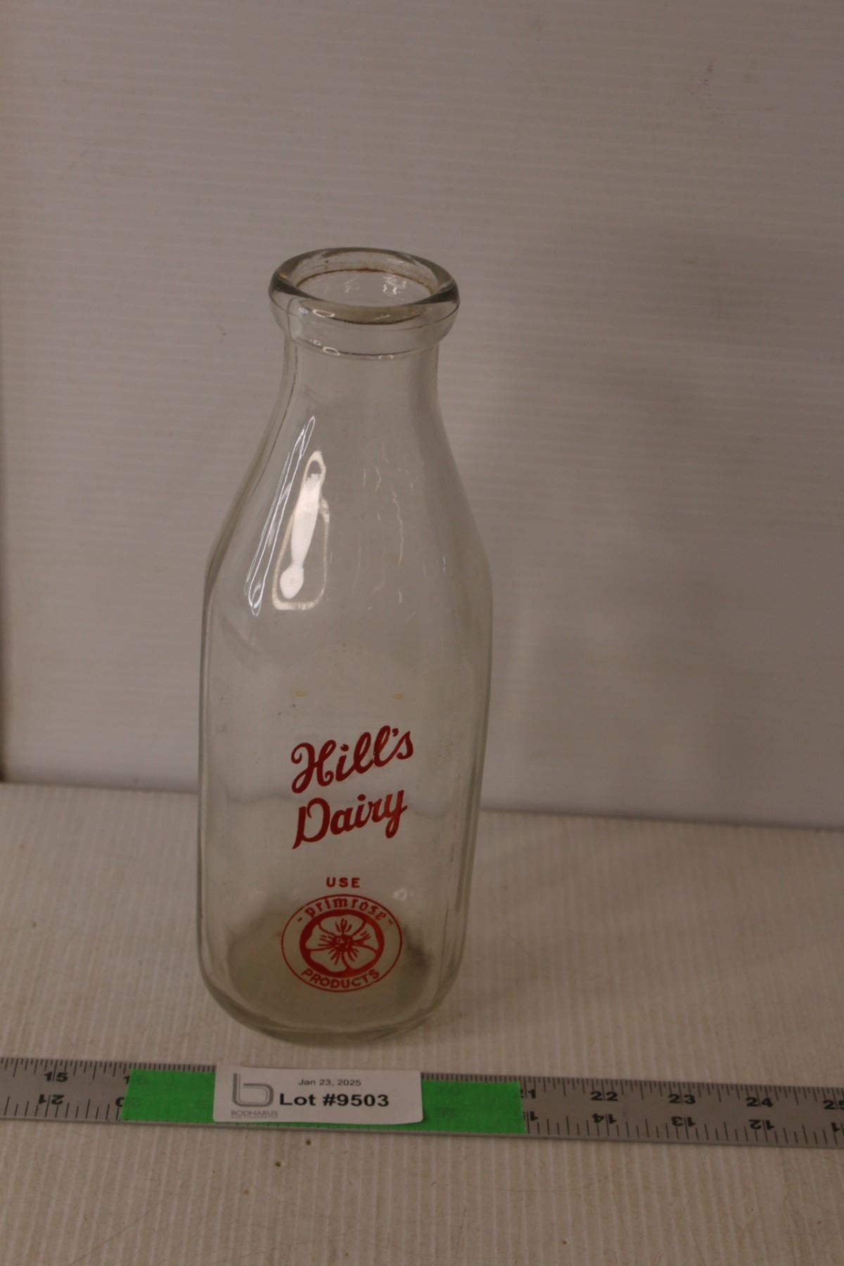Vintage Hill's Dairy Glass Milk Bottle 10" Tall