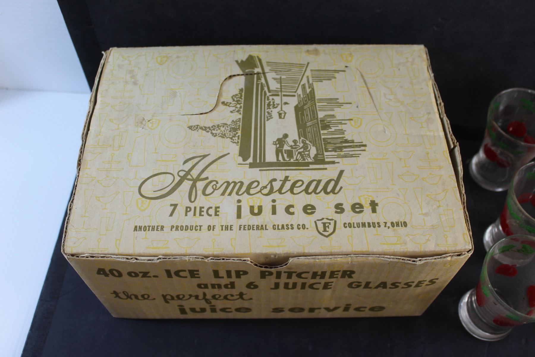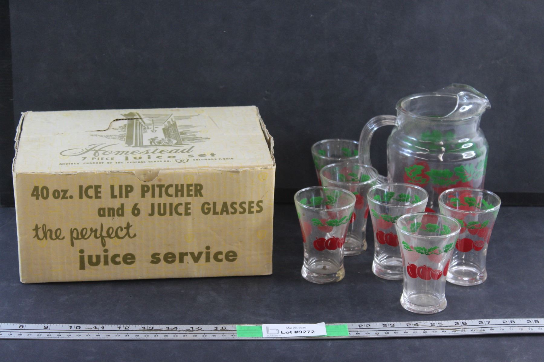 Vintage Homestead 40 oz. Ice Lip Pitcher and 6 Juice Glasses