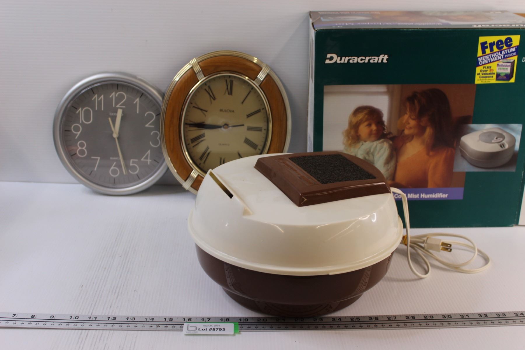 Vintage Humidifier, as is & (2) Battery Wall Clocks, -Untested