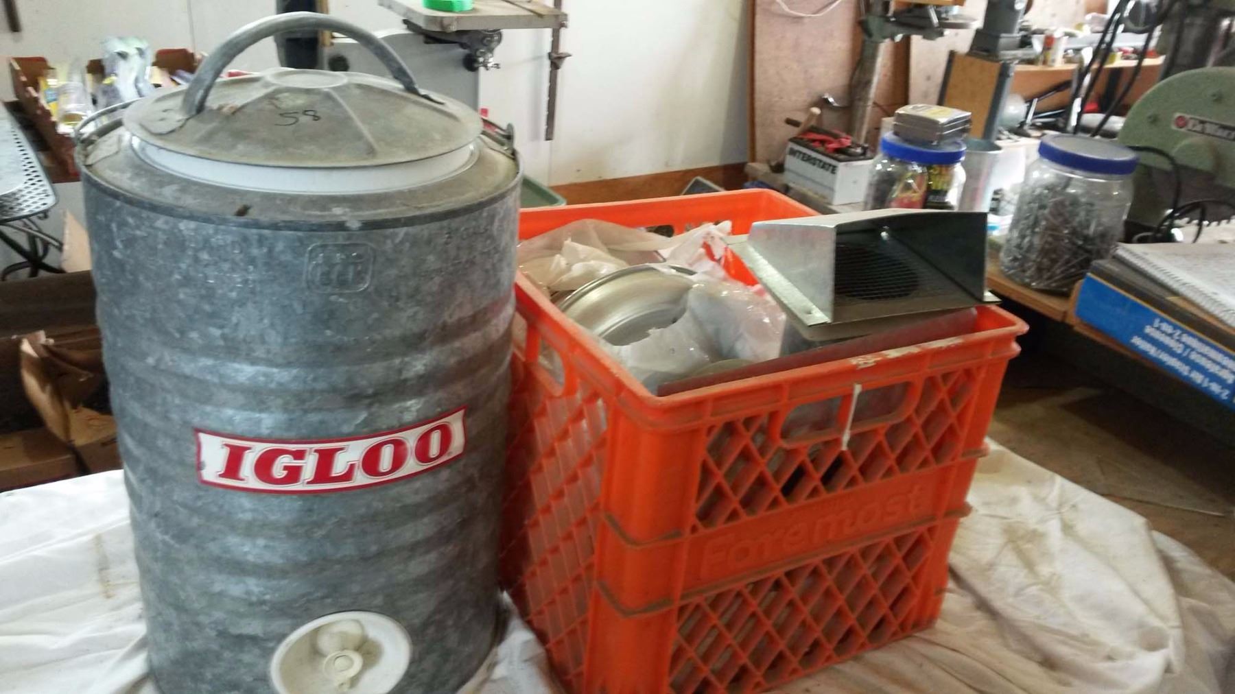 Vintage Igloo Water Container (3GAL), Crate Of Roof Vents