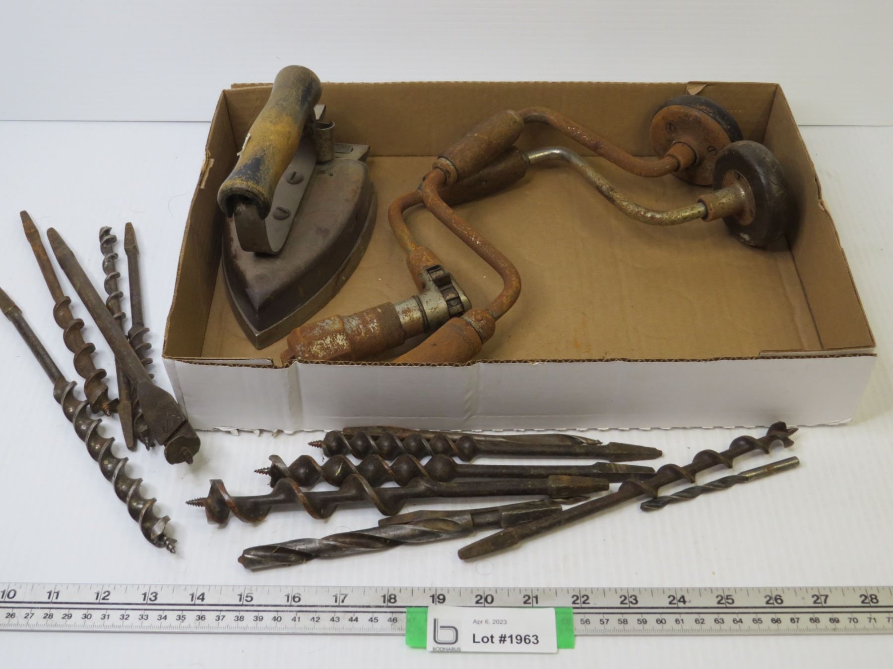 Vintage Iron - (2) Vintage Hand Drills - Drill Bits