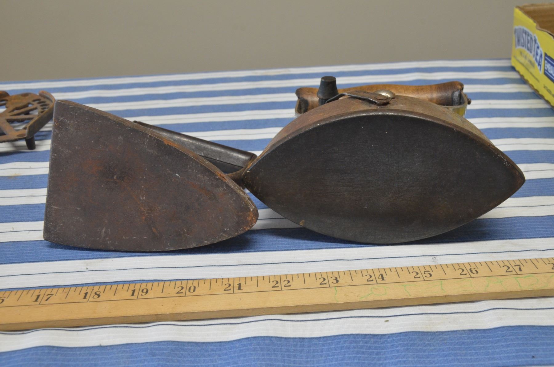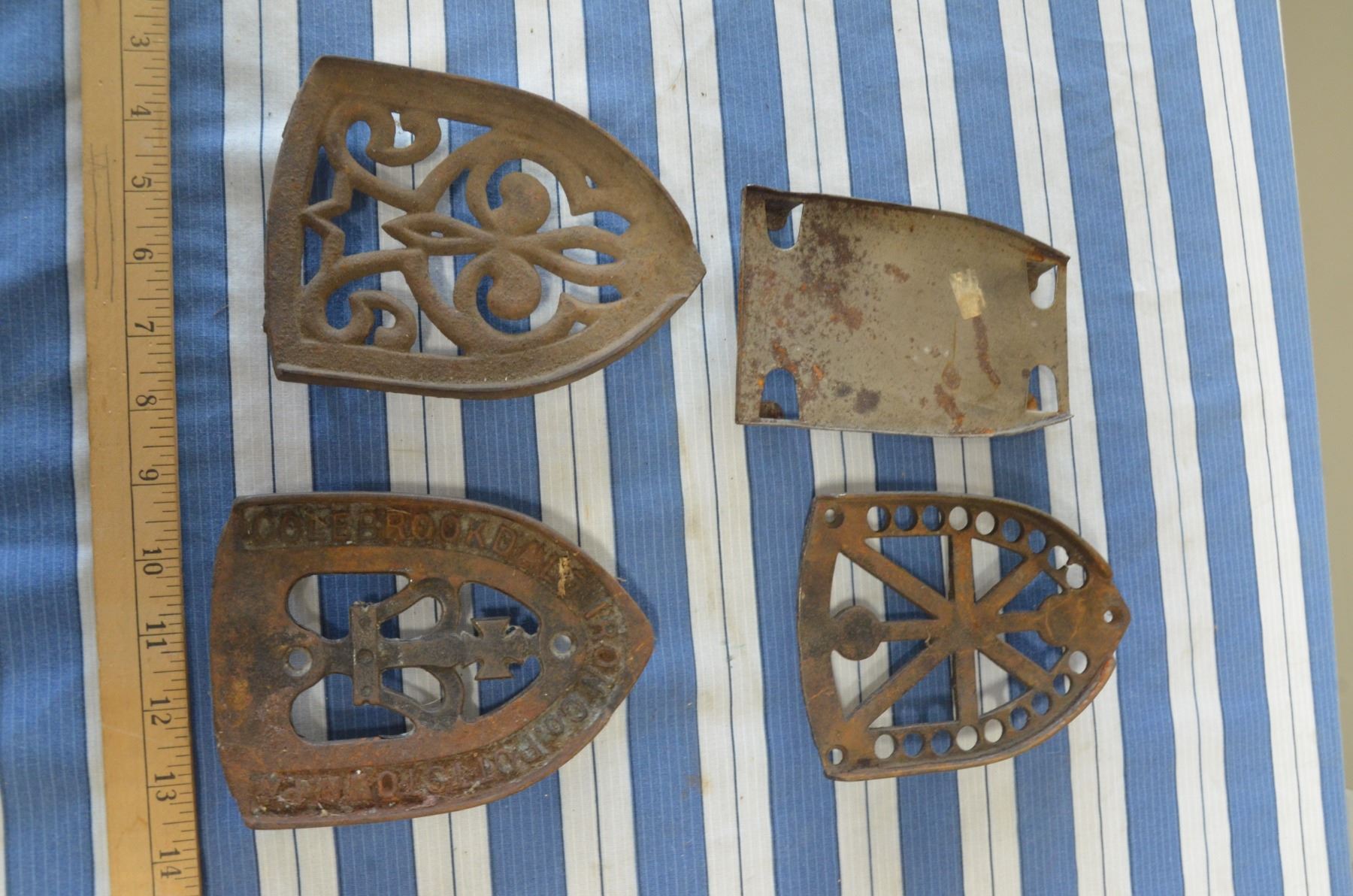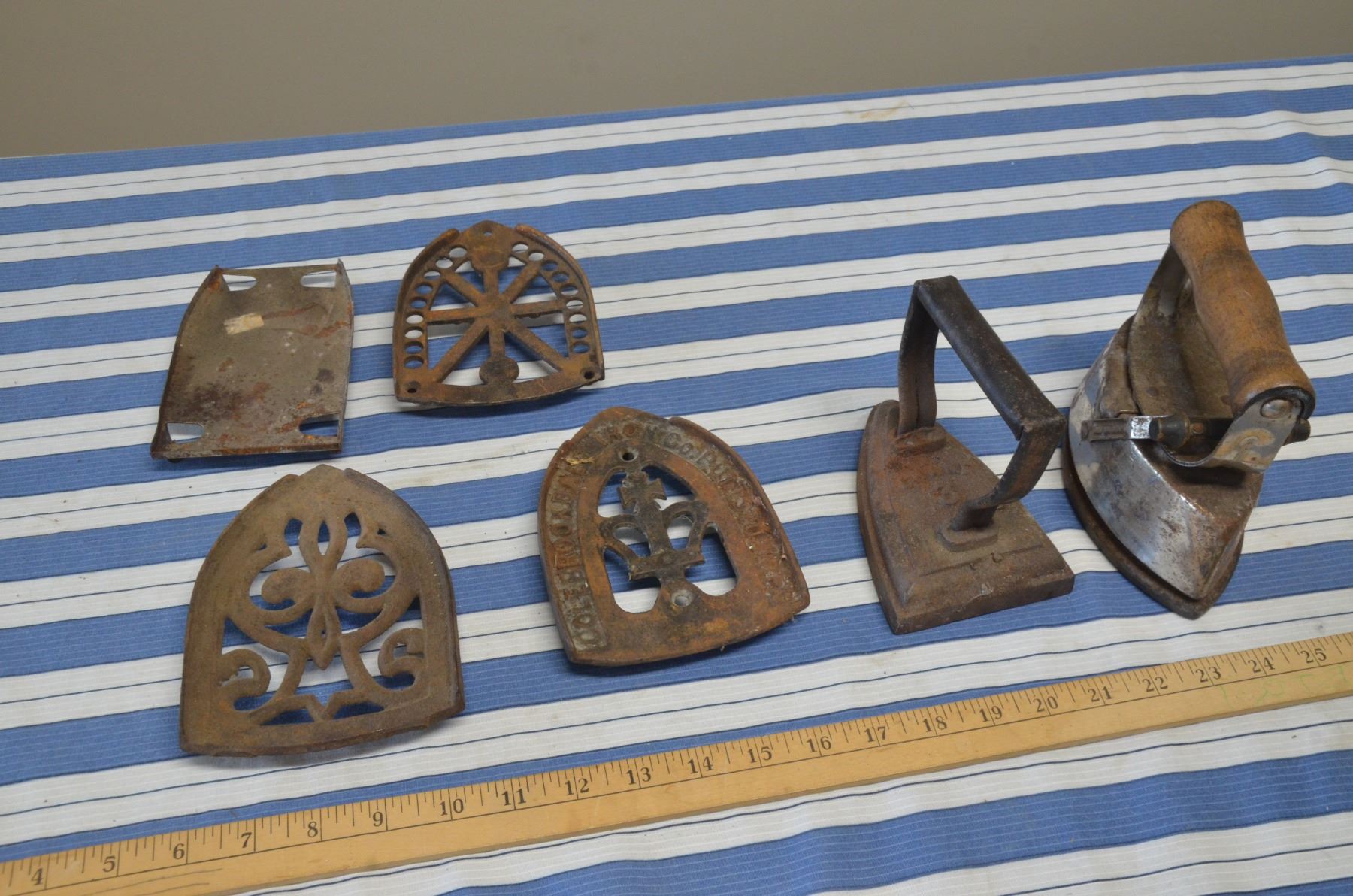 Vintage Irons w/ Trivets (4) ? Crane #3, misc.