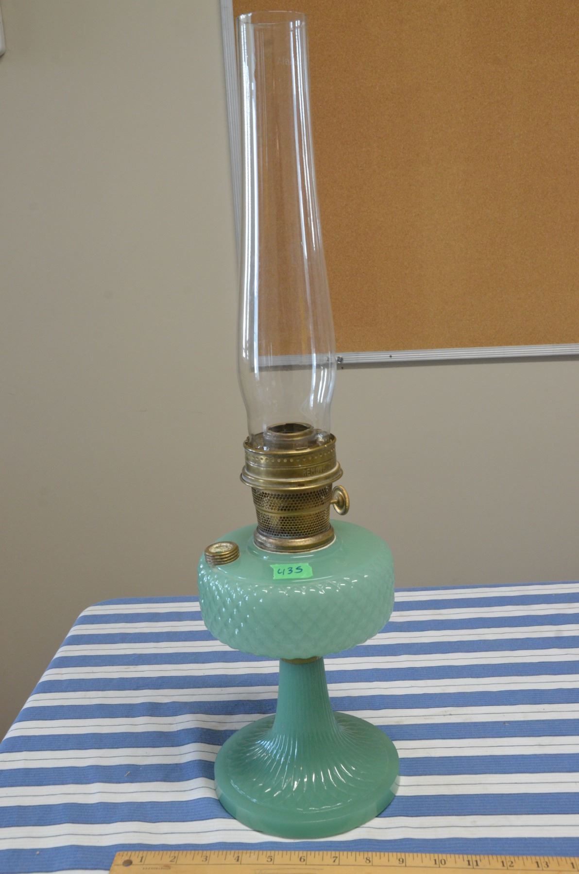 Vintage Jadeite Glass Aladdan Lamp w/ Chimney 25? High