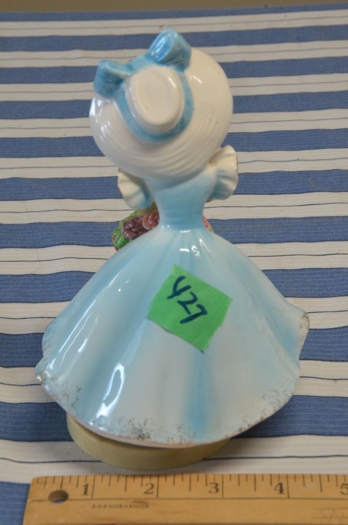 Vintage Japan 6.5? Blue Flower Basket Music Box Figurine