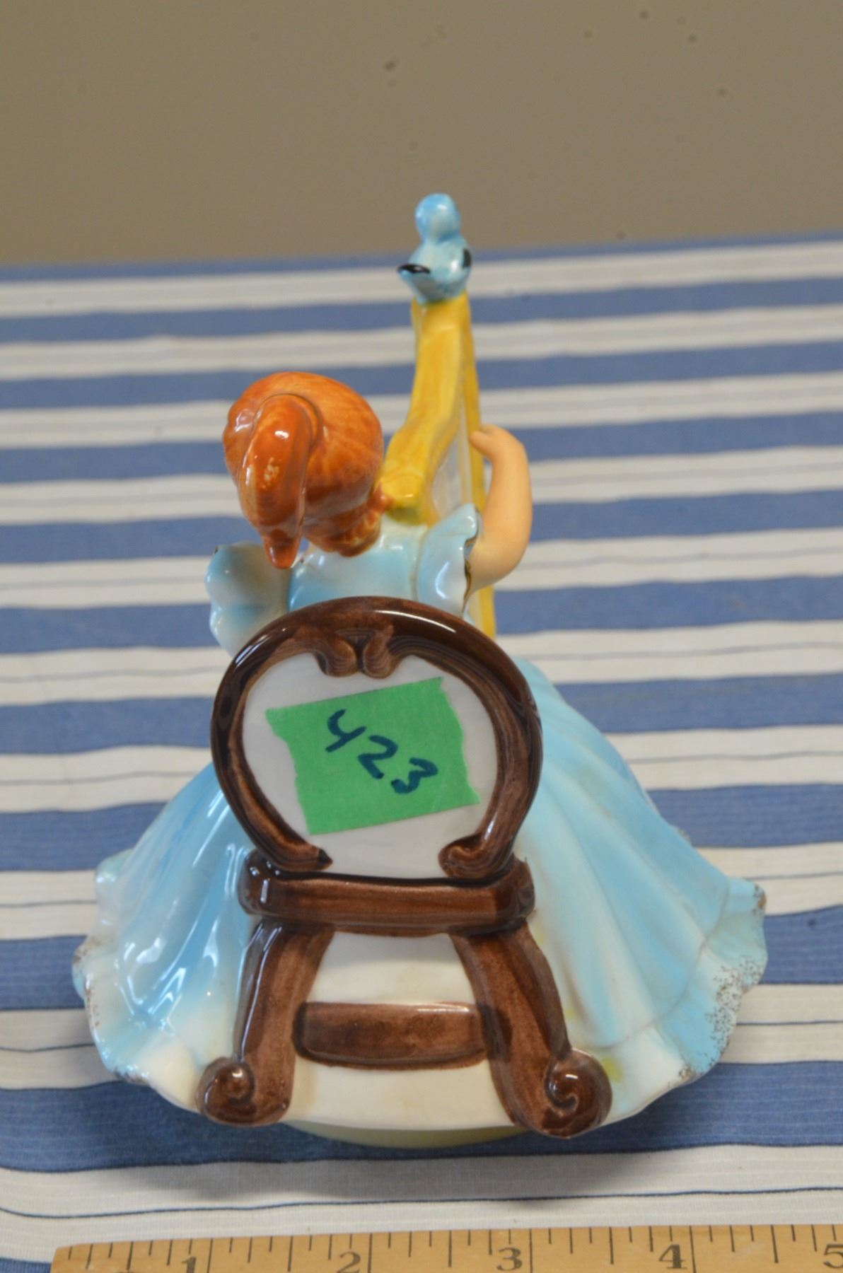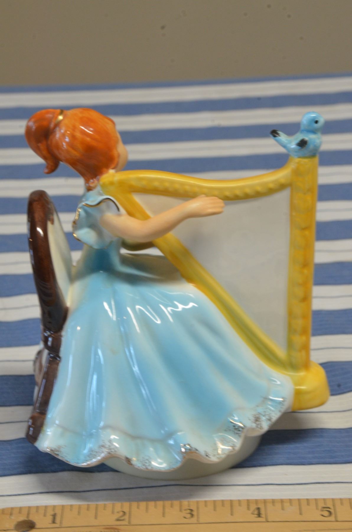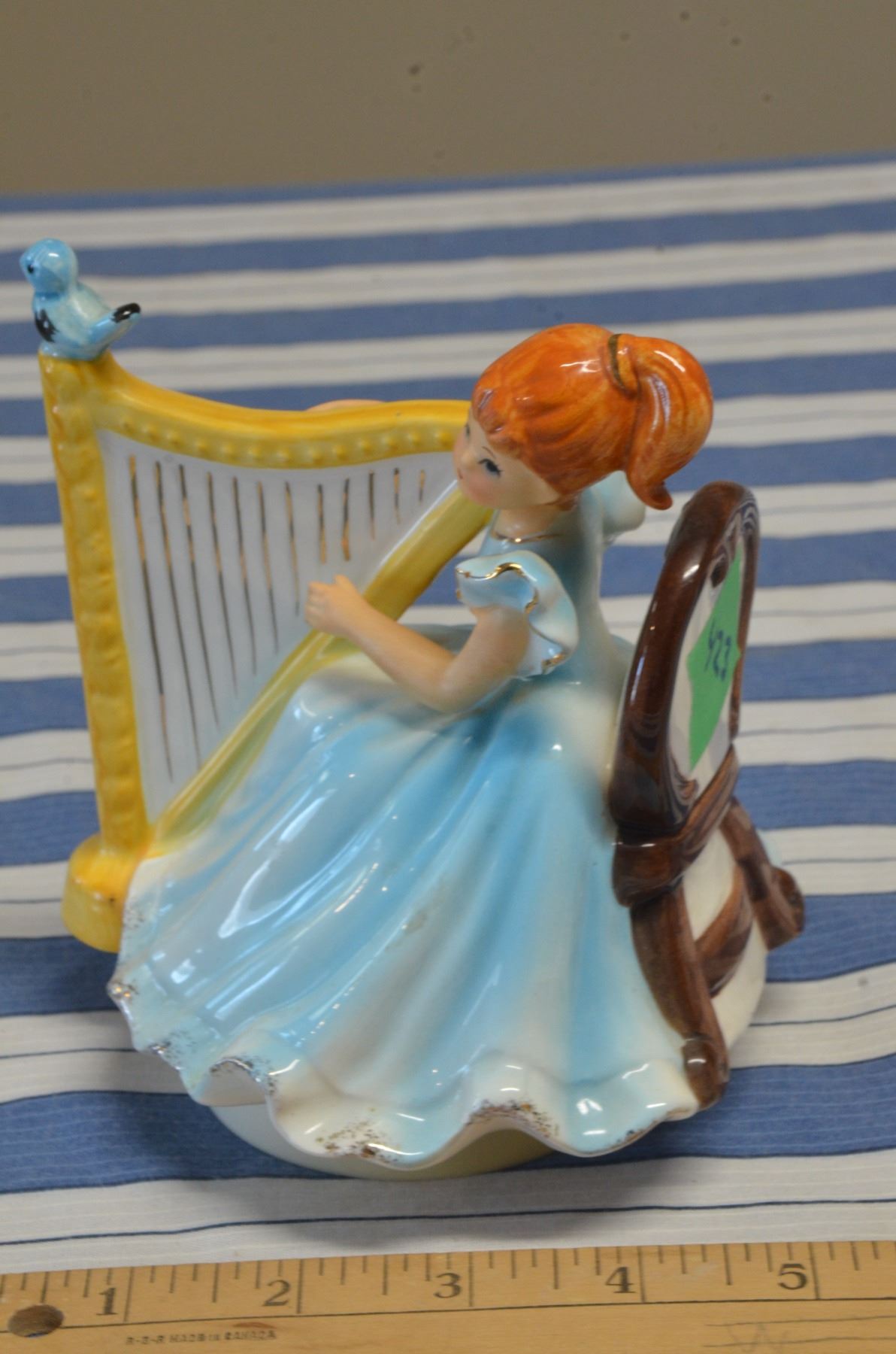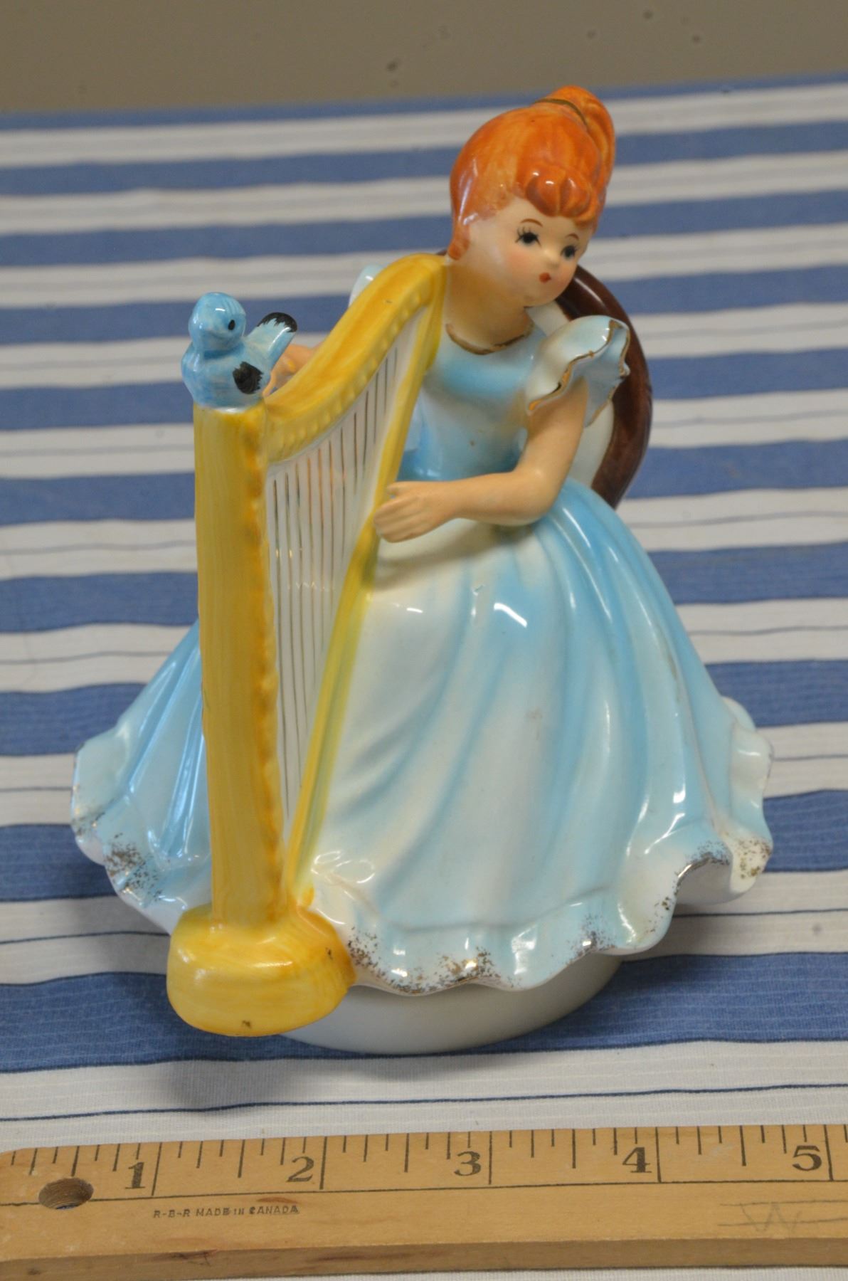 Vintage Japan 6? Harp Playing Music Box Figurine
