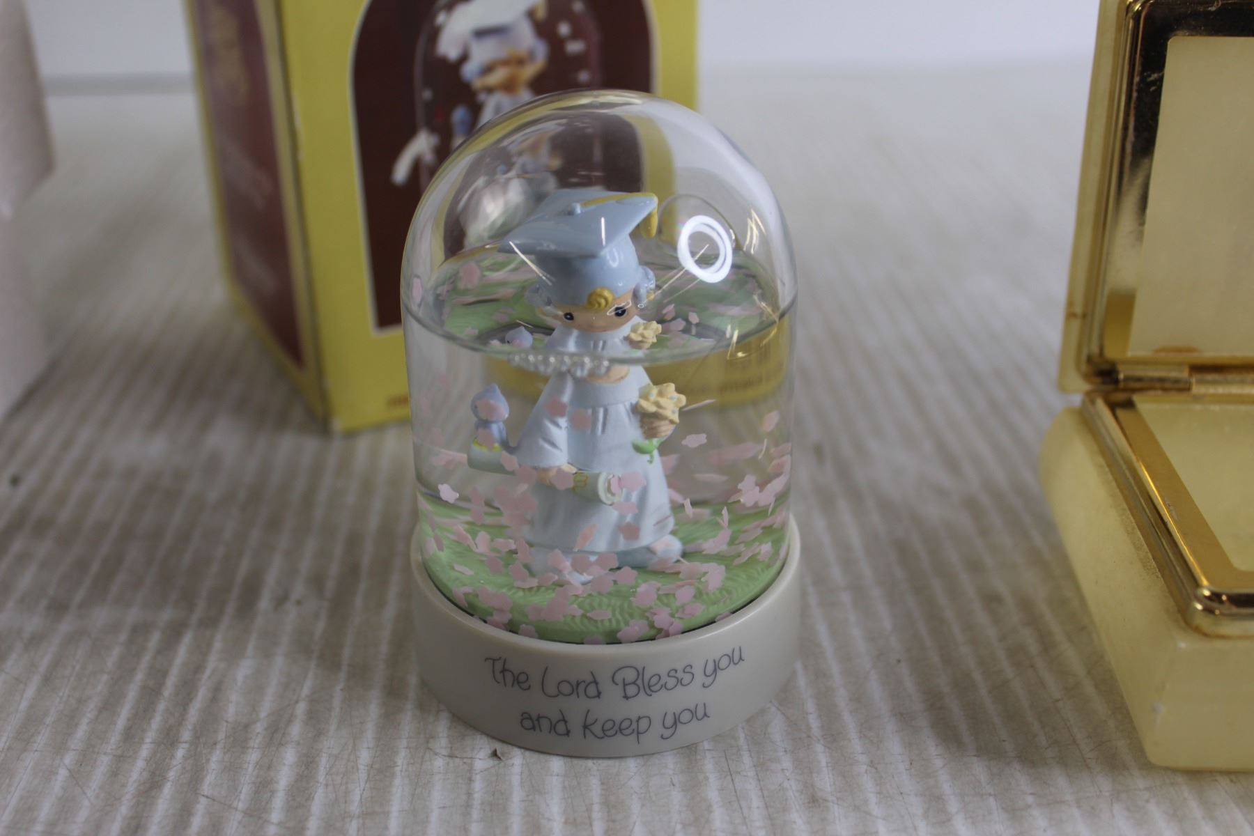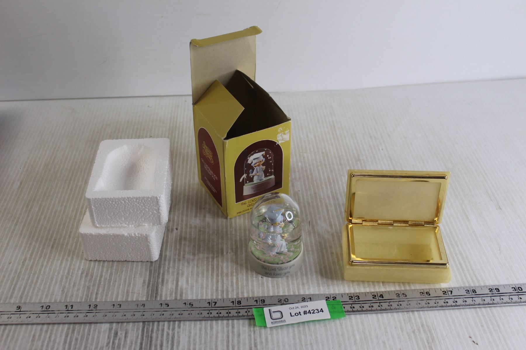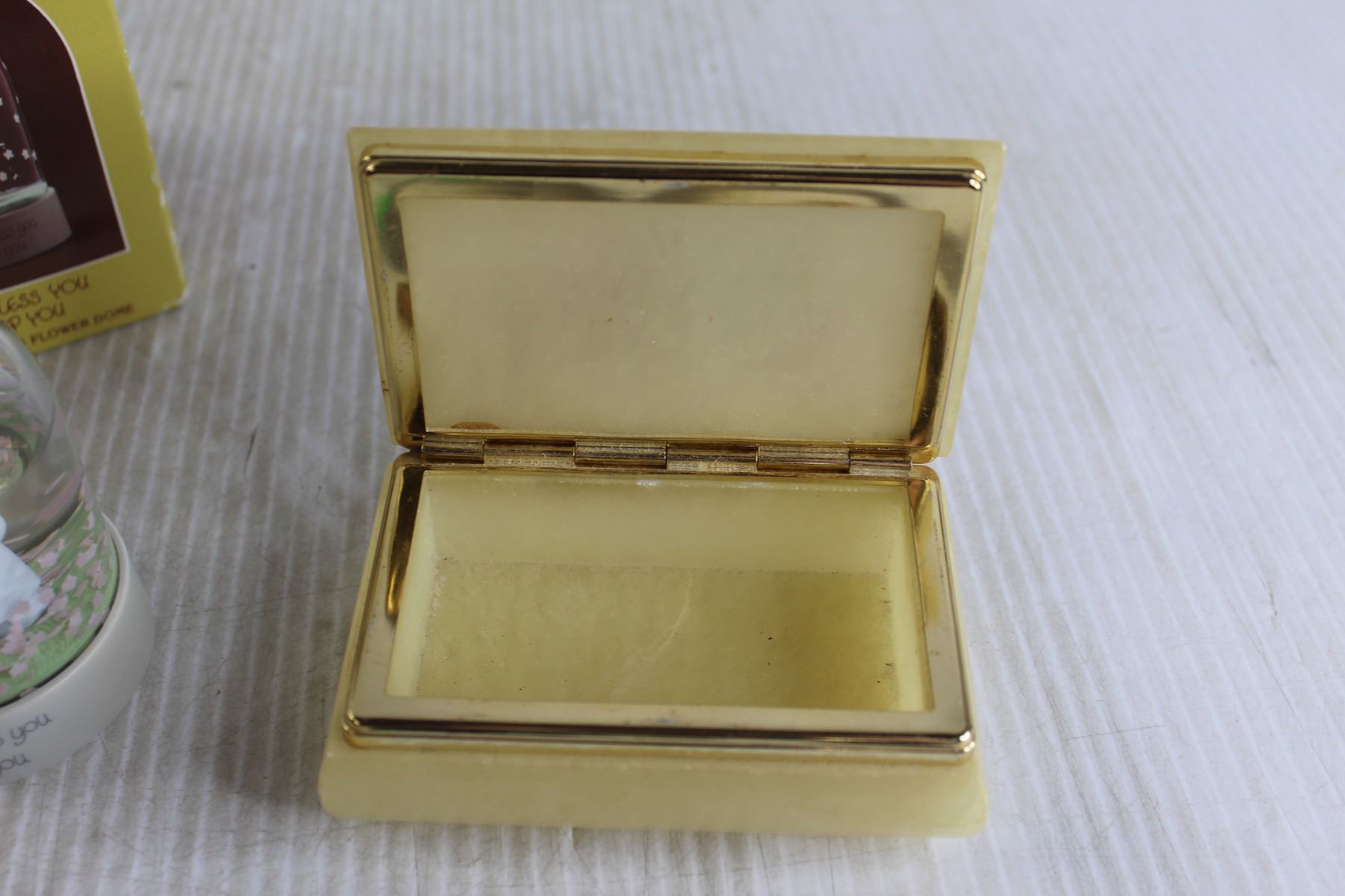 Vintage Jewelry Box - Genuine Alabaster, Precious Moments Flower Dome "The Lord Bless You and Keep You" in Original Box 1984