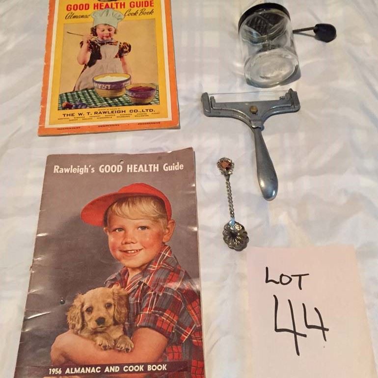 Nut Meat Chopper, Colorado Spoon, Cheese Slicer, 1956 Rawleighs Good Health Guide 1943 Health Gudie