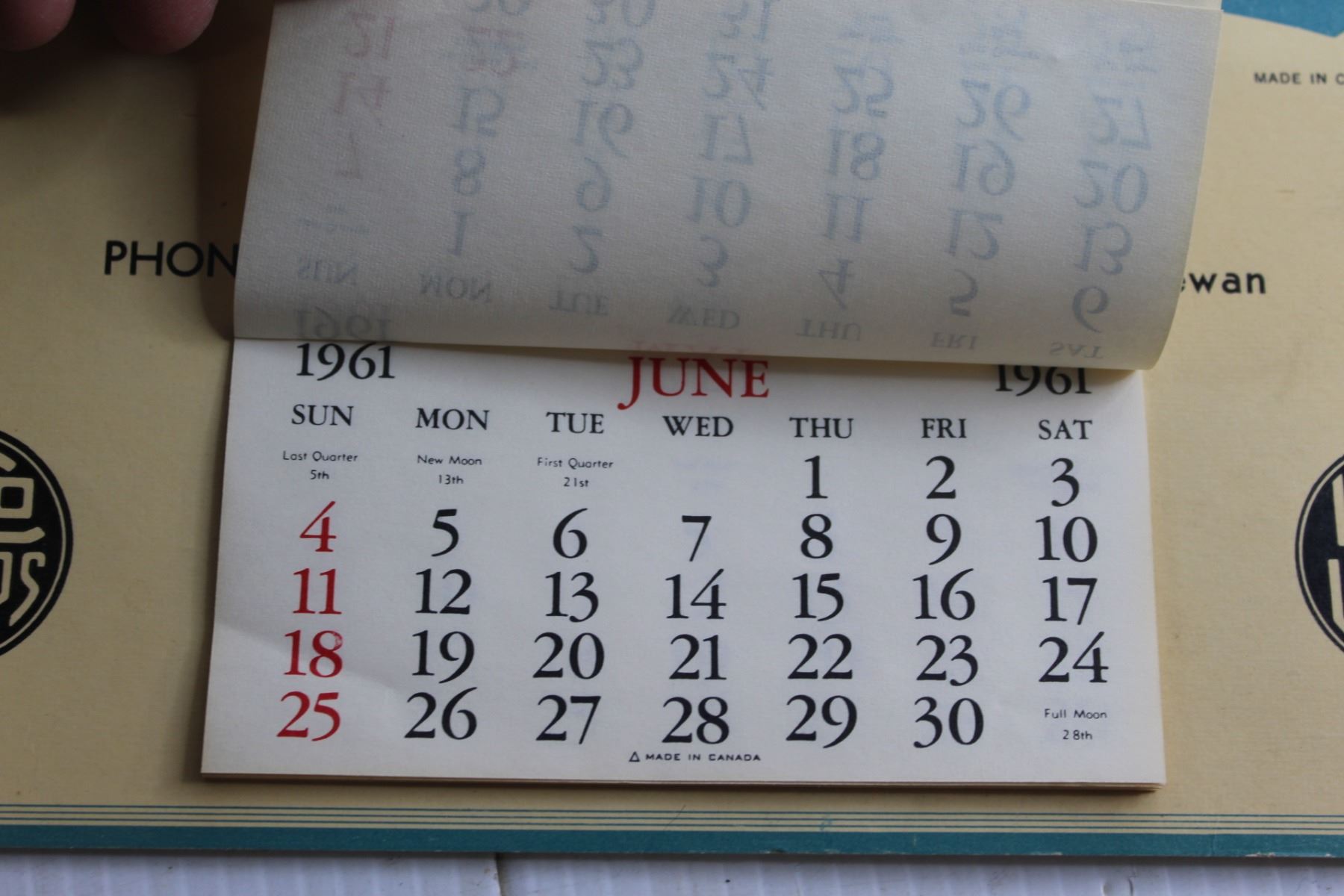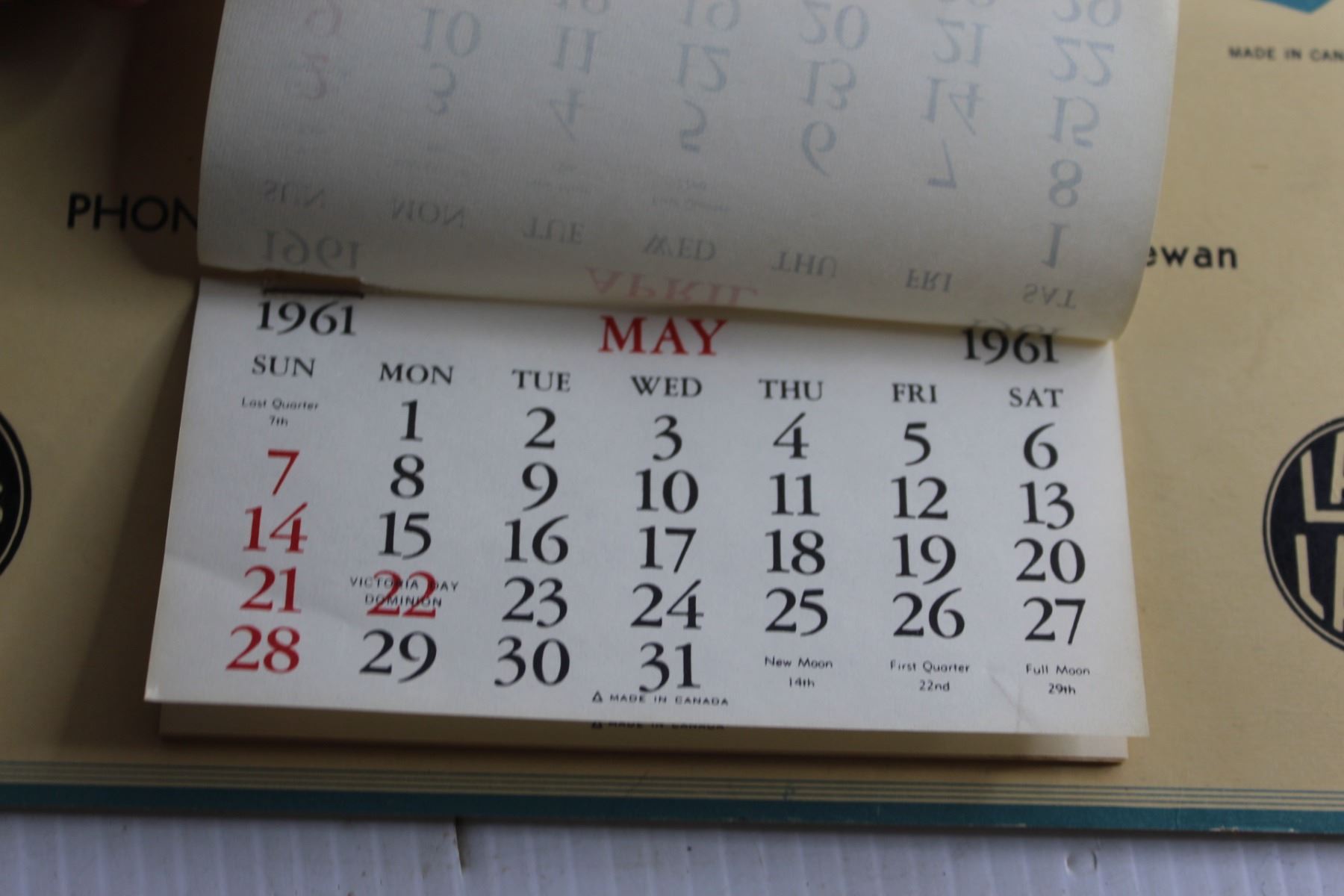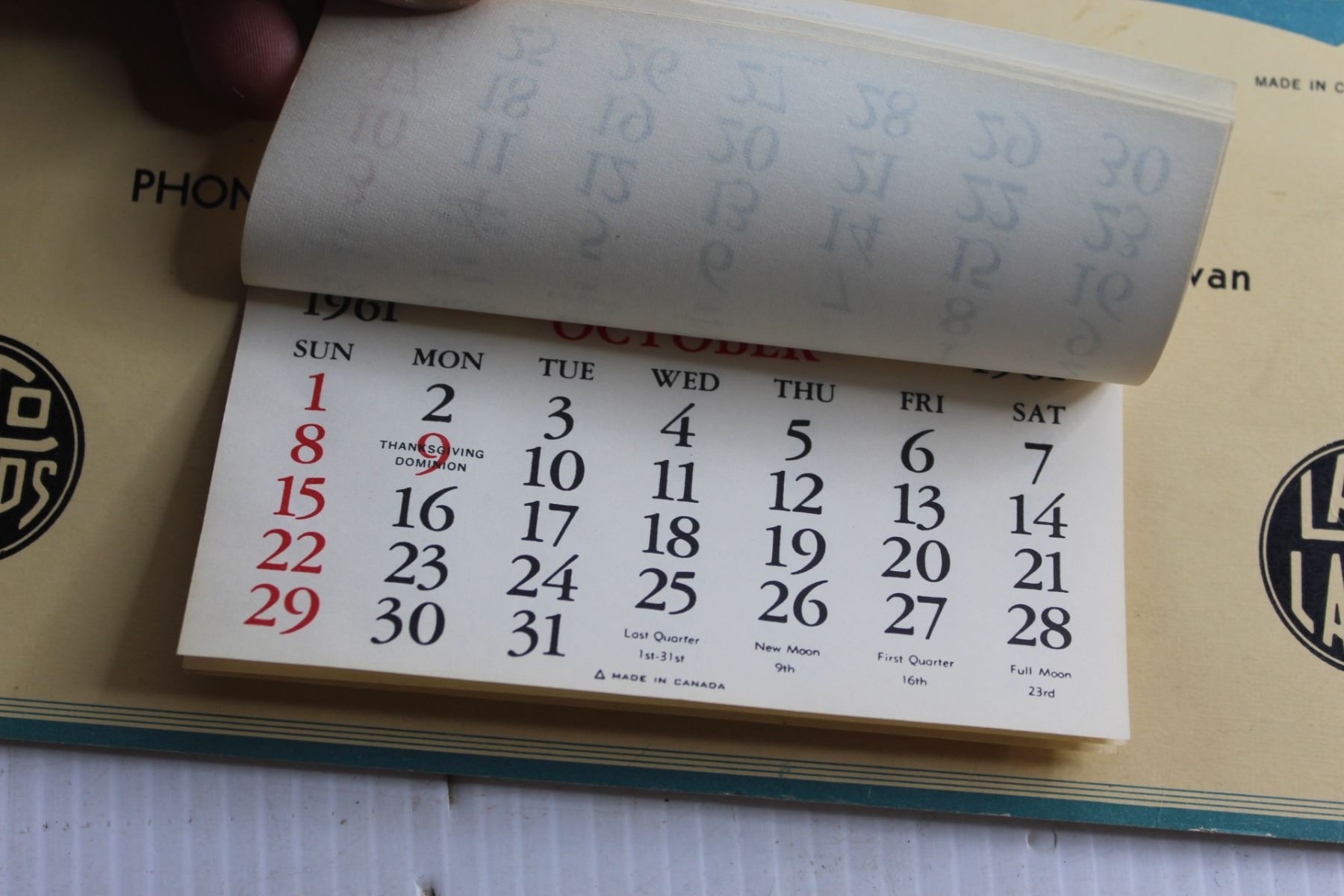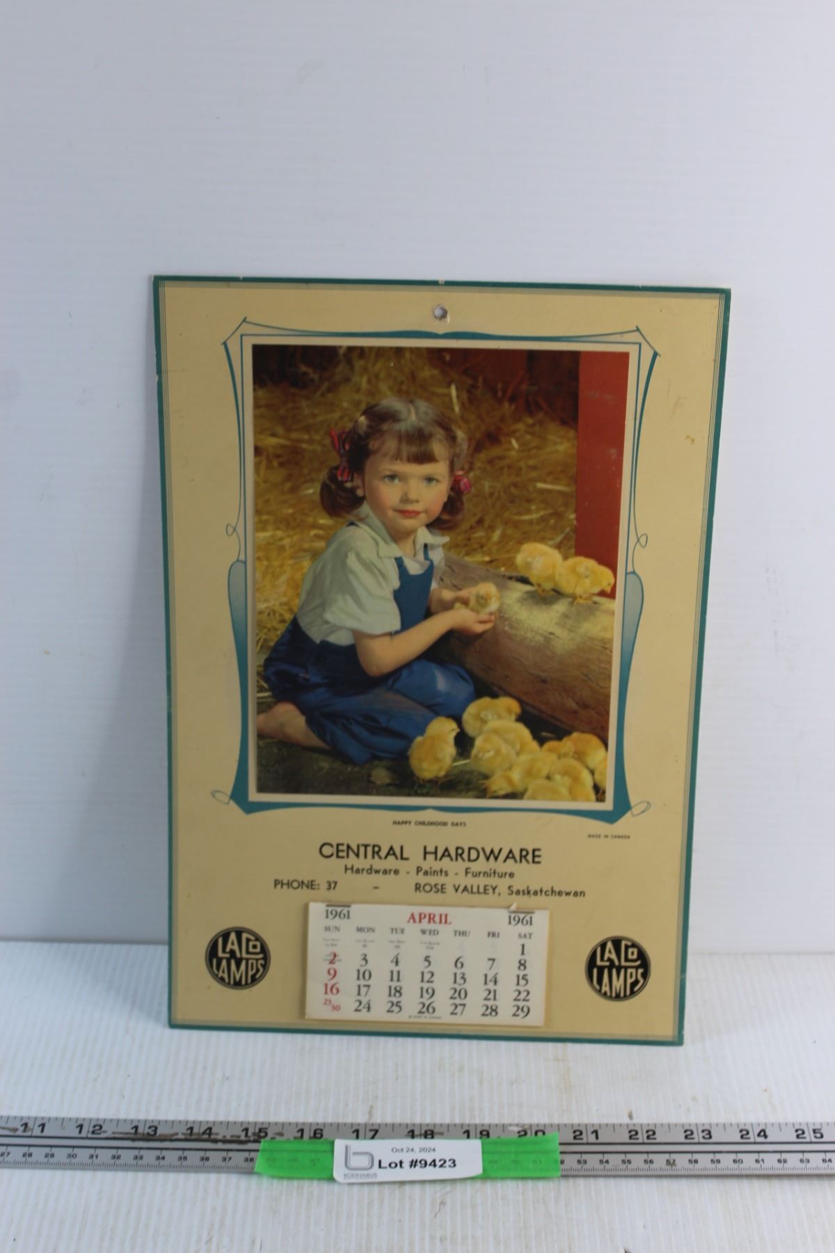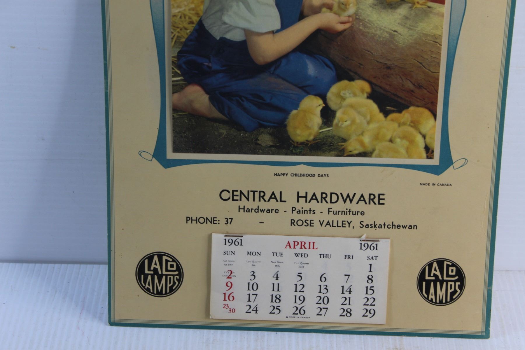 Vintage Laco Lamps Central Hardware 1961 Calendar - Rose Valley Sask
