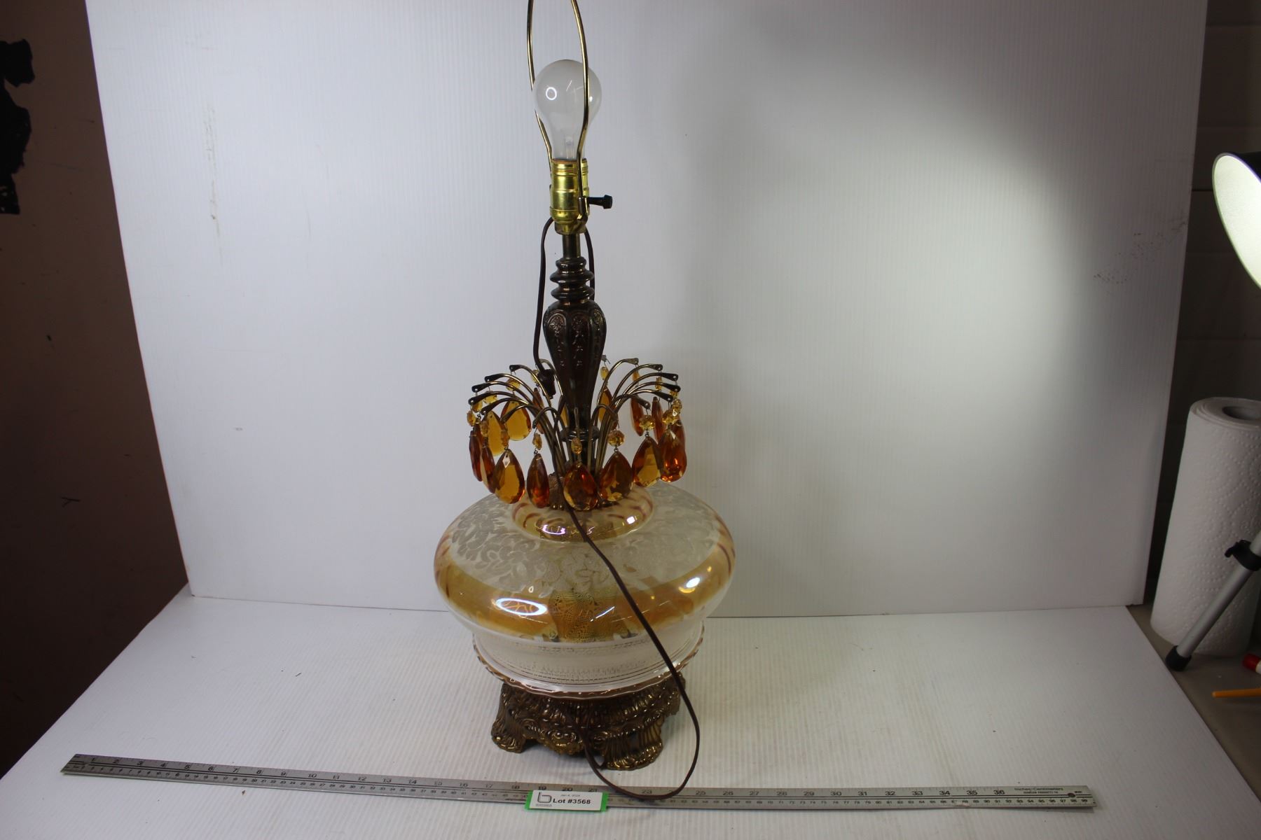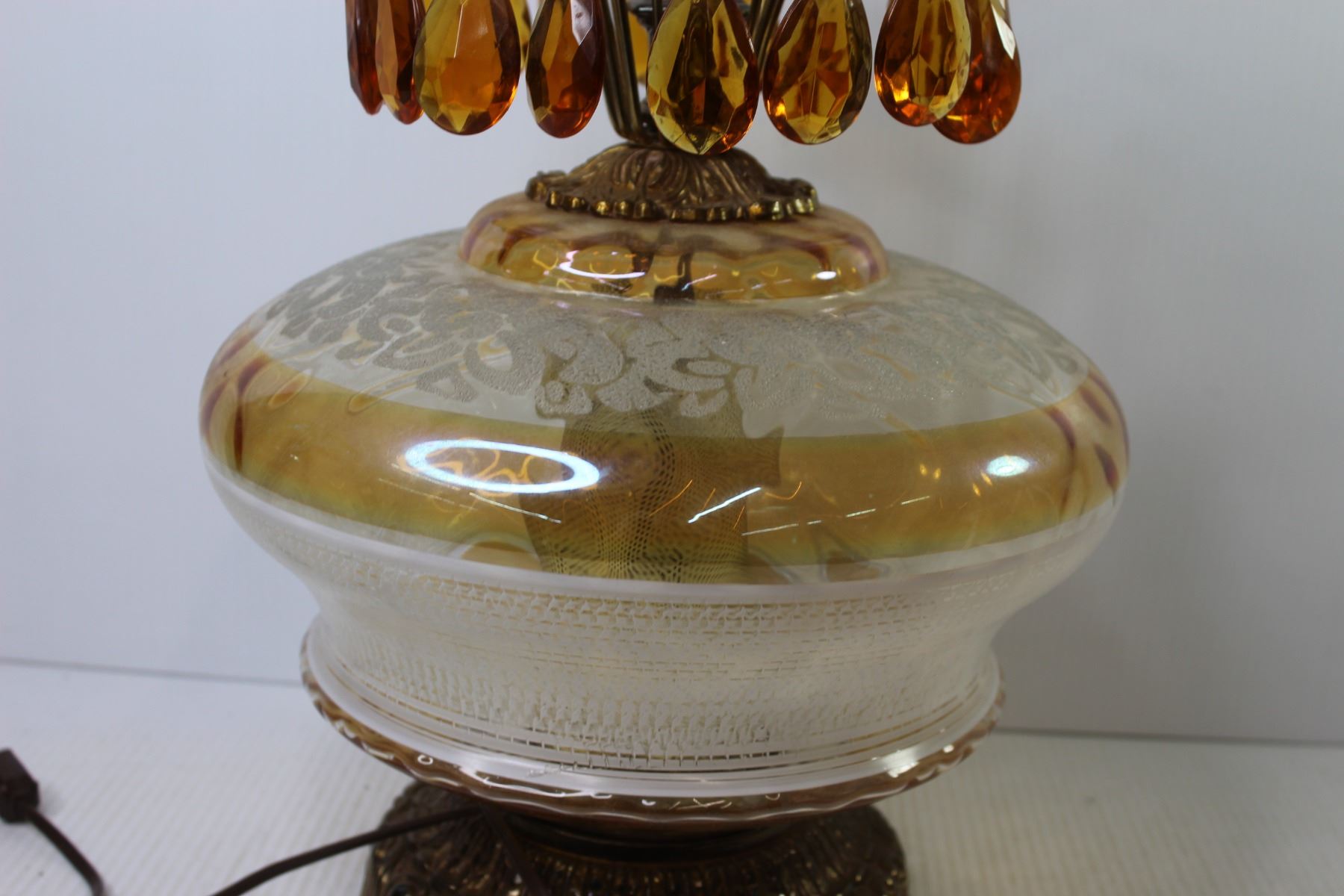 Vintage Lamp - Glass & Metal w/Amber Glass Crystals (working)