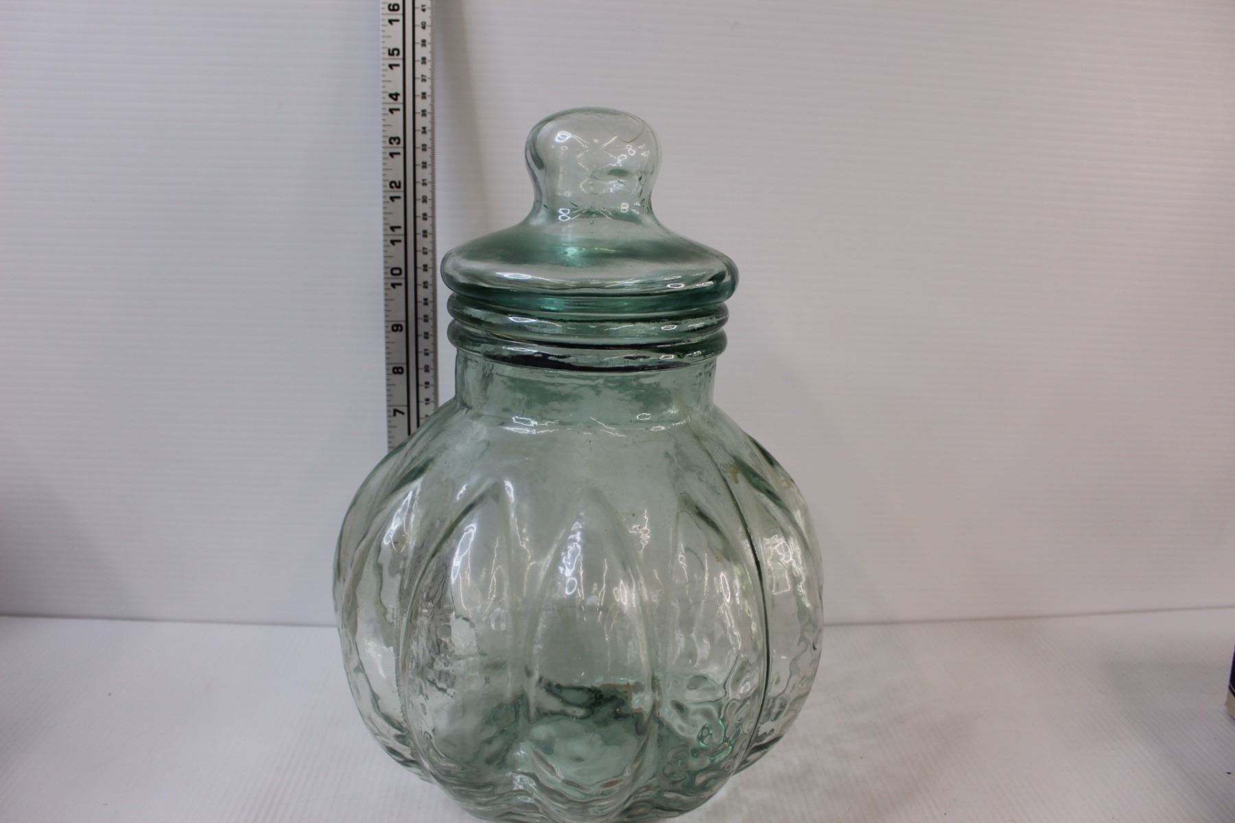 Vintage Large Coke Bottle Blue Glass Store Display Jar / Cookie Jar with Lid