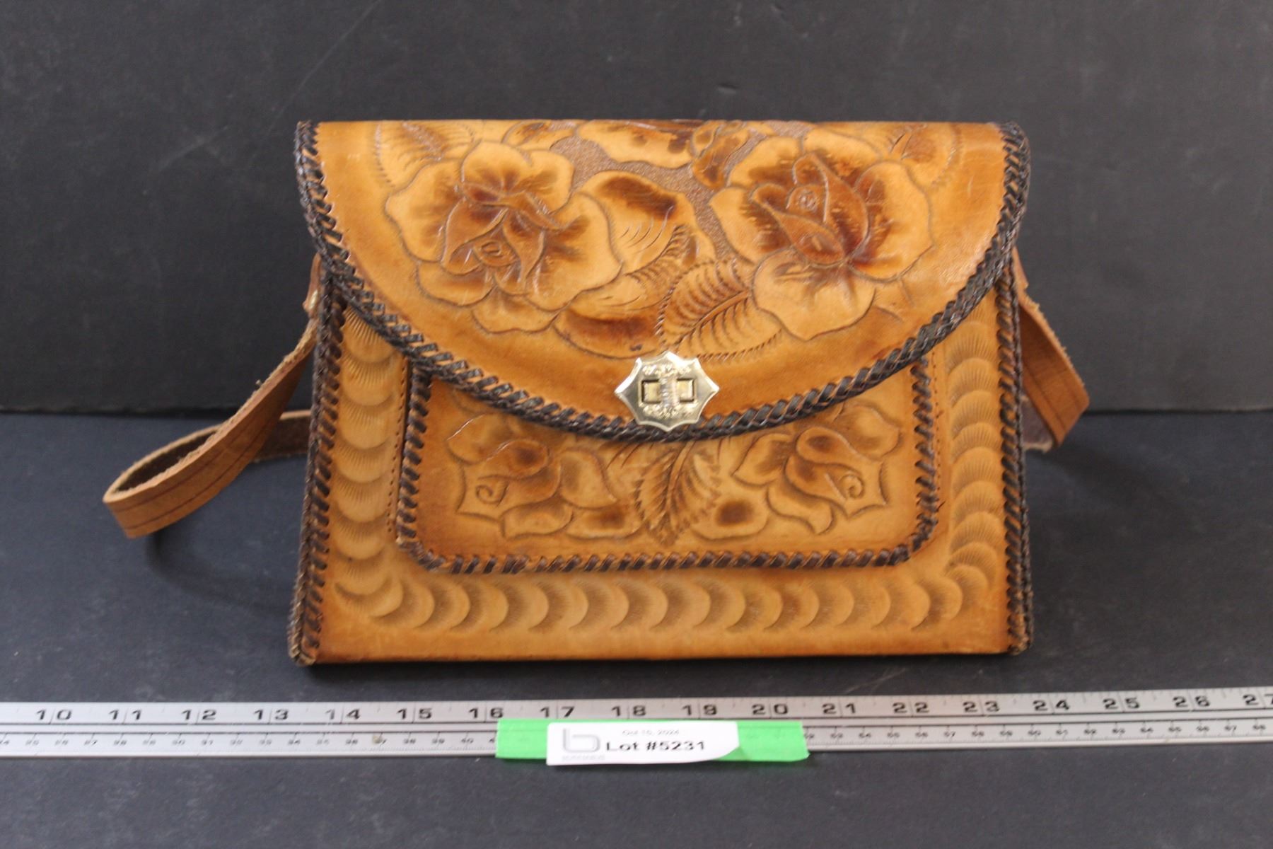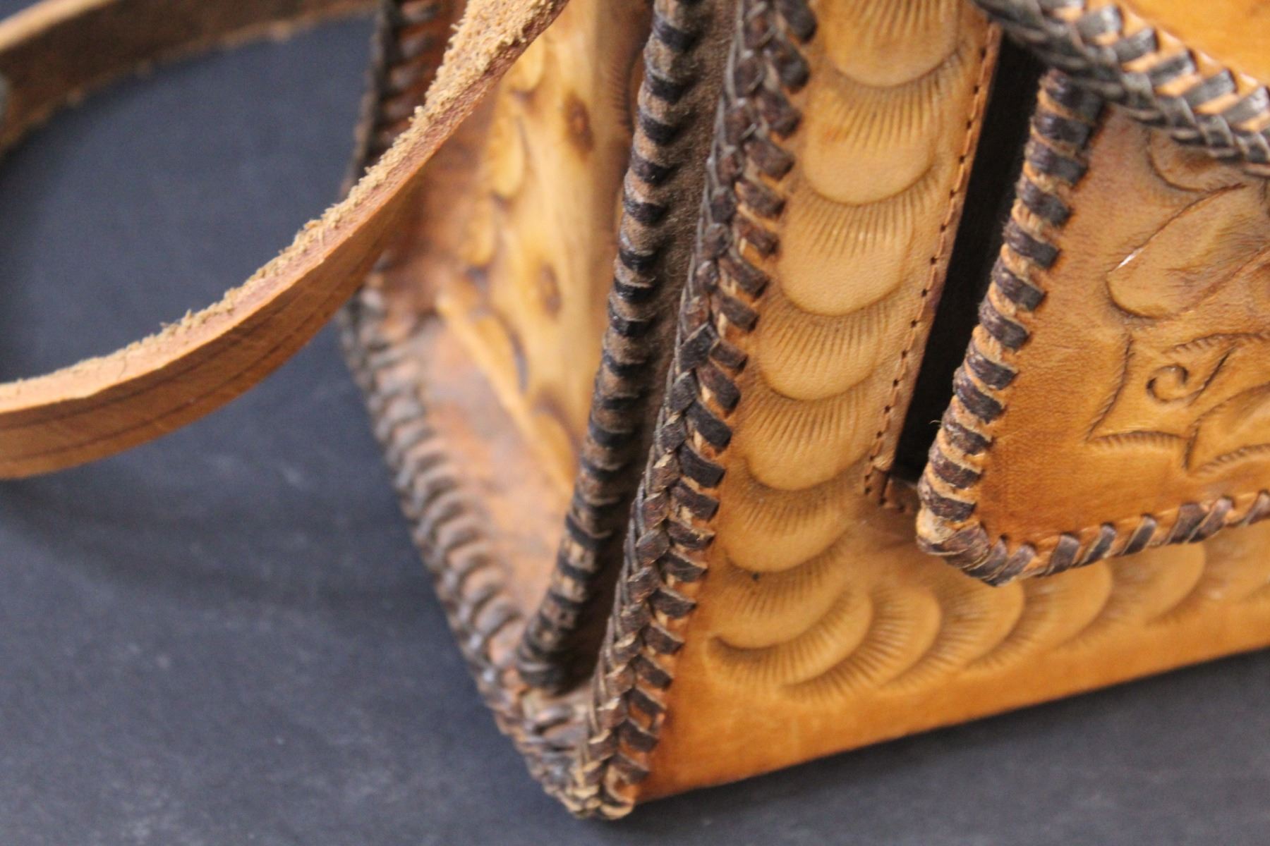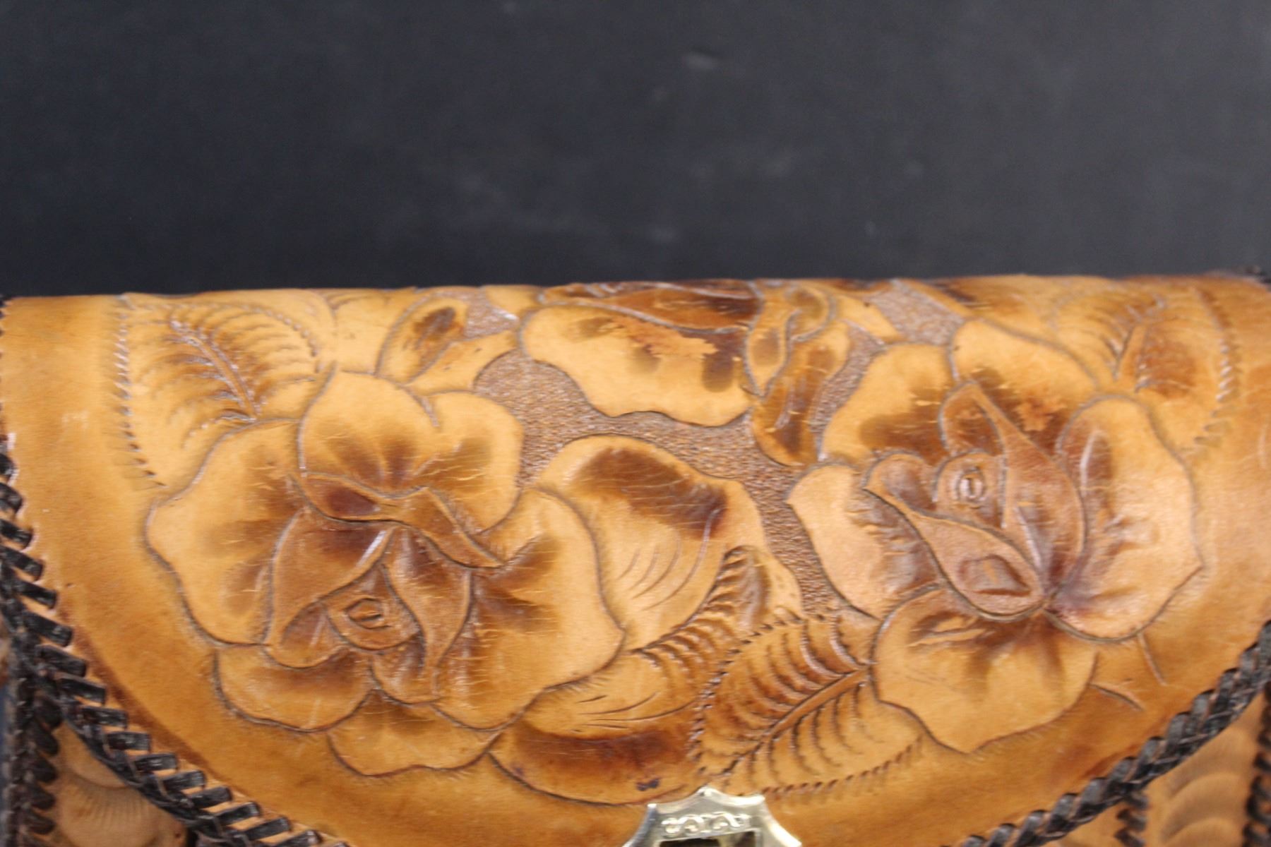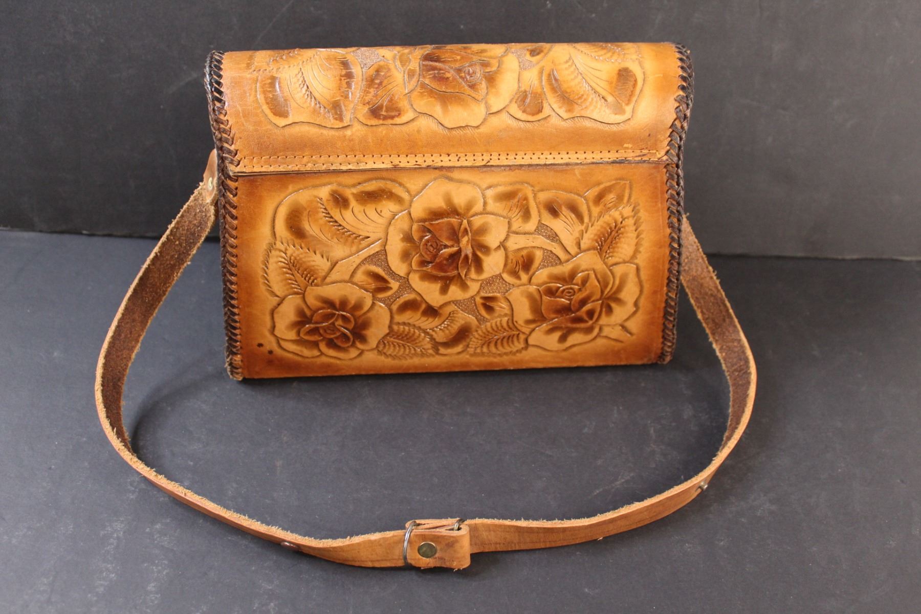 Vintage Leather Handtooled Floral Shoulder Purse