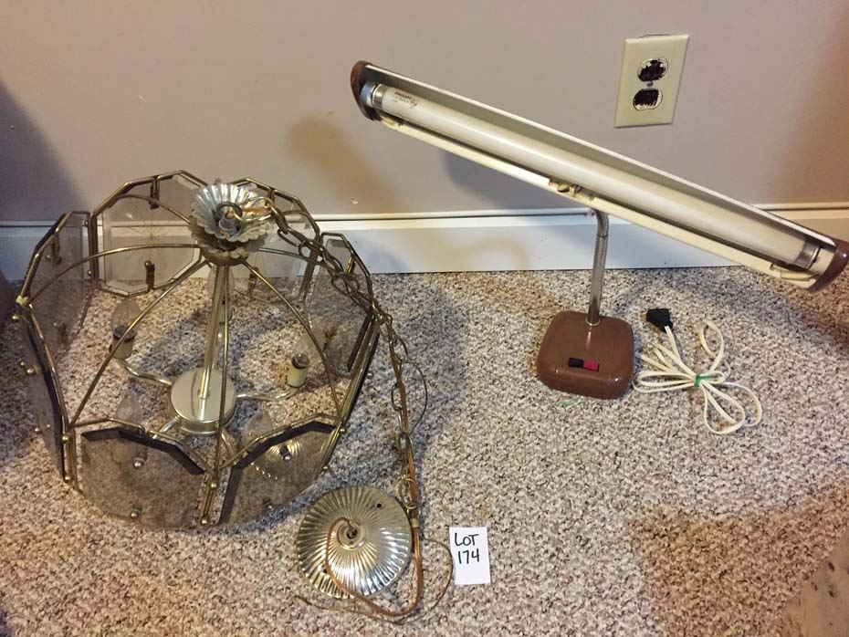 5 Light Chandelier, Metal Flourescent Desk Lamp (working)