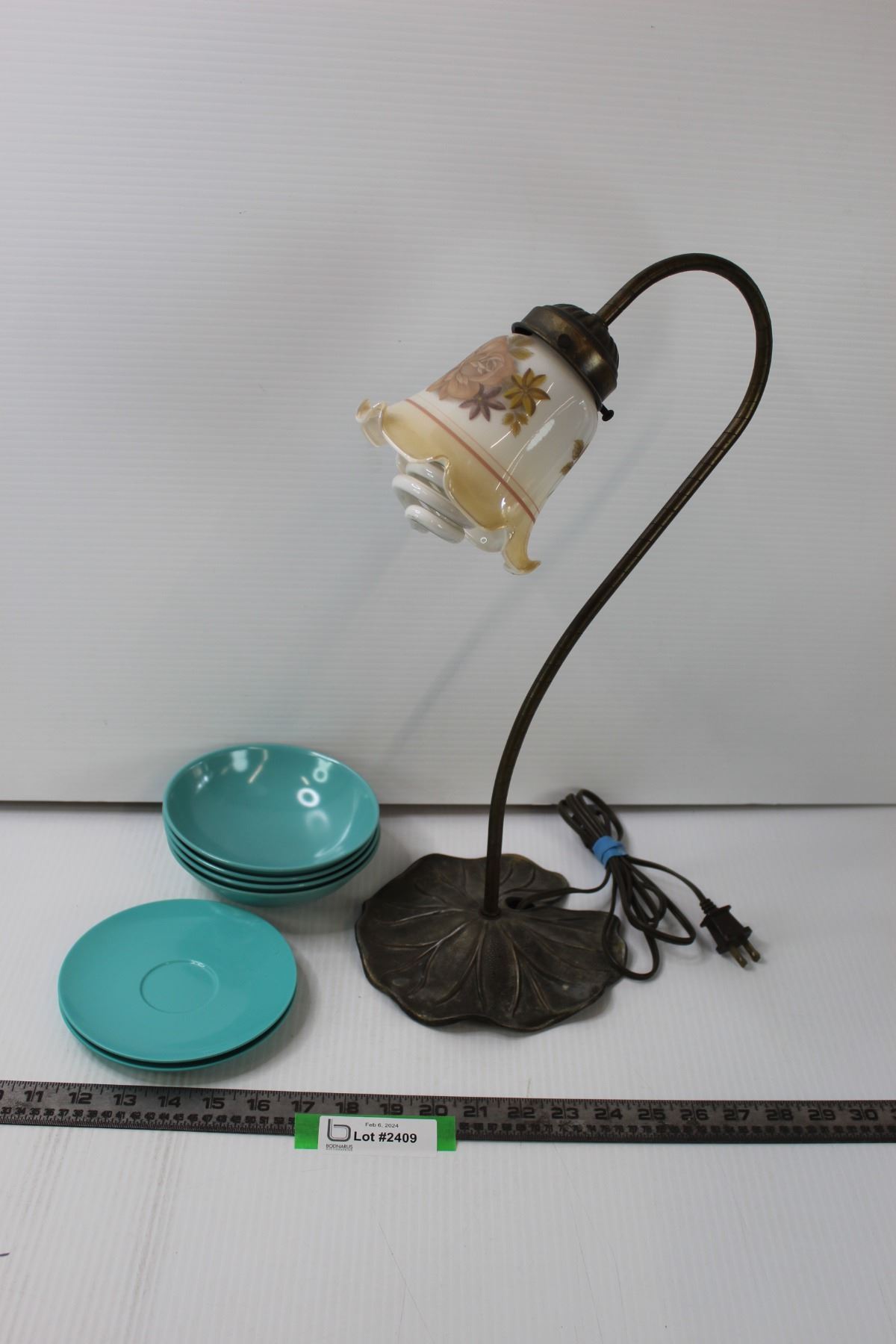Vintage Lilypad Lamp (works) Melamine Dinnerware - 4 Bowls & 2 Plates - Some Staining(Made in Canada)