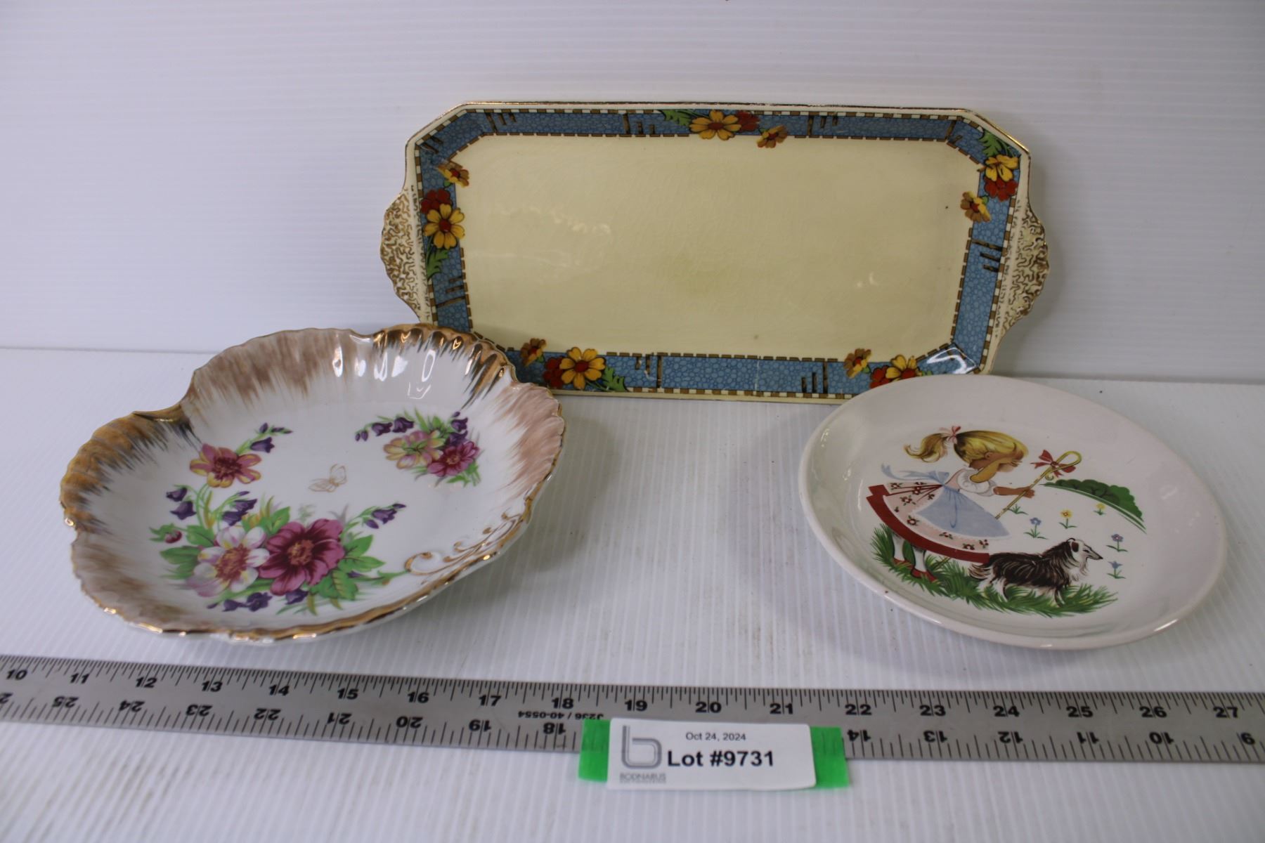 Vintage Little Bo Peep Plate - Japan Hand Painted Gold Butterfly Candy Dish - Vintage Cake Plate (11" x 5")