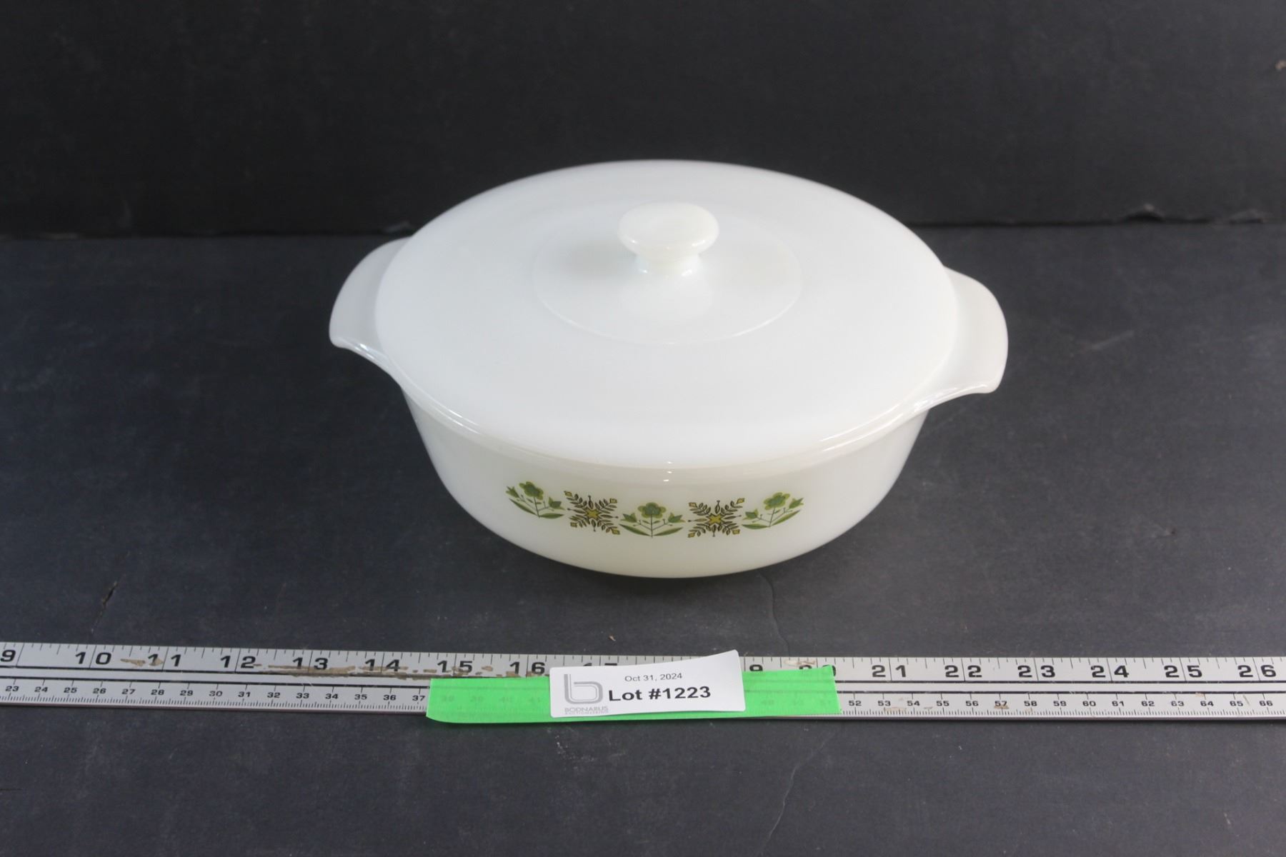 Vintage Meadow Green Pattern Fire King 1/4 Quart - Chipped
