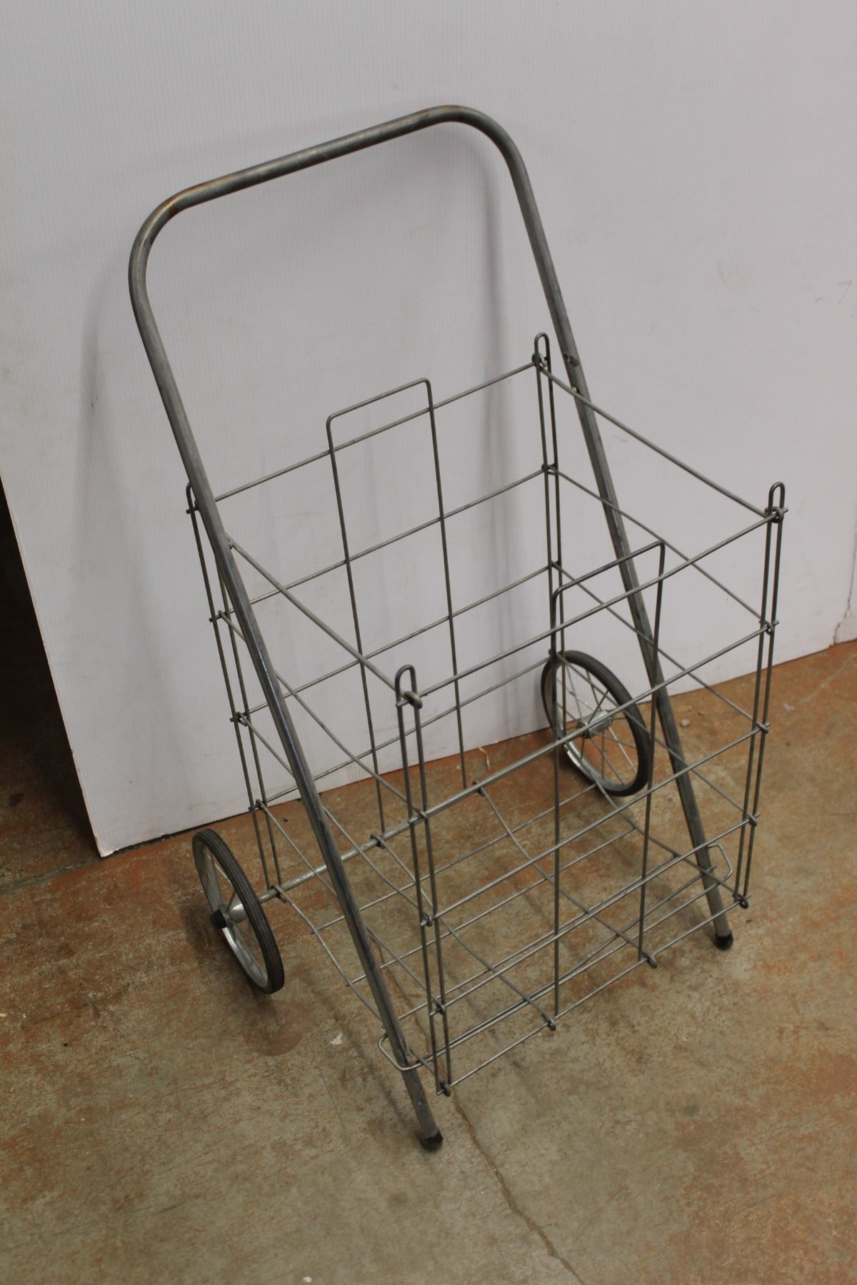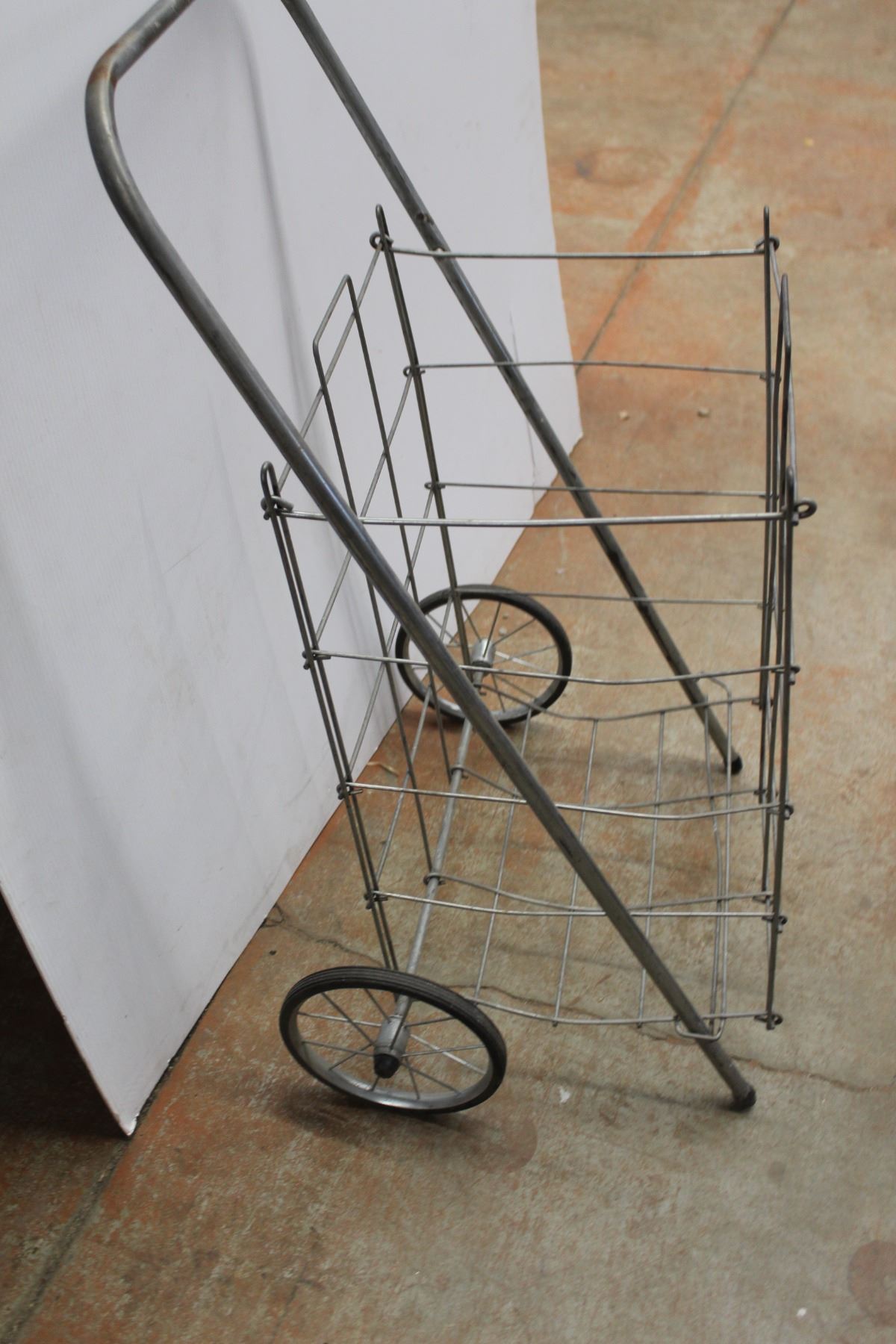 Vintage Metal 2 Wheeled Grocery Towing Cart- Folds Up- 33'' Tall
