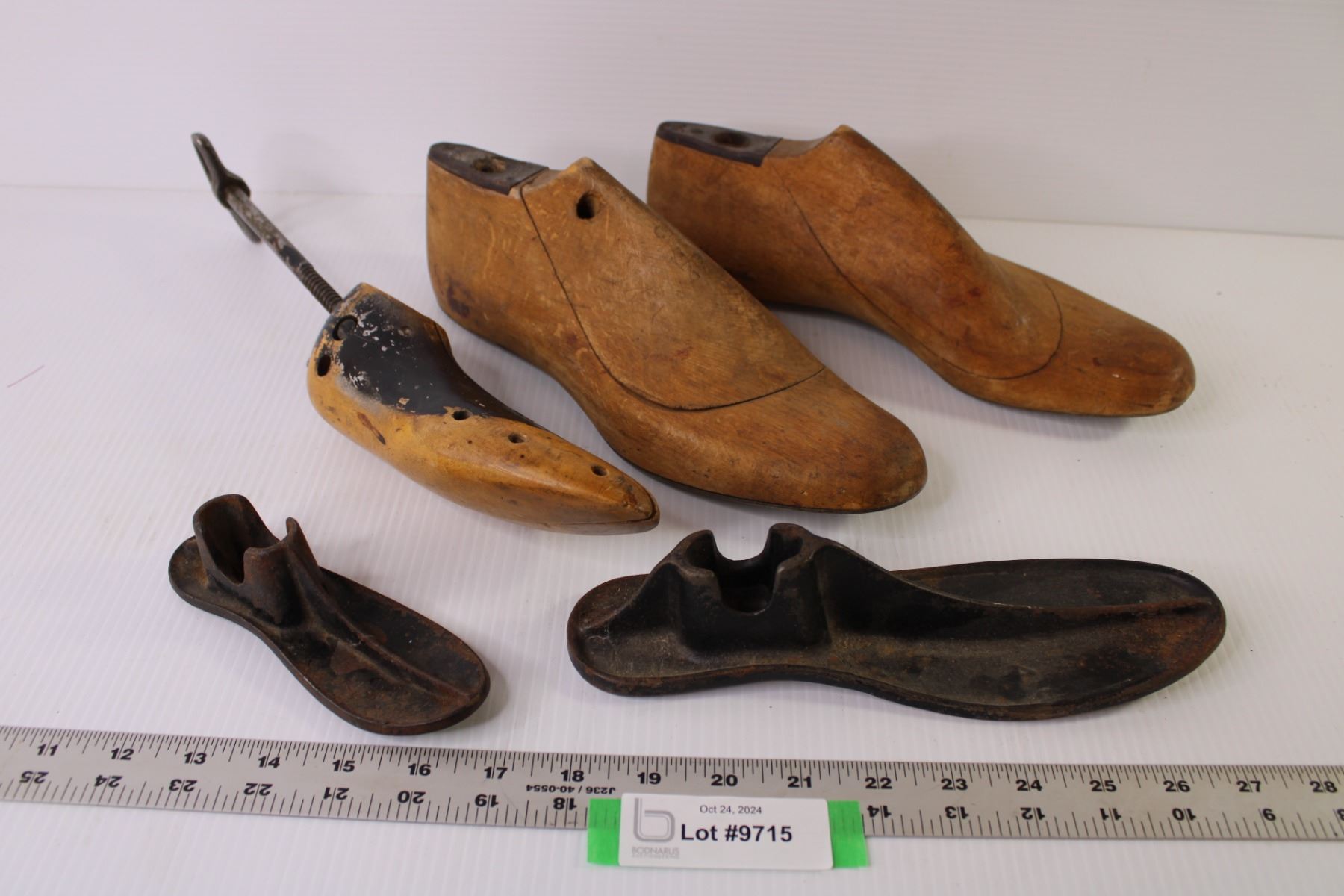 Vintage Metal Cobbler Shoe Holder - Wooden Shoe Stretchers