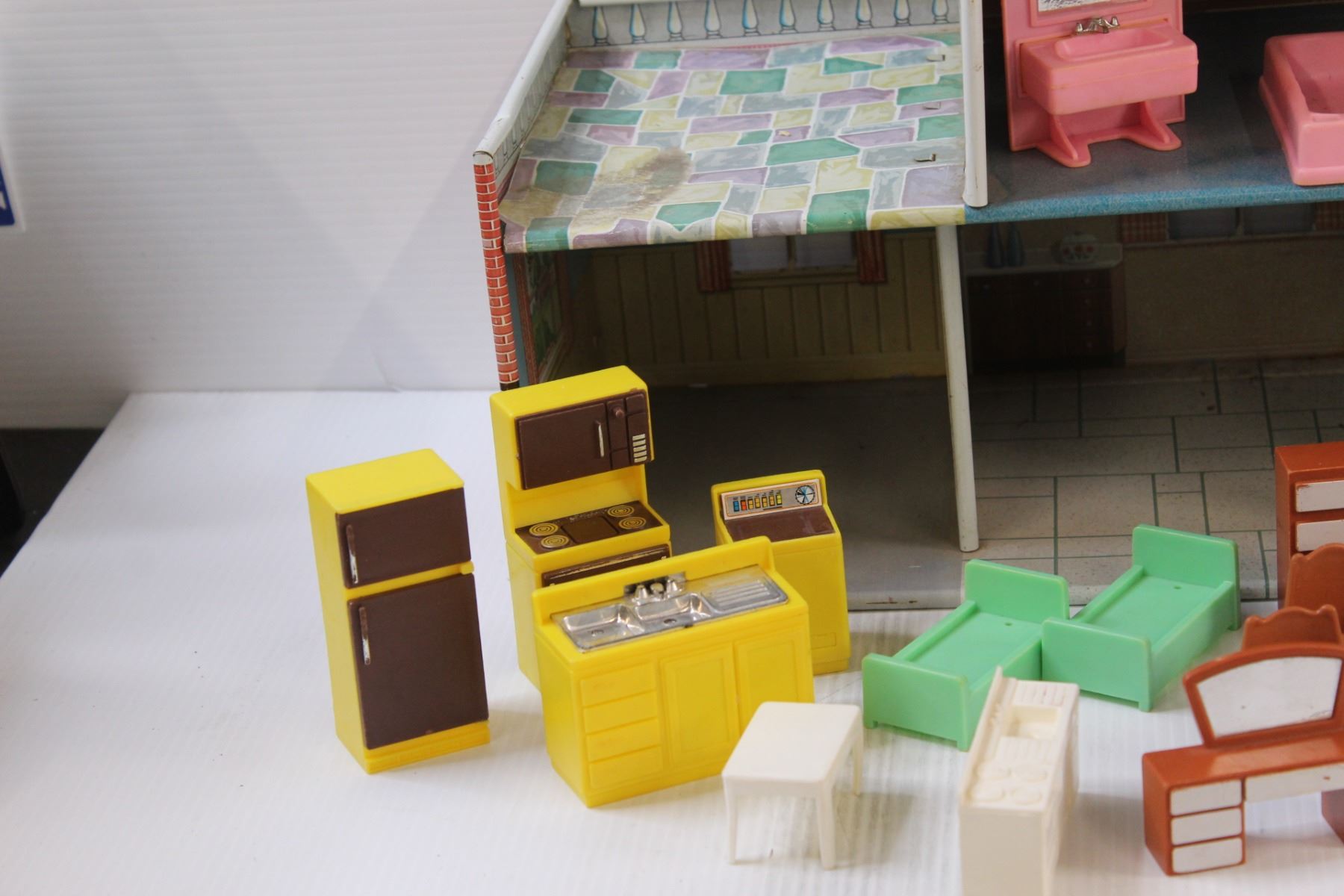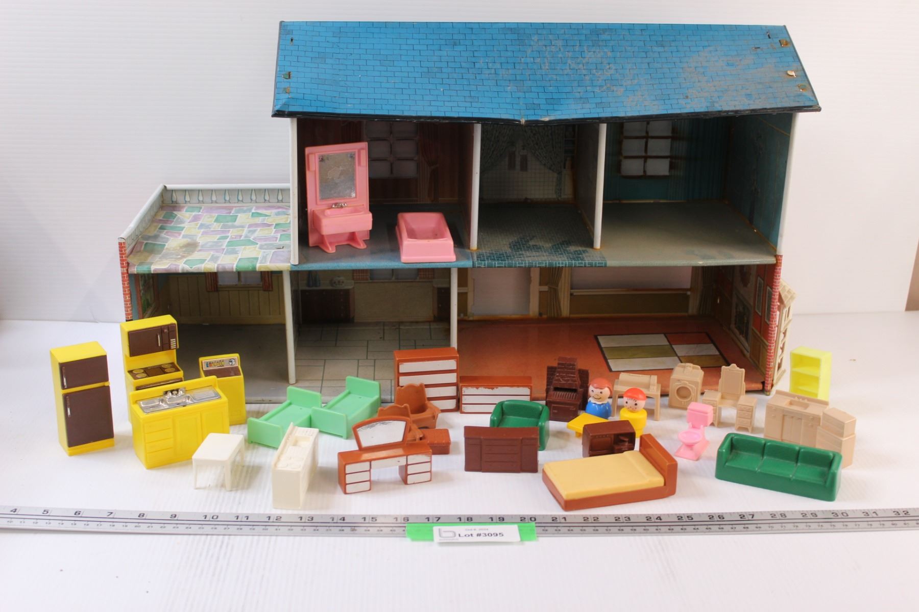 Vintage Metal Doll House w/Various Furniture Sets - Some Wear